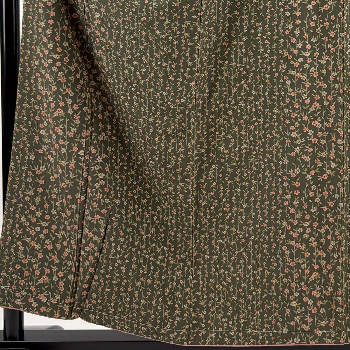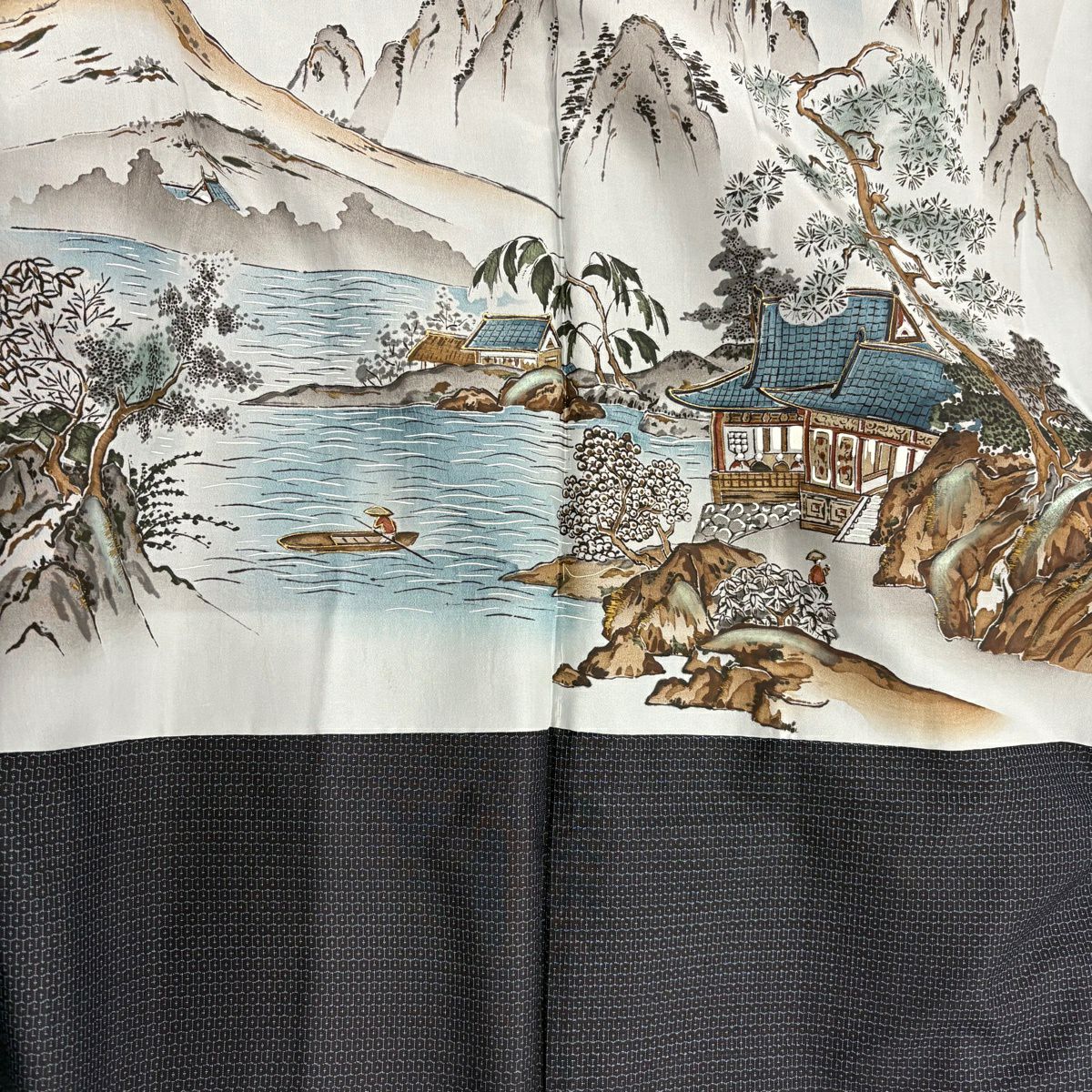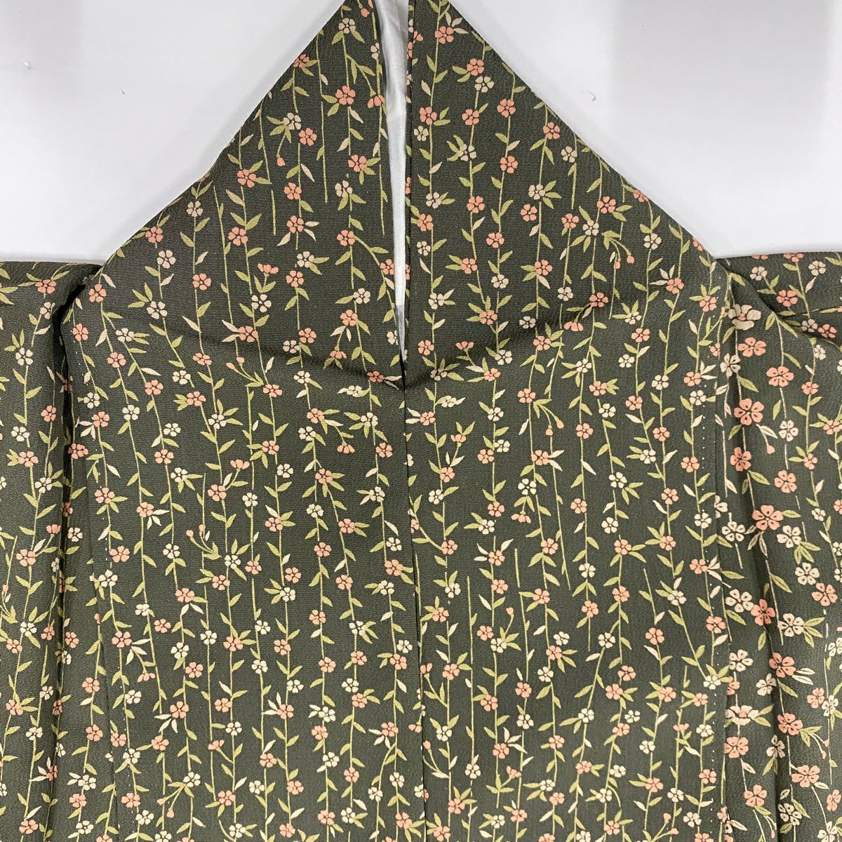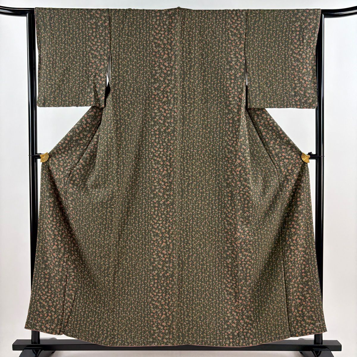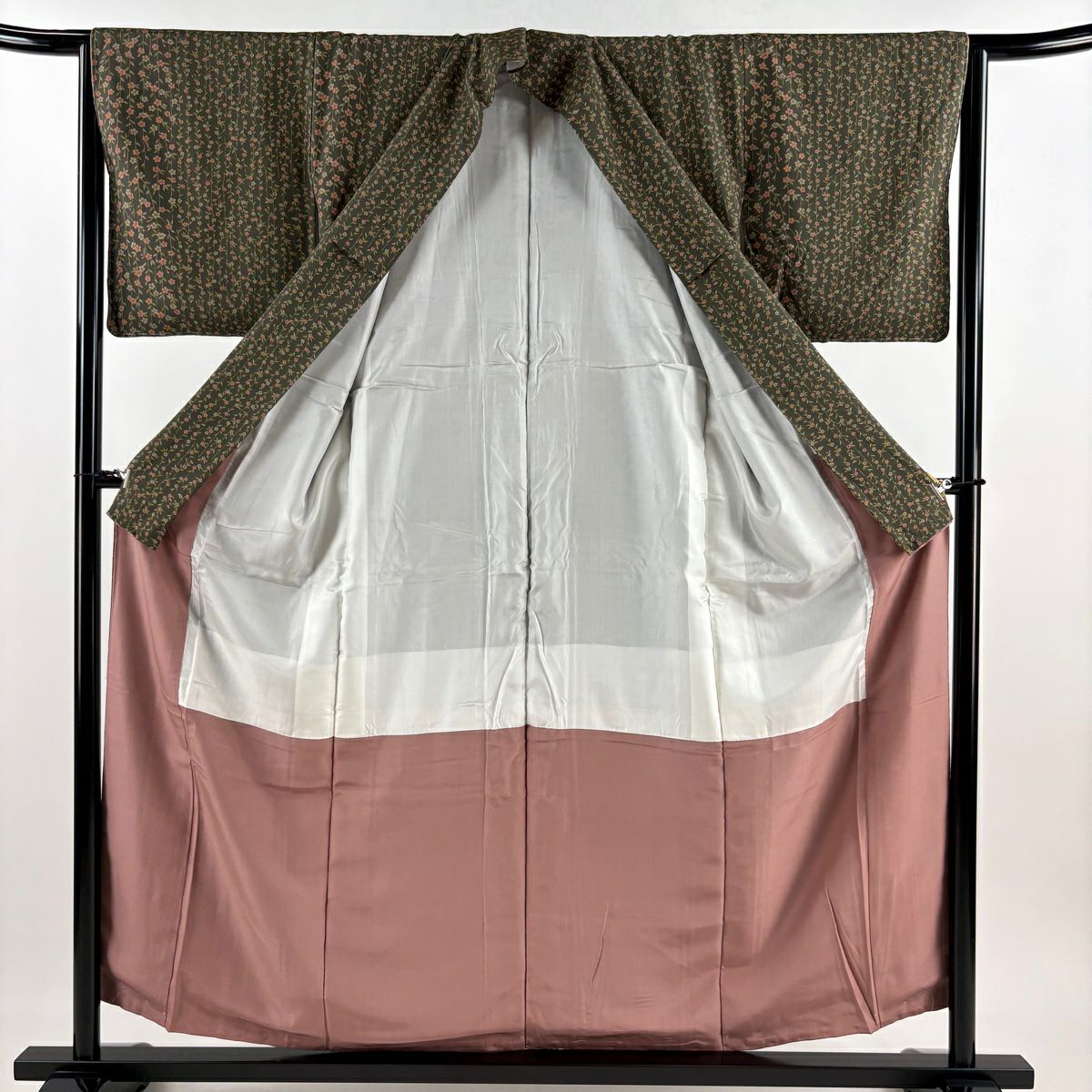 【在庫一掃】 【美品】 小紋 身丈156cm 裄丈64.5cm M 袷 桜 深緑 正絹 優品