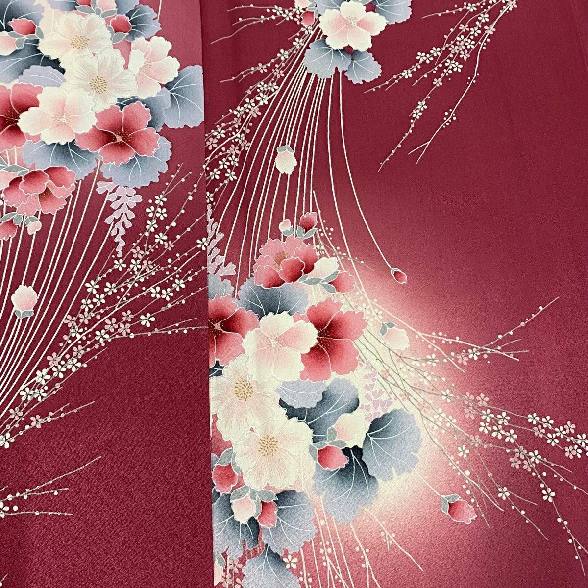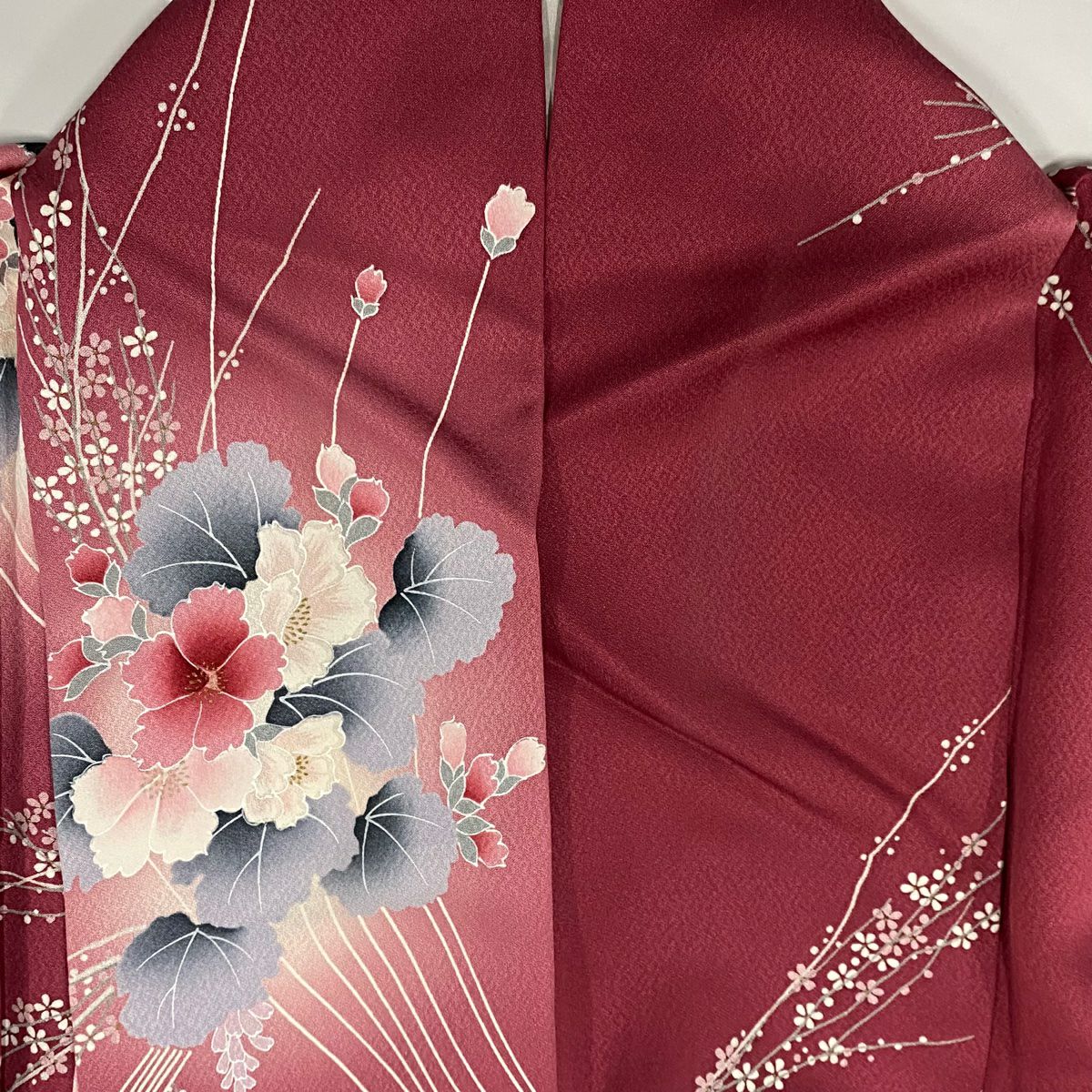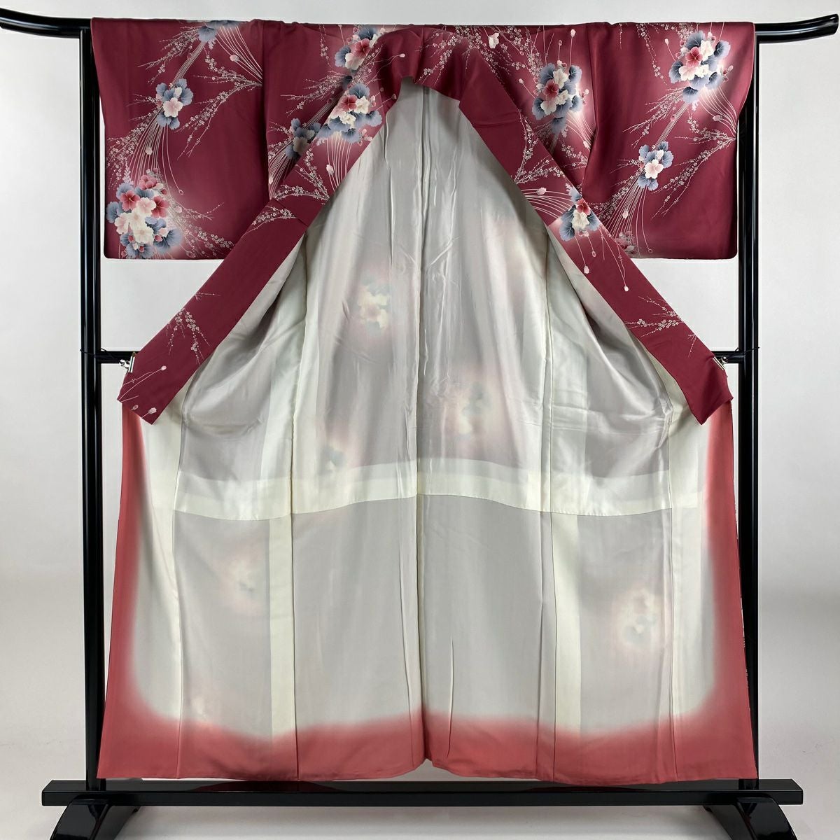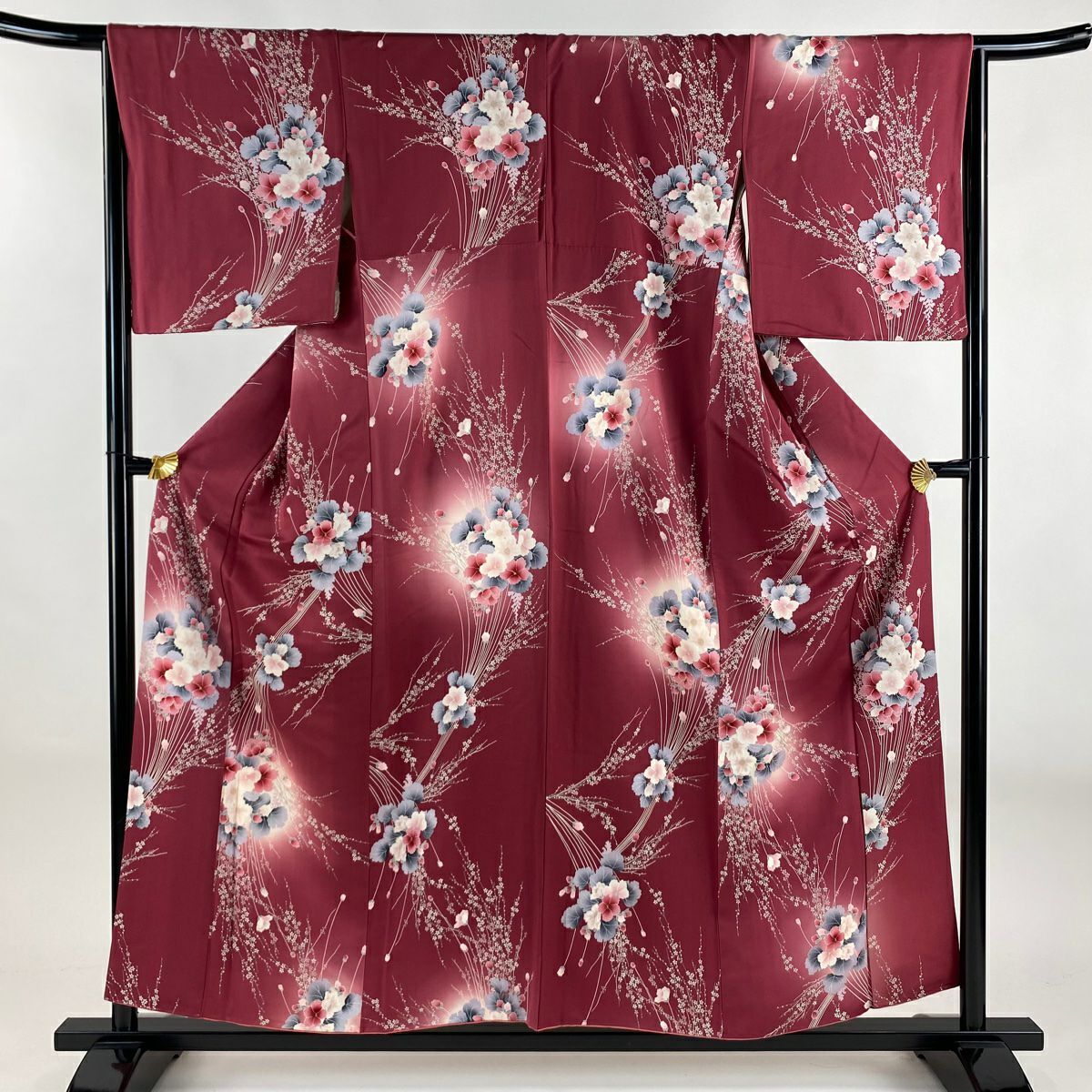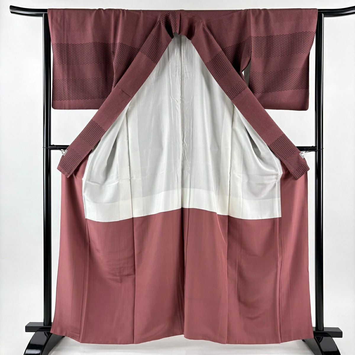 【美品】 付下げ 身丈162.5cm 裄丈63.5cm S 袷 麻の葉 花菱 小豆色 正絹 優品