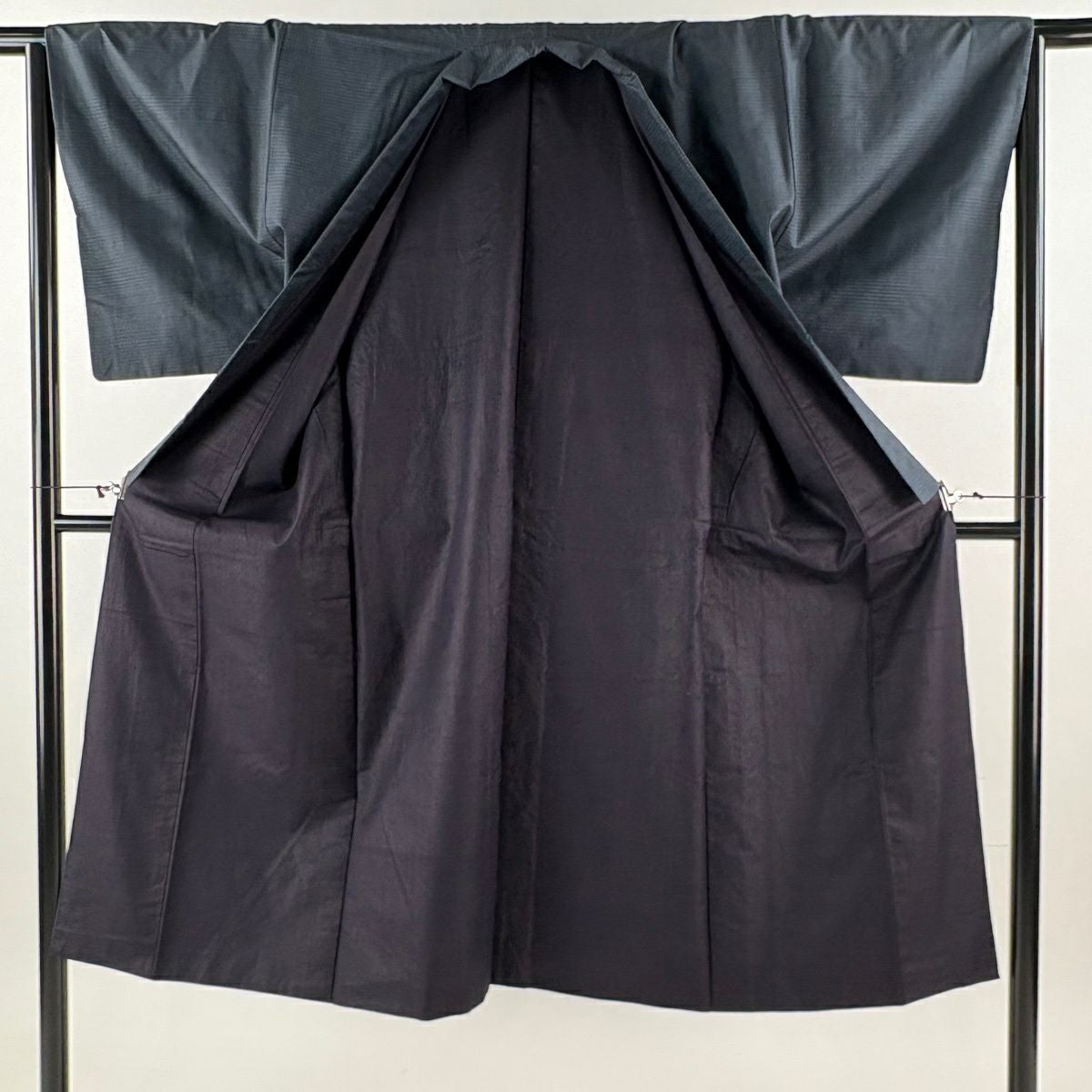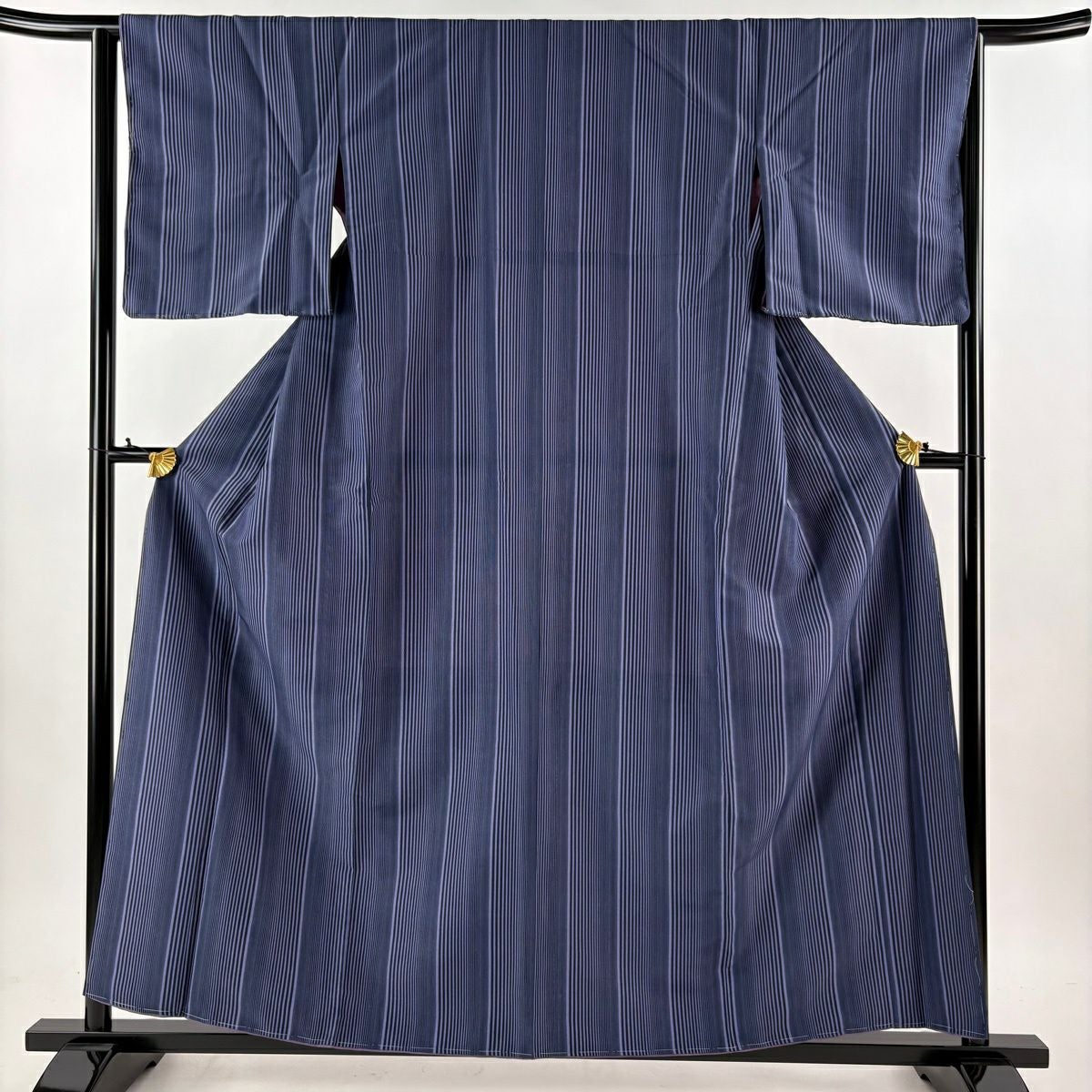 【美品】 小紋 身丈157.5cm 裄丈64.5cm M 袷 洗える着物 縦縞 濃紫 化繊 優品