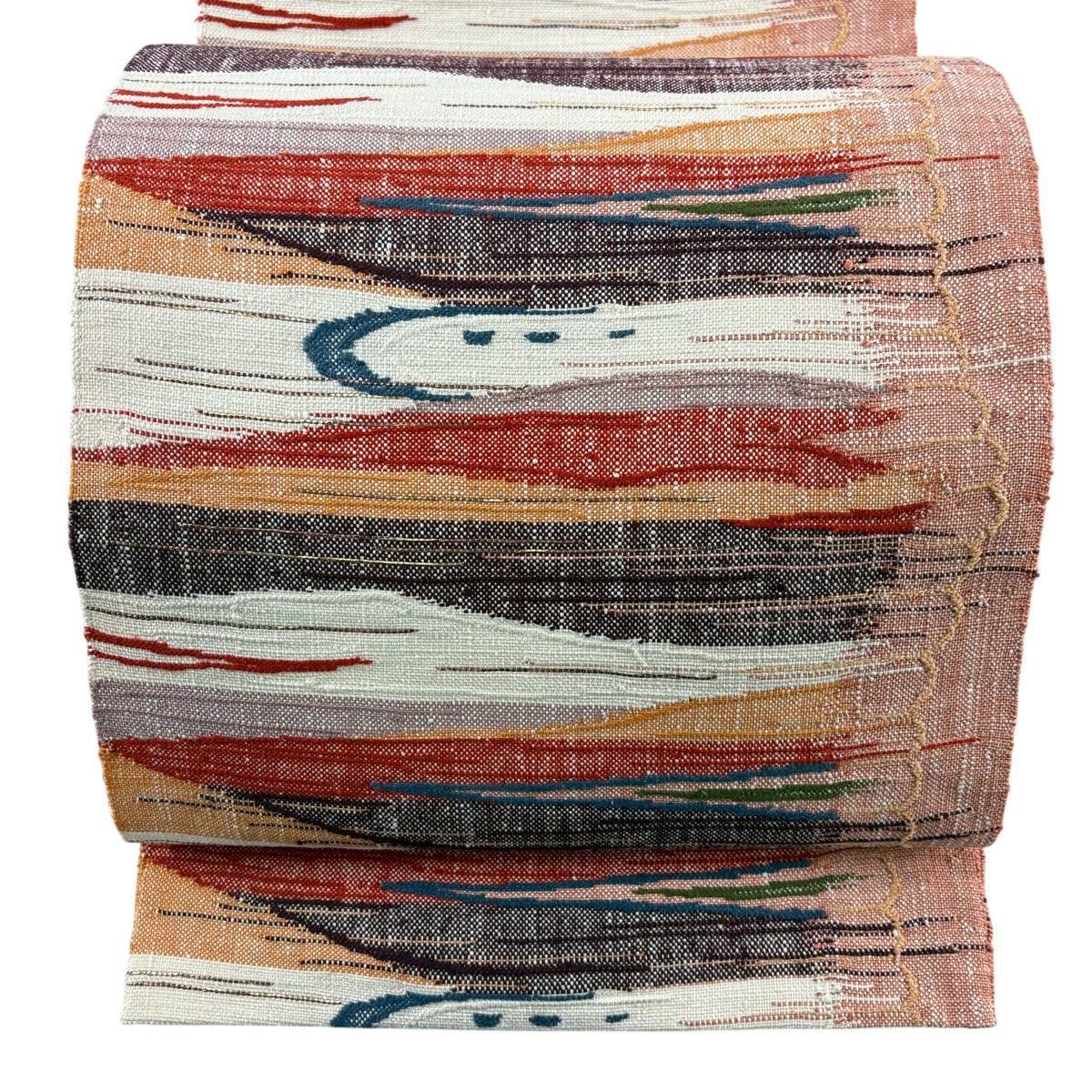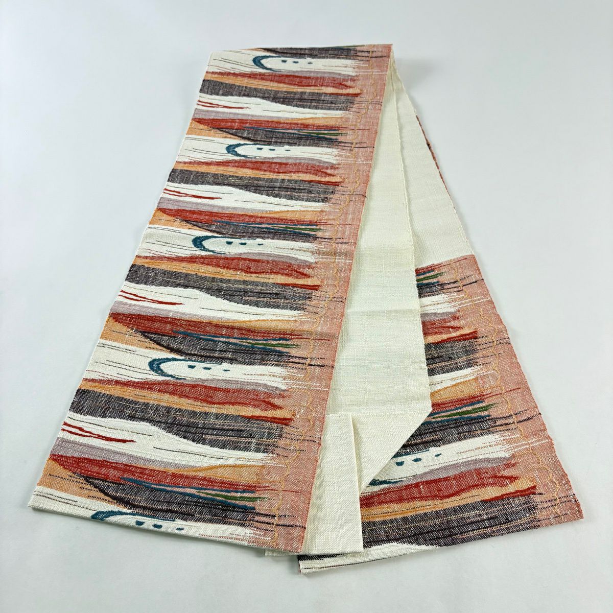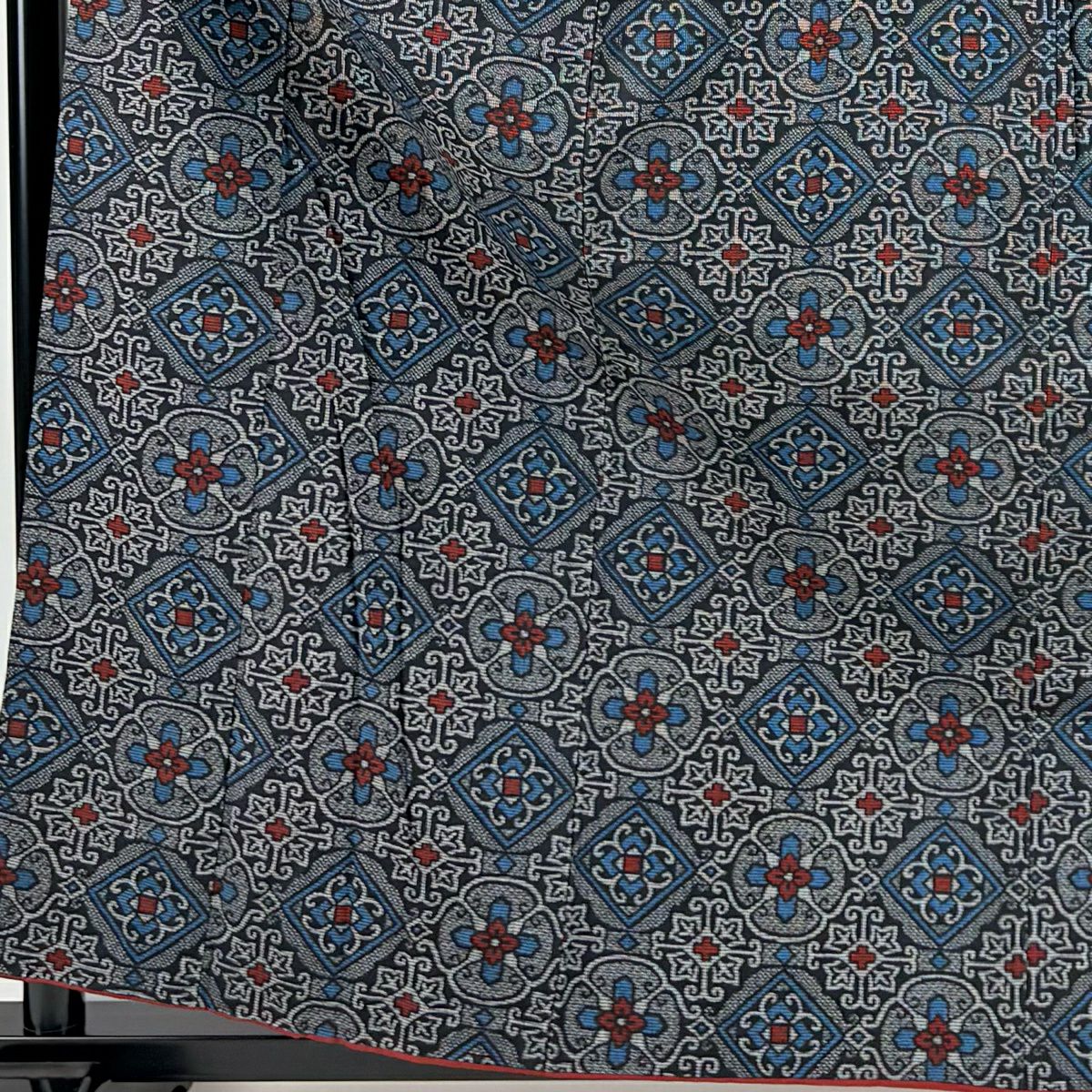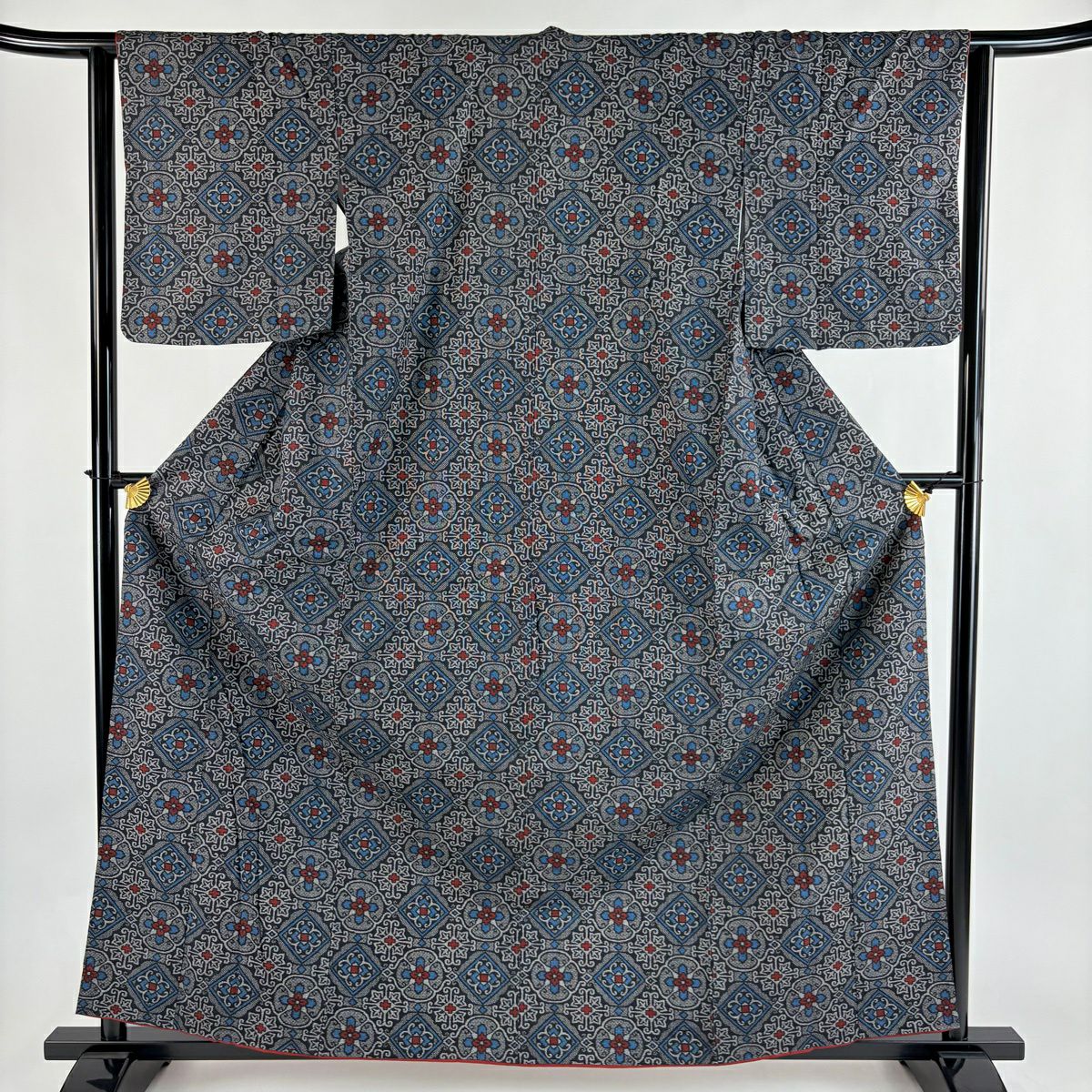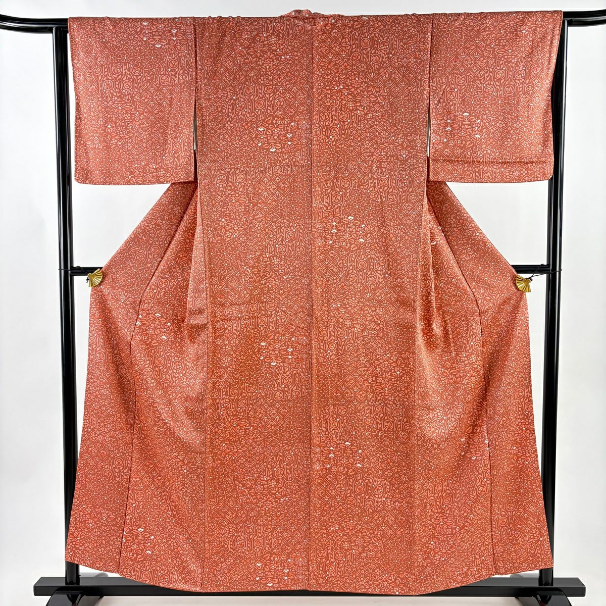 【在庫一掃】 小紋 身丈159cm 裄丈65.5cm M 袷 幾何学模様 朱色 正絹 優品