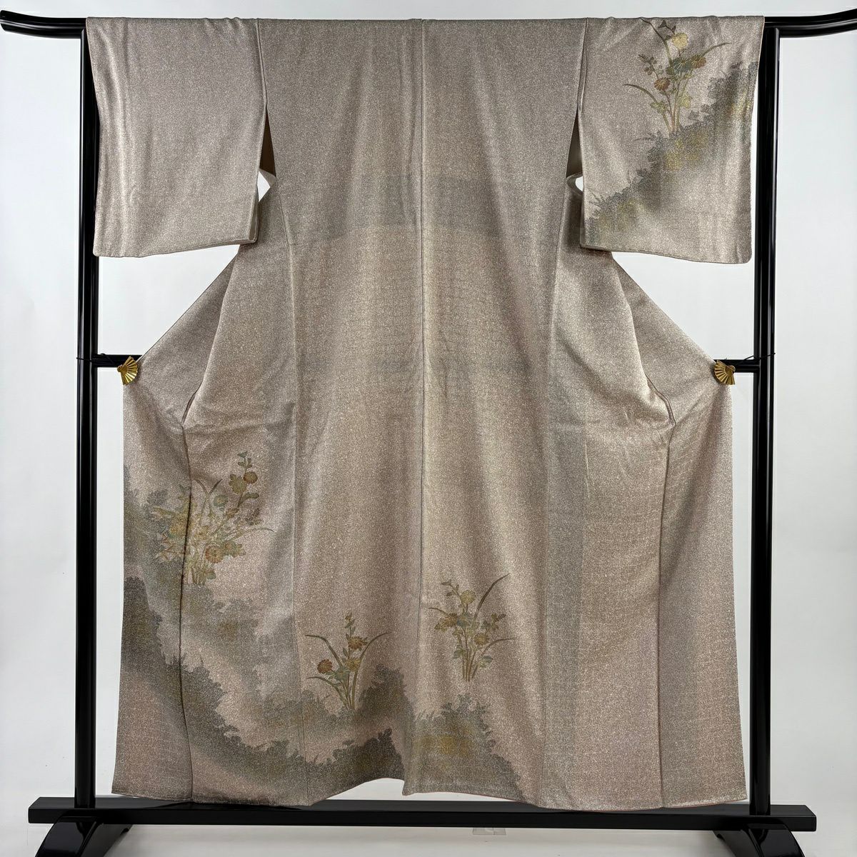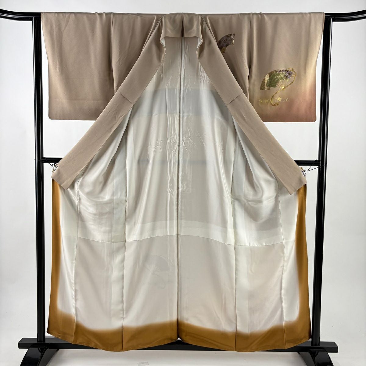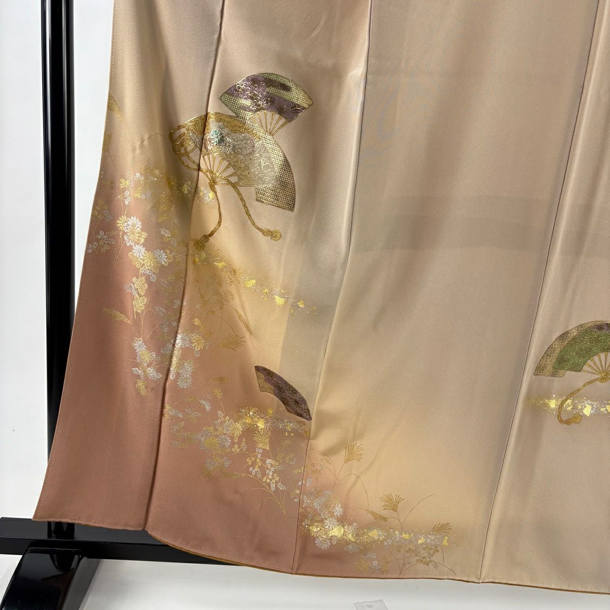 付下げ 身丈158cm 裄丈63.5cm S 袷 扇 菊 金銀彩 ぼかし 薄茶色 正絹 優品