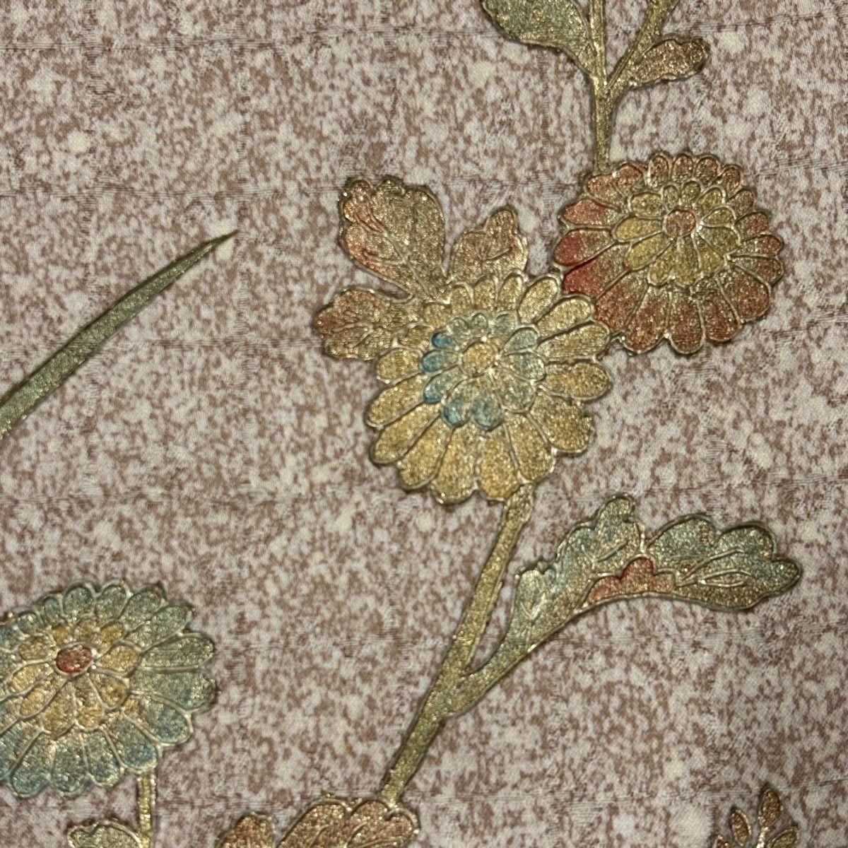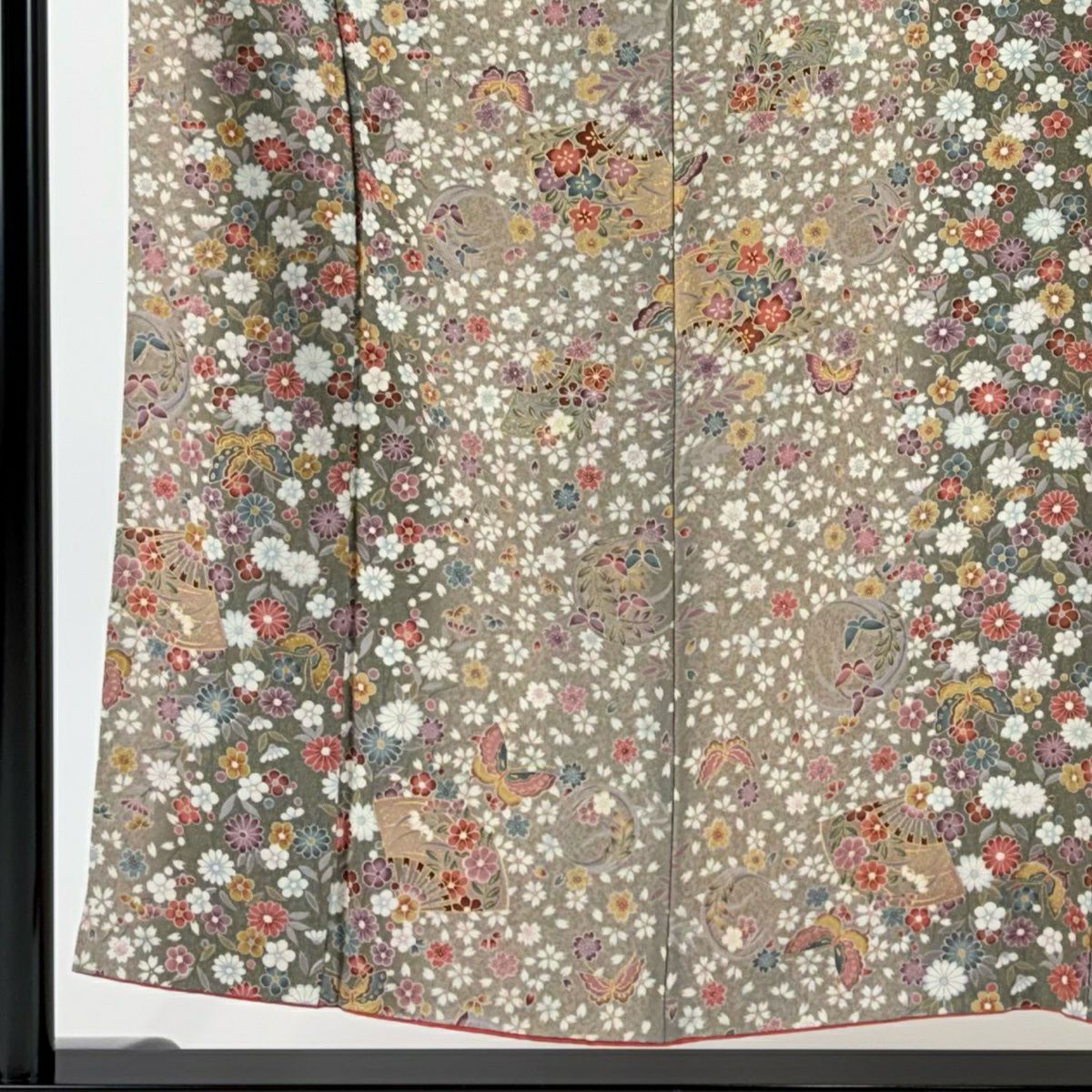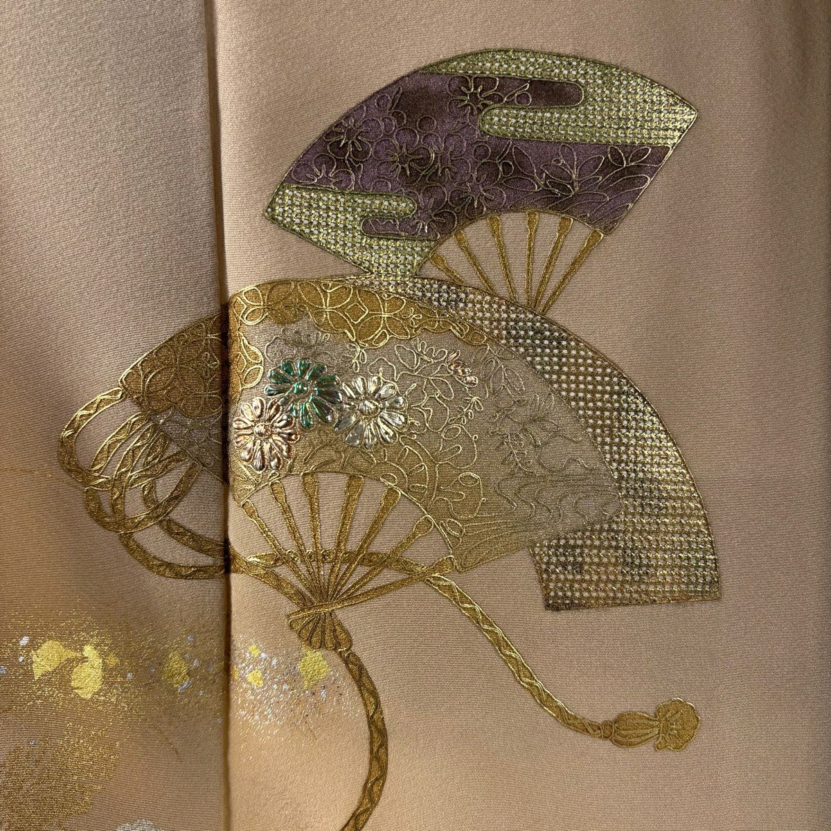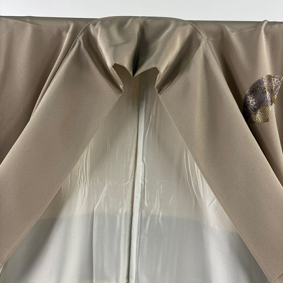 付下げ 身丈158cm 裄丈63.5cm S 袷 扇 菊 金銀彩 ぼかし 薄茶色 正絹 優品