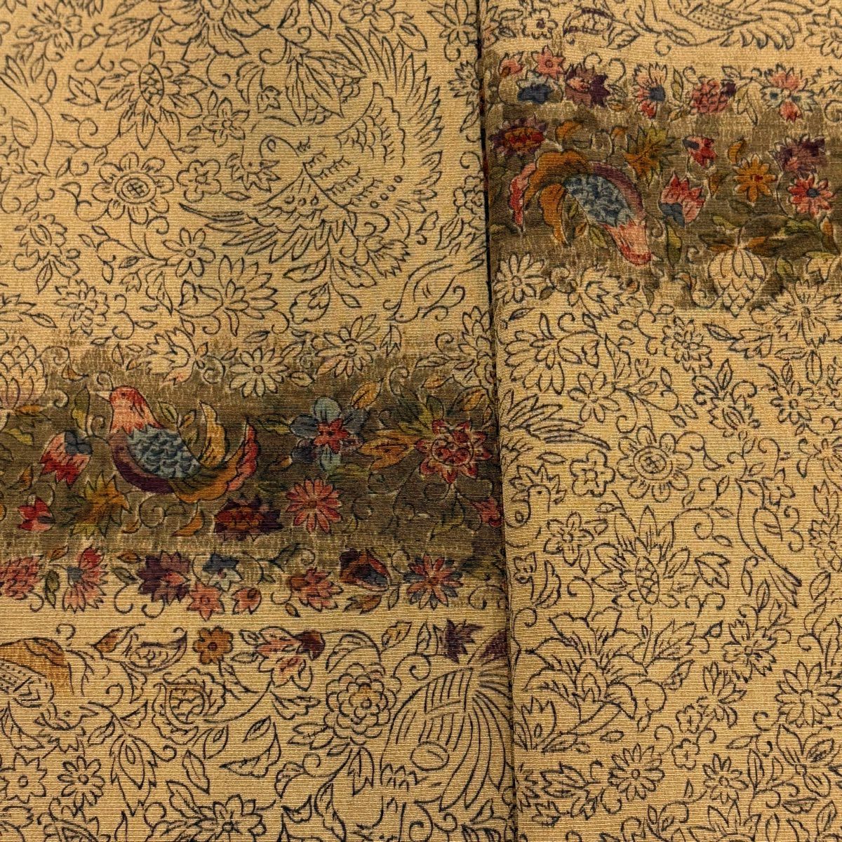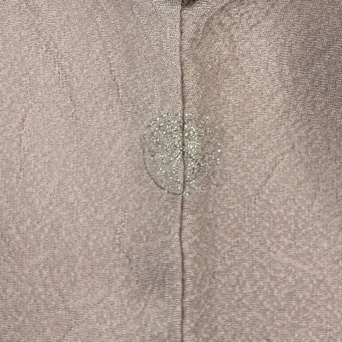 【美品】 小紋 身丈153.5cm 裄丈64cm M 袷 草花 鳥 縮緬 薄茶色 正絹 優品