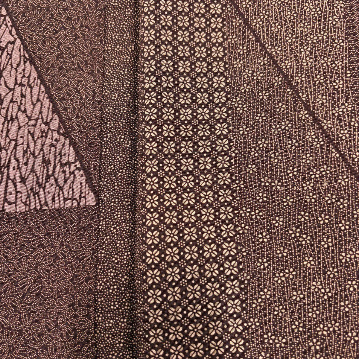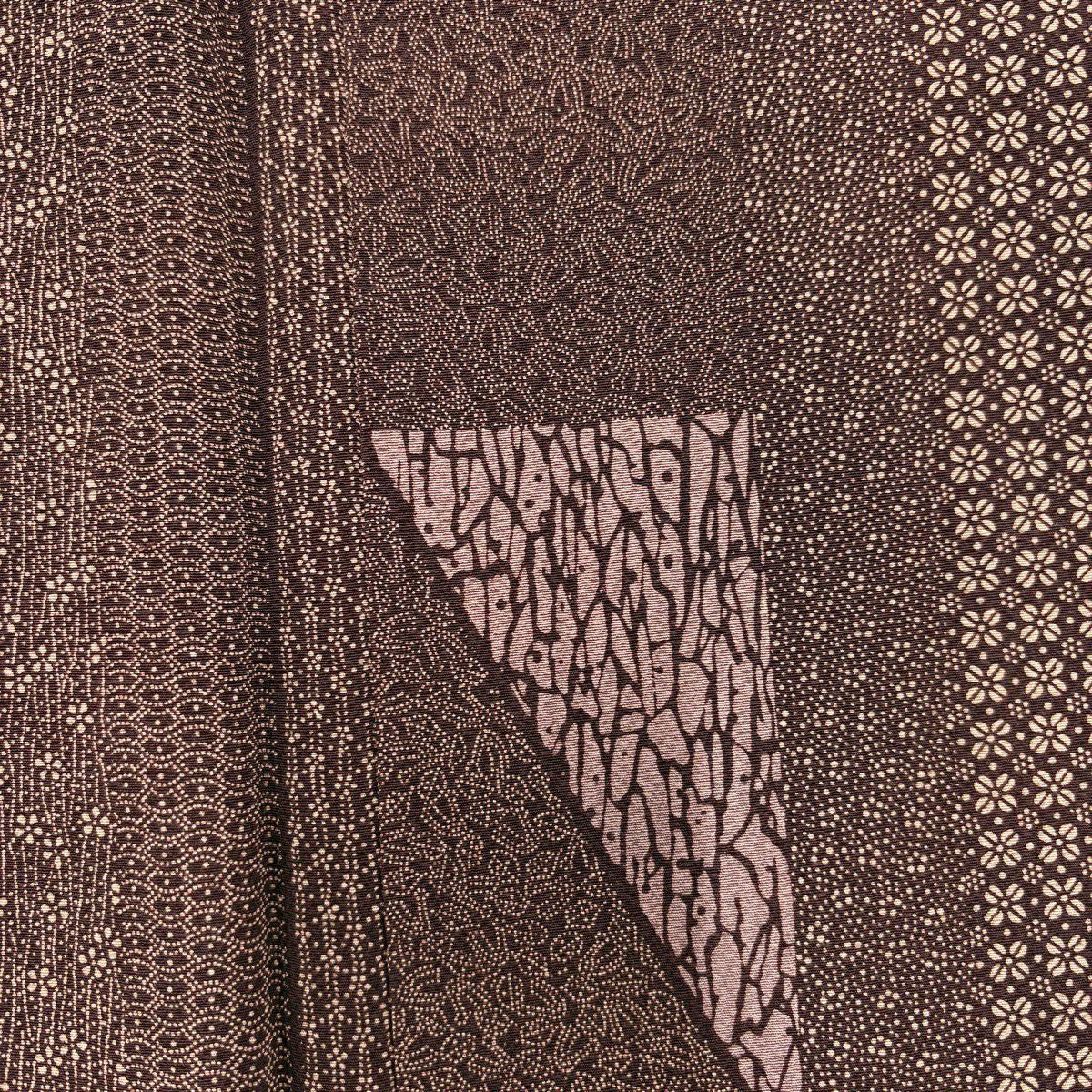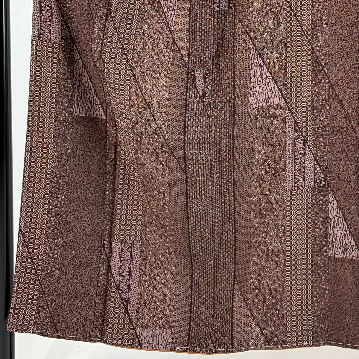【美品】 小紋 身丈156cm 裄丈62.5cm S 袷 地紋 幾何学模様 茶色 正絹 優品
