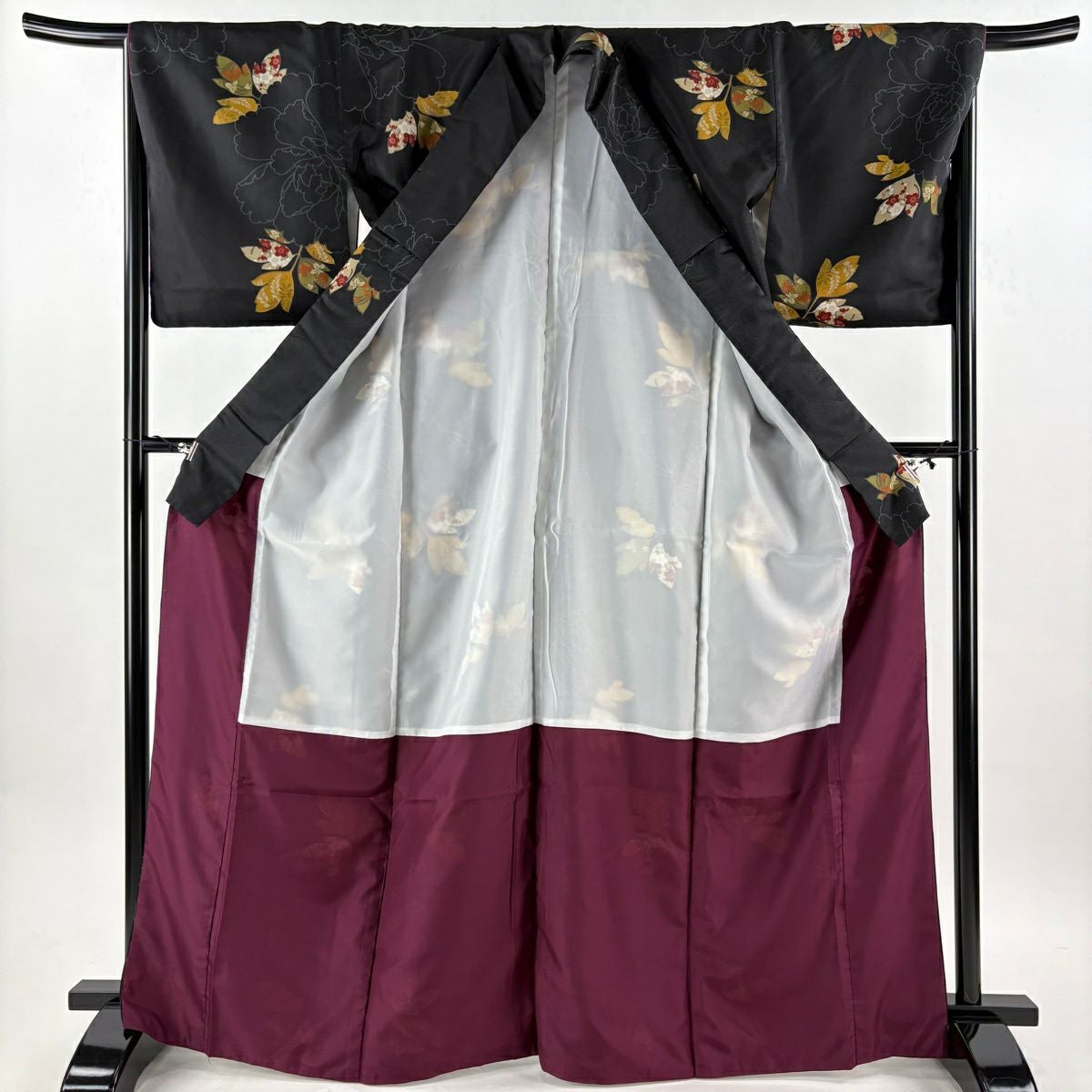 色留袖 身丈155.5cm 裄丈62cm S 袷 落款あり 地紋 薄小豆 正絹 優品 一つ紋