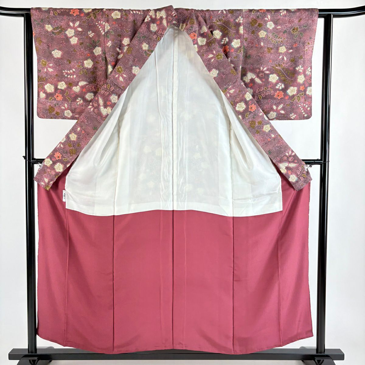 【美品】 小紋 身丈157.5cm 裄丈64.5cm M 袷 草花 サーモンピンク 正絹 優品