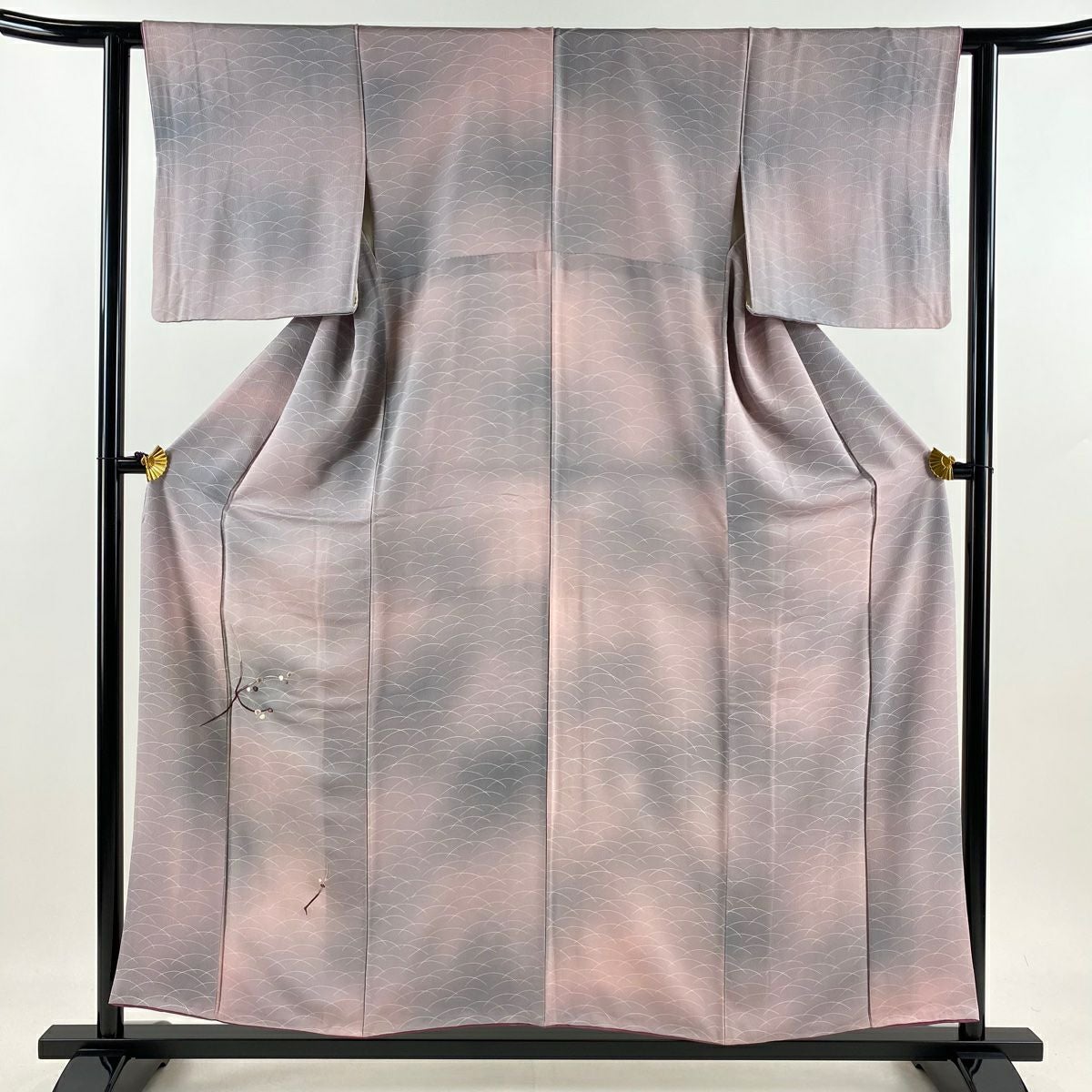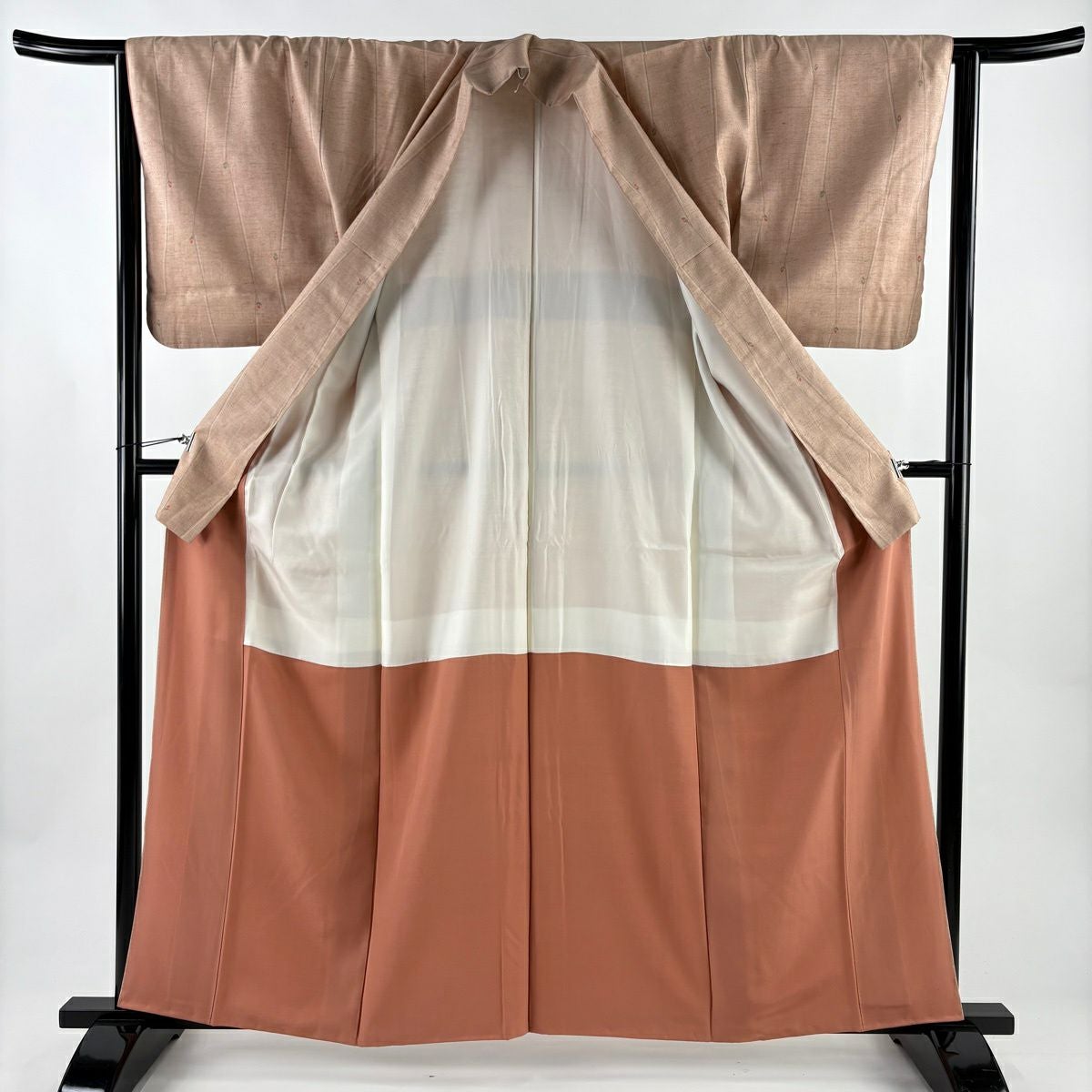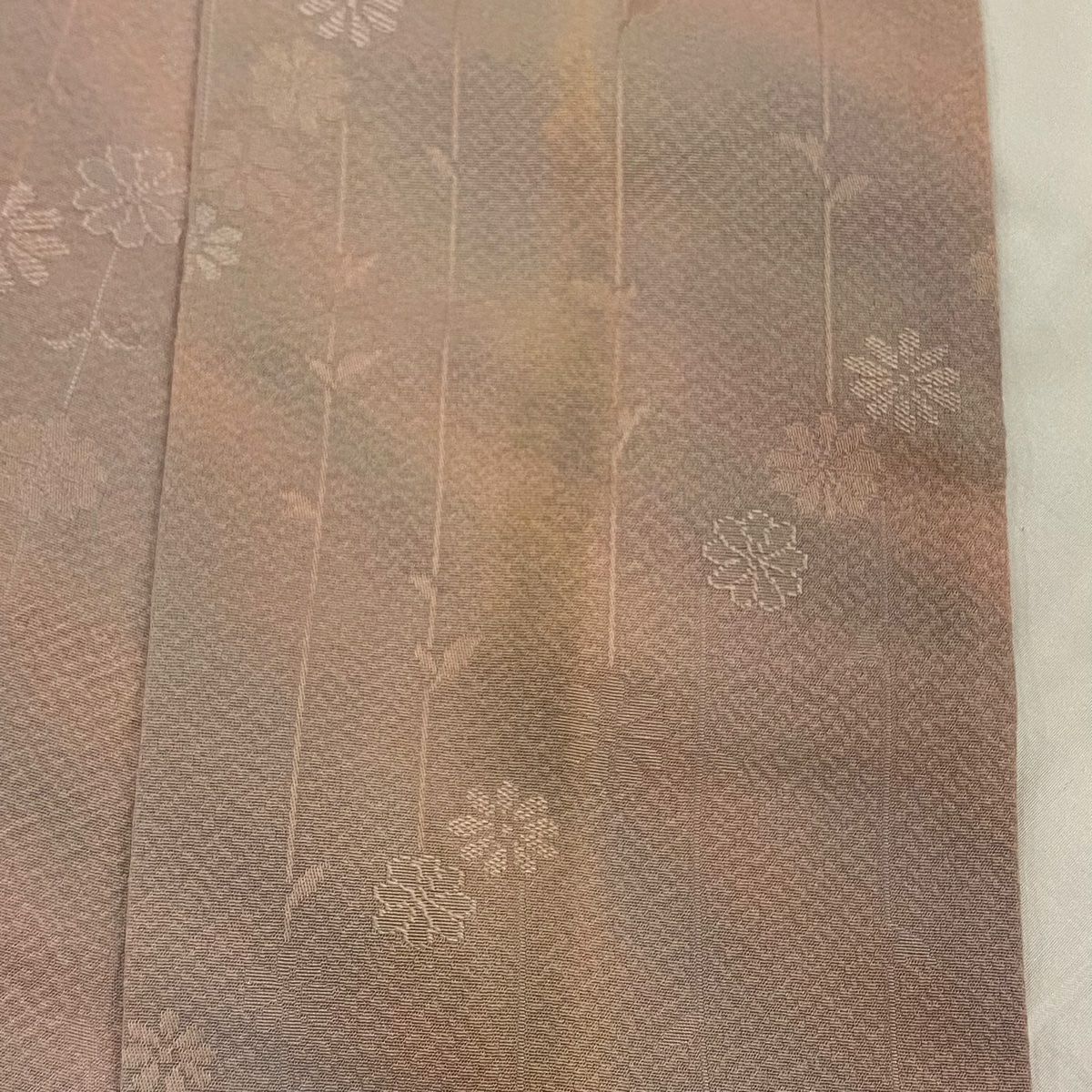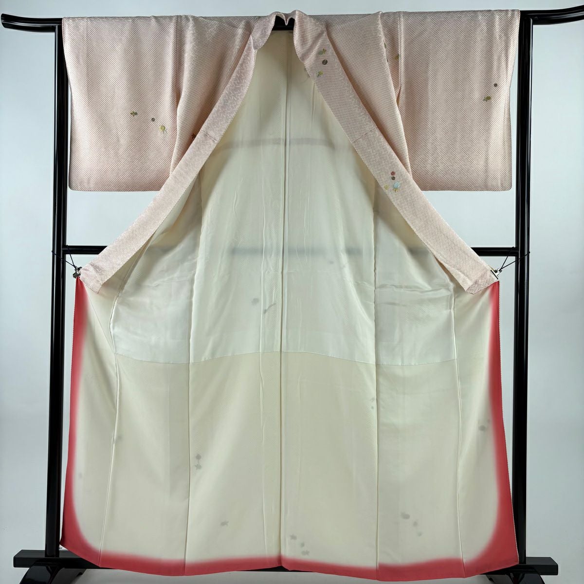 【在庫一掃】 小紋 身丈156cm 裄丈63.5cm S 袷 地紋 斜めぼかし ピンクベージュ 正絹 優品 一つ紋