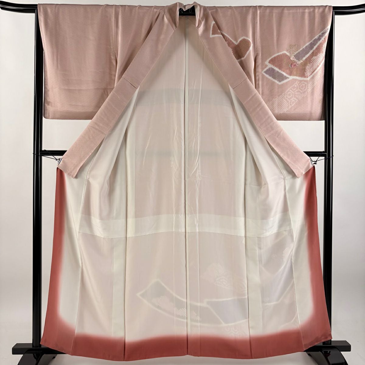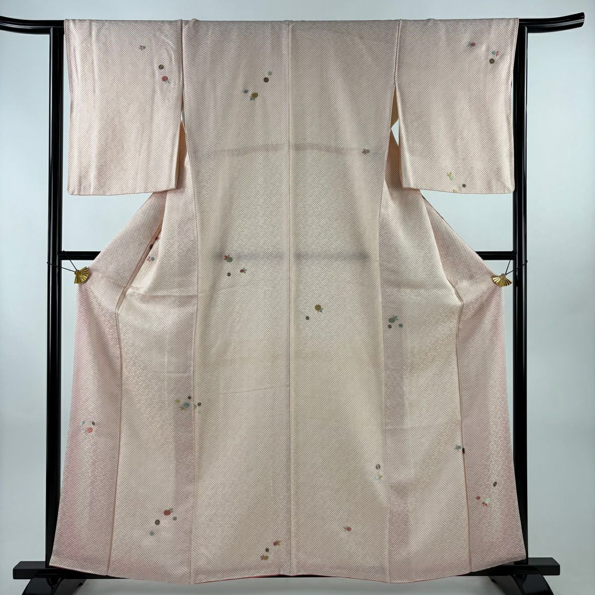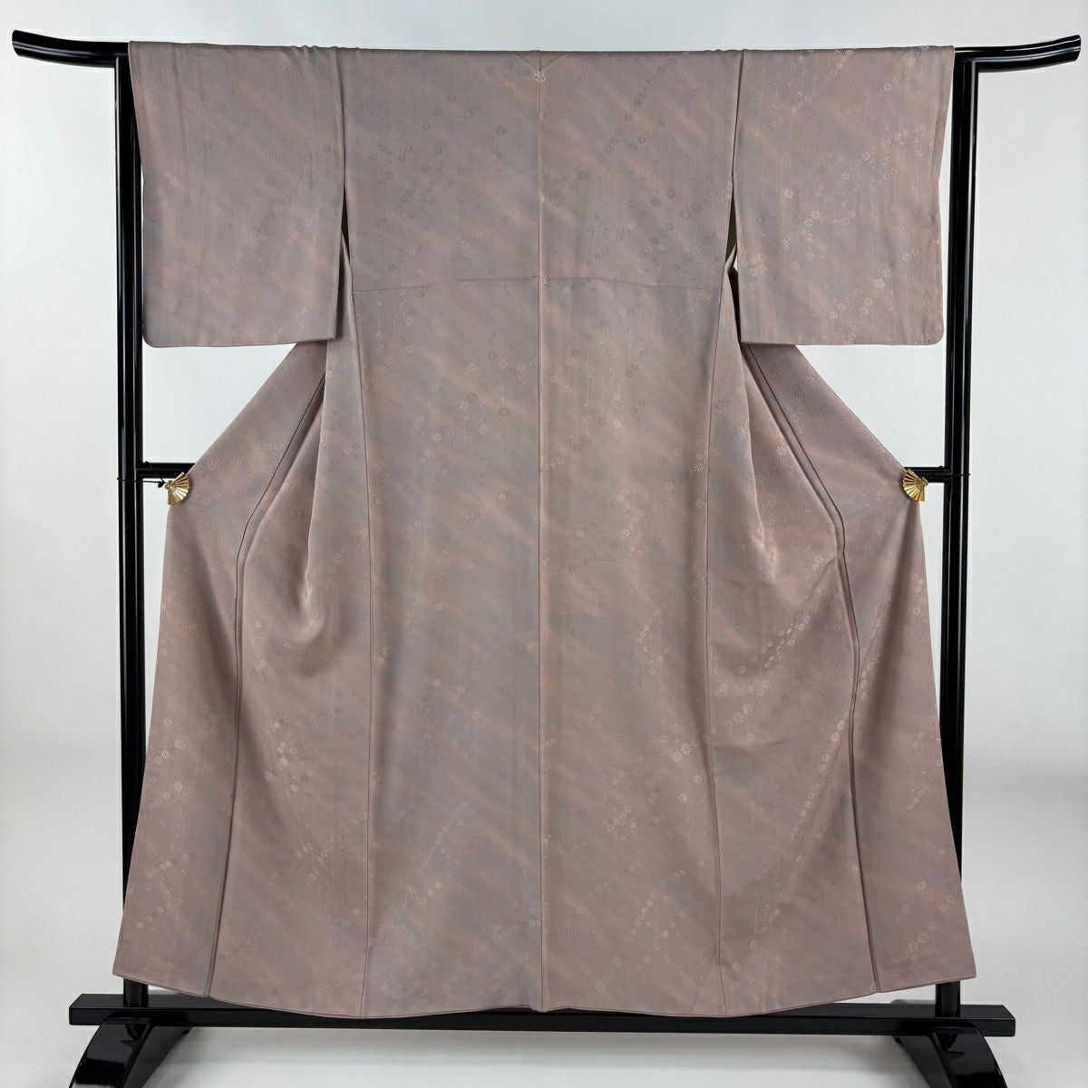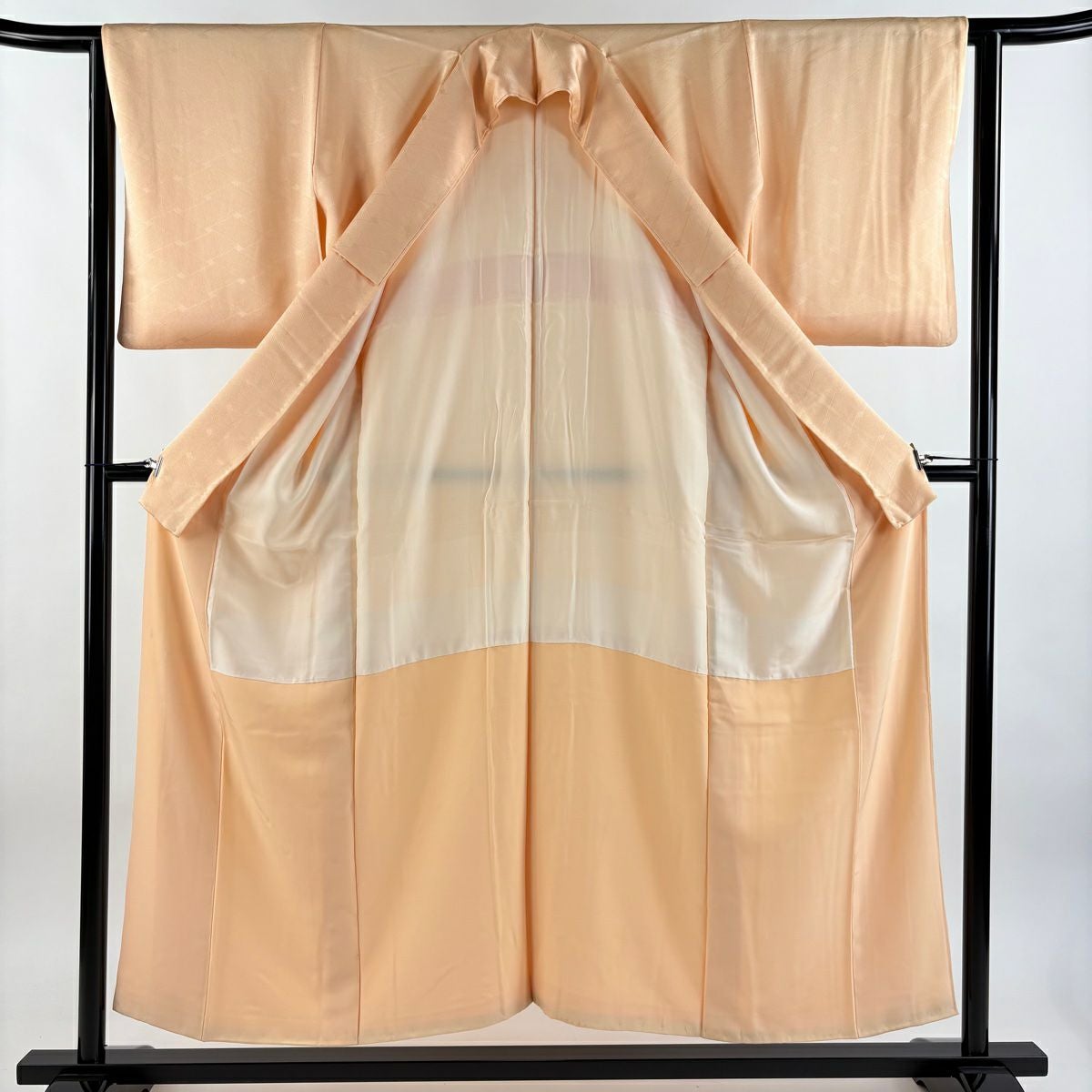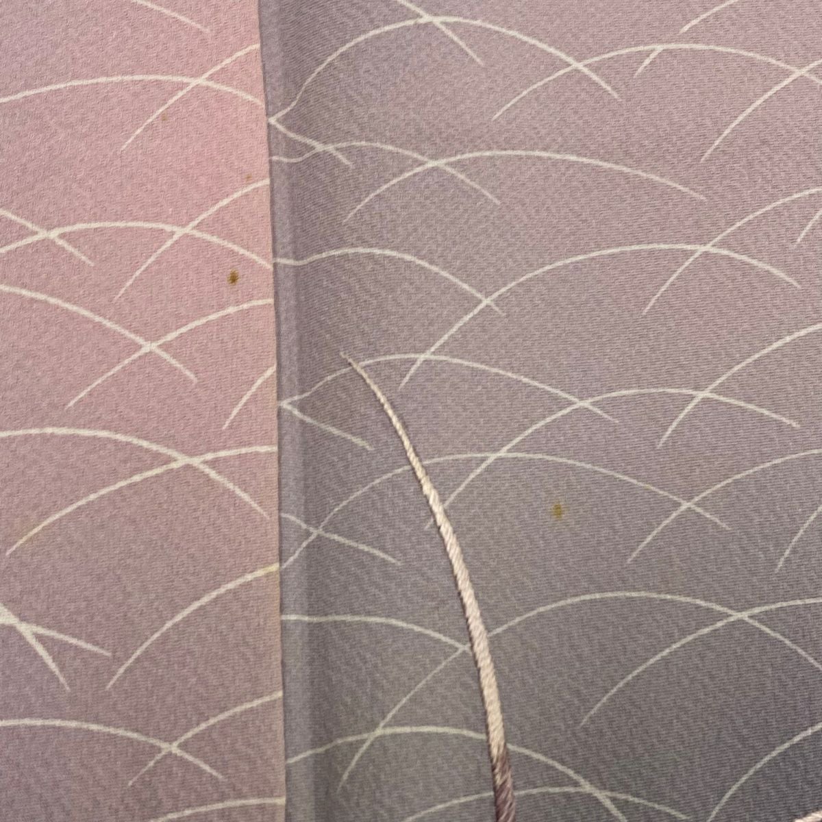 【在庫一掃】 小紋 身丈156cm 裄丈63.5cm S 袷 地紋 斜めぼかし ピンクベージュ 正絹 優品 一つ紋