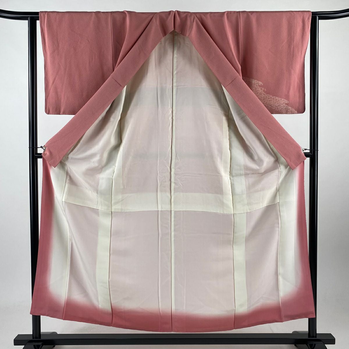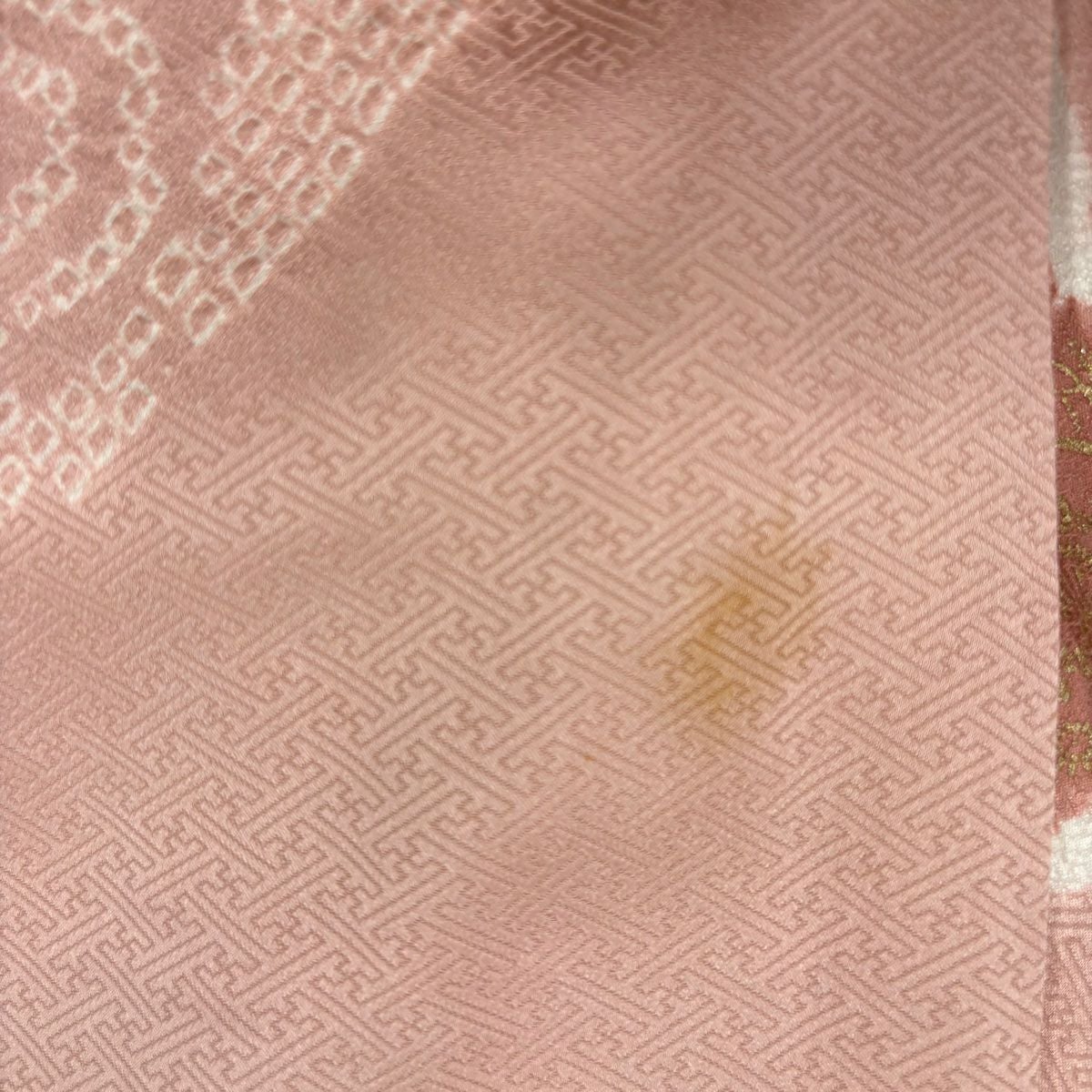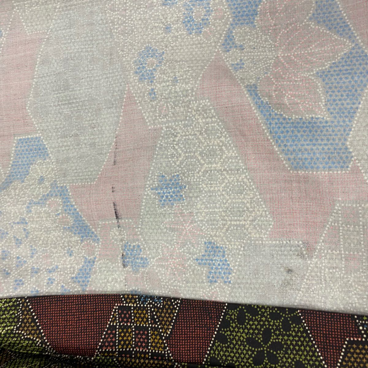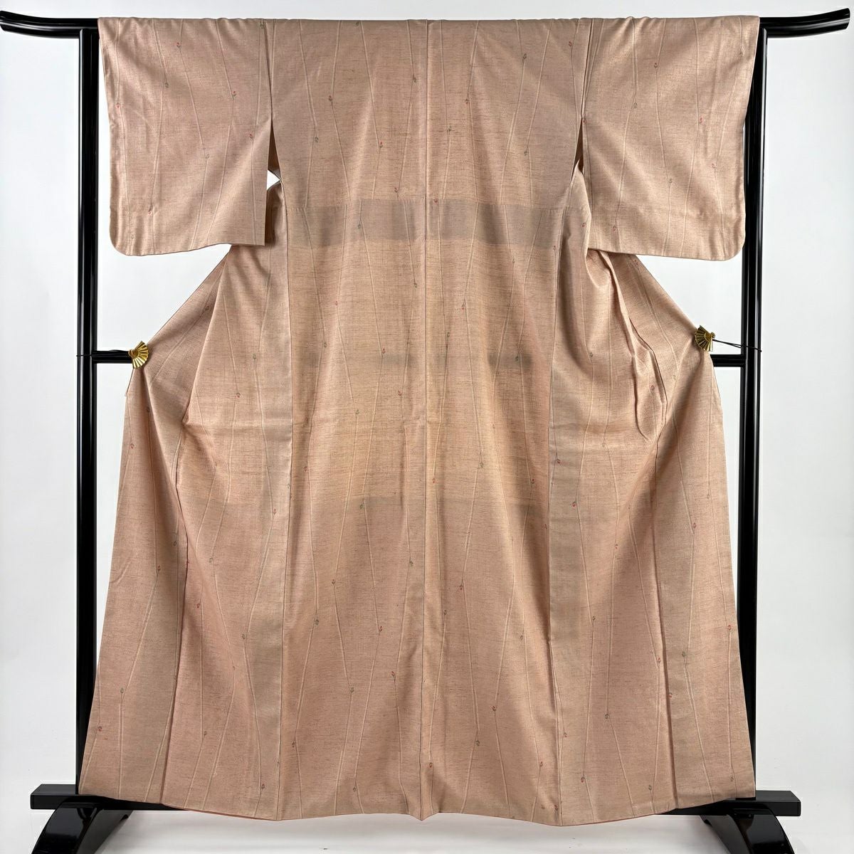 【在庫一掃】 小紋 身丈156cm 裄丈63.5cm S 袷 地紋 斜めぼかし ピンクベージュ 正絹 優品 一つ紋