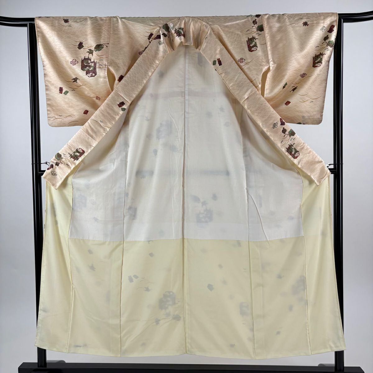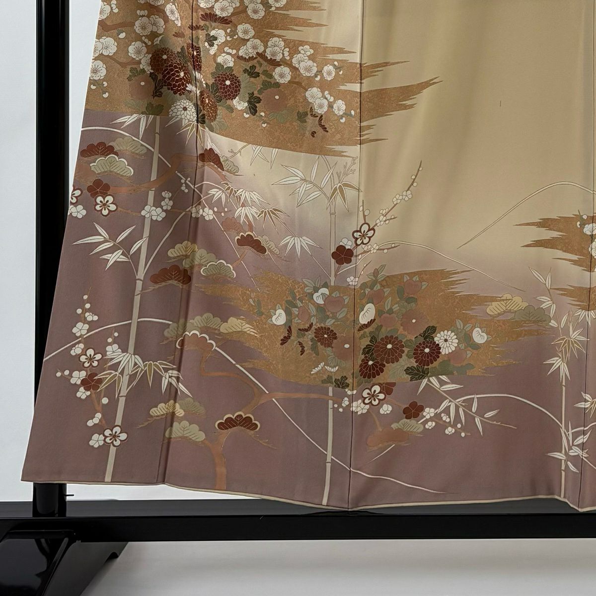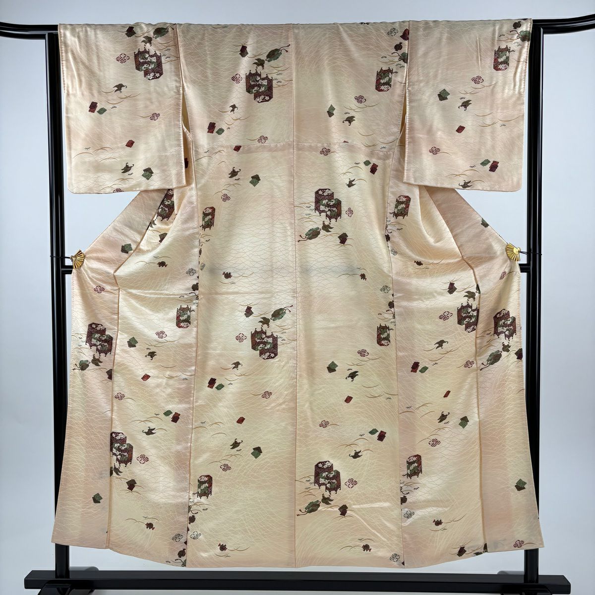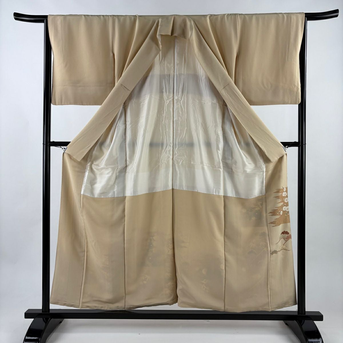 【在庫一掃】 付下げ 身丈156cm 裄丈63.5cm S 袷 桧扇 亀甲 金彩 ぼかし ベージュ 正絹 優品