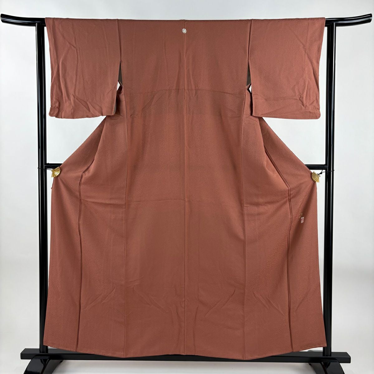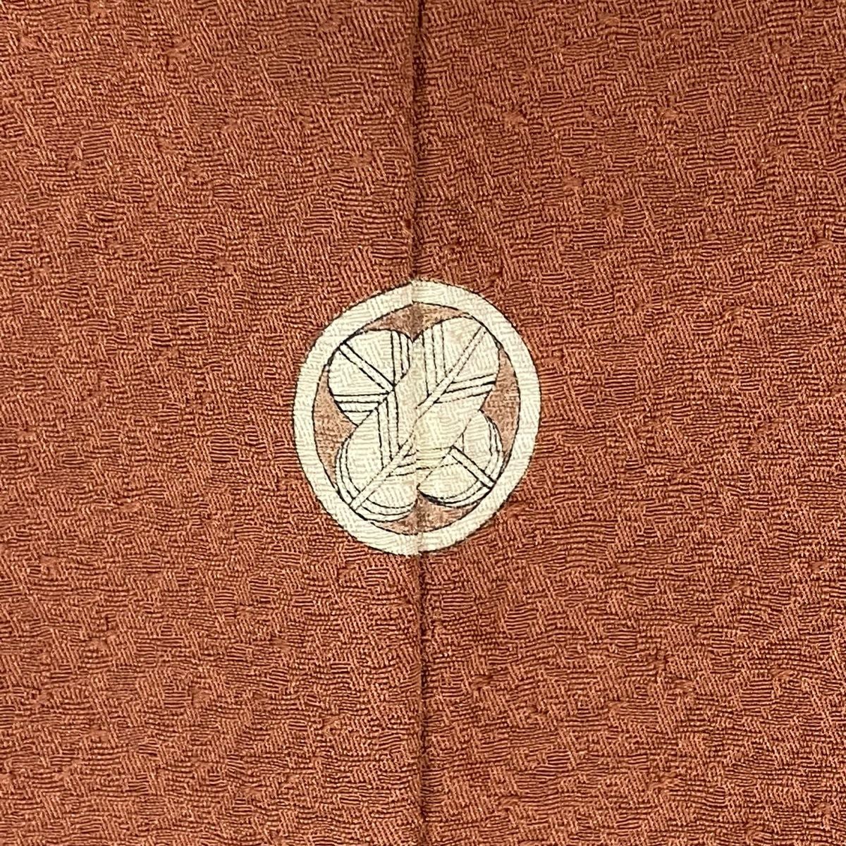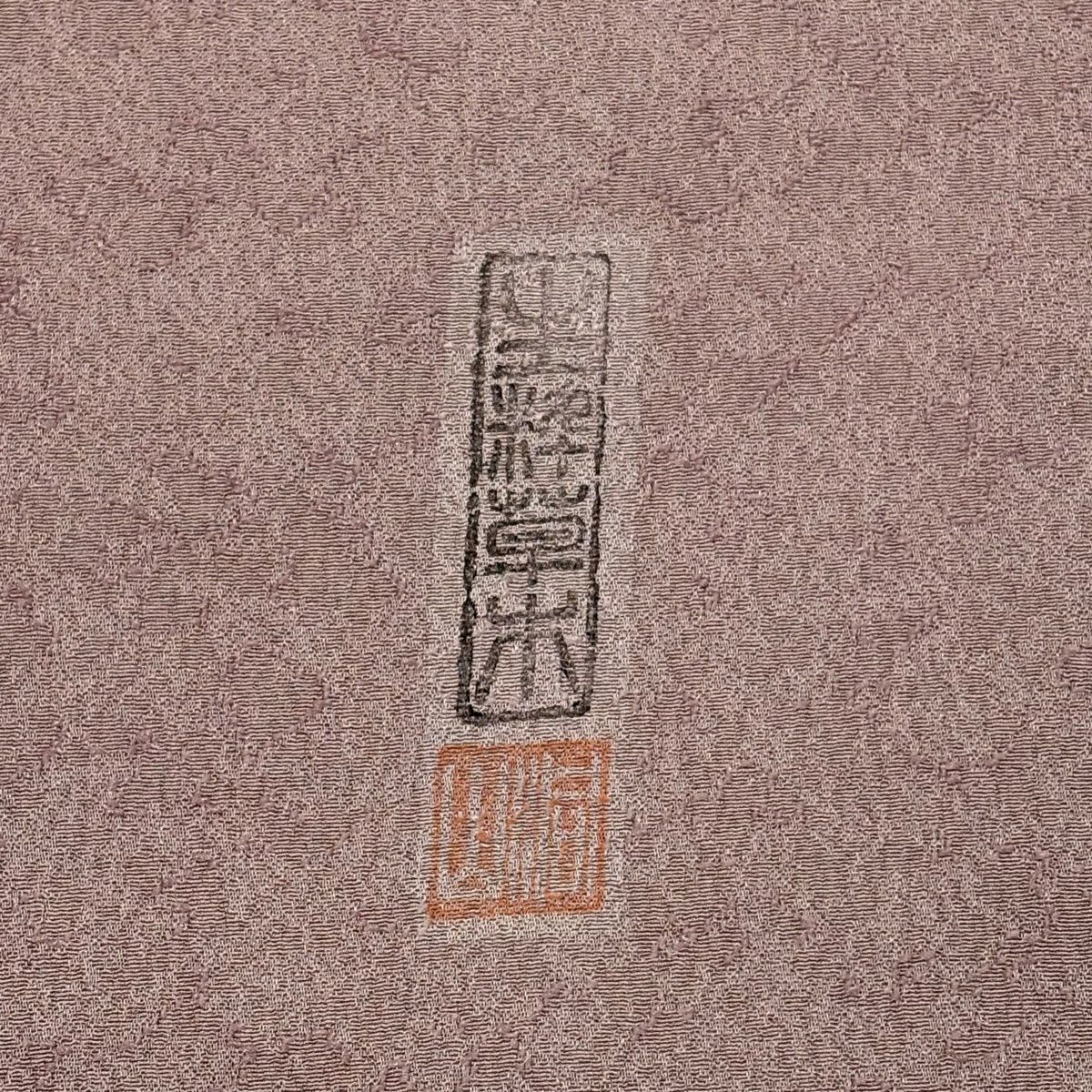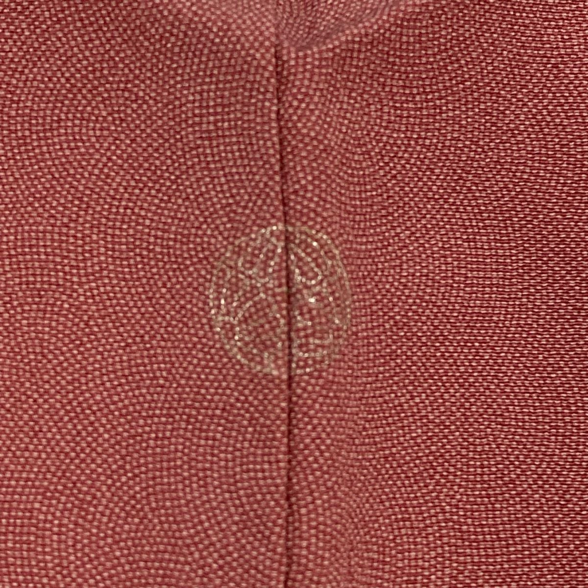 【在庫一掃】 色無地 身丈157.5cm 裄丈61.5cm S 袷 落款あり 地紋 薄小豆 正絹 優品 一つ紋