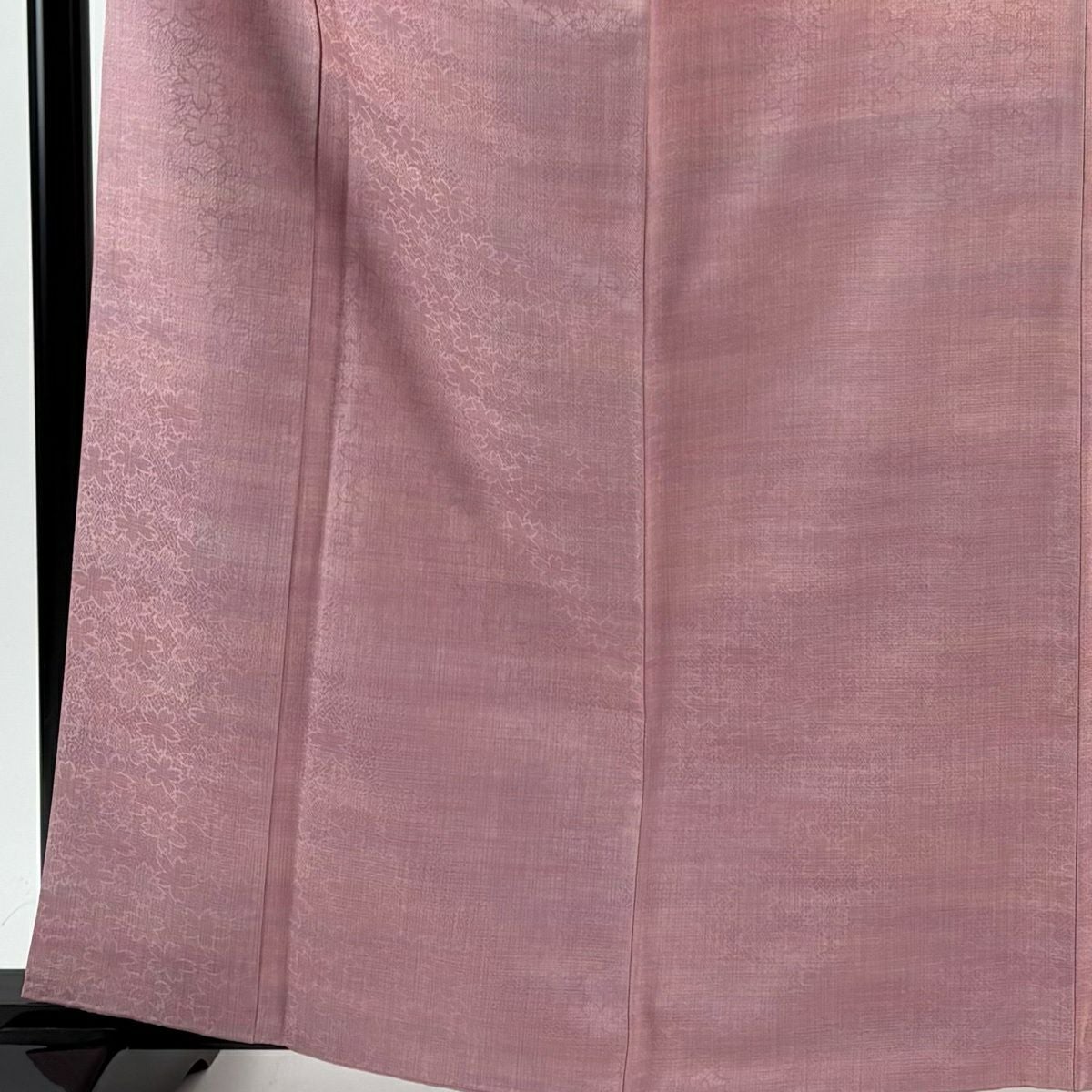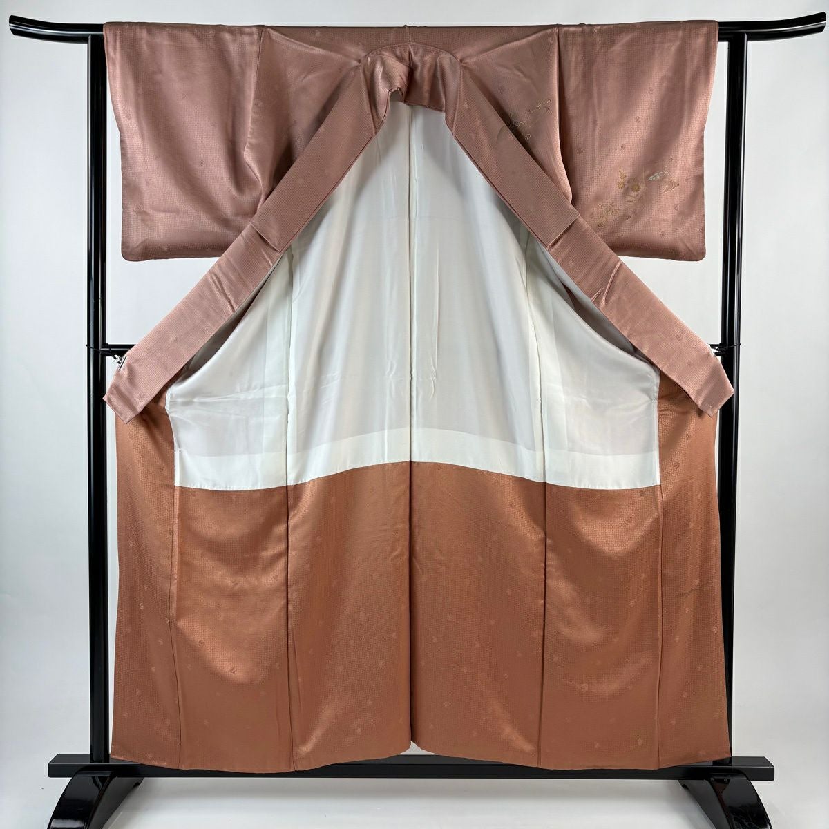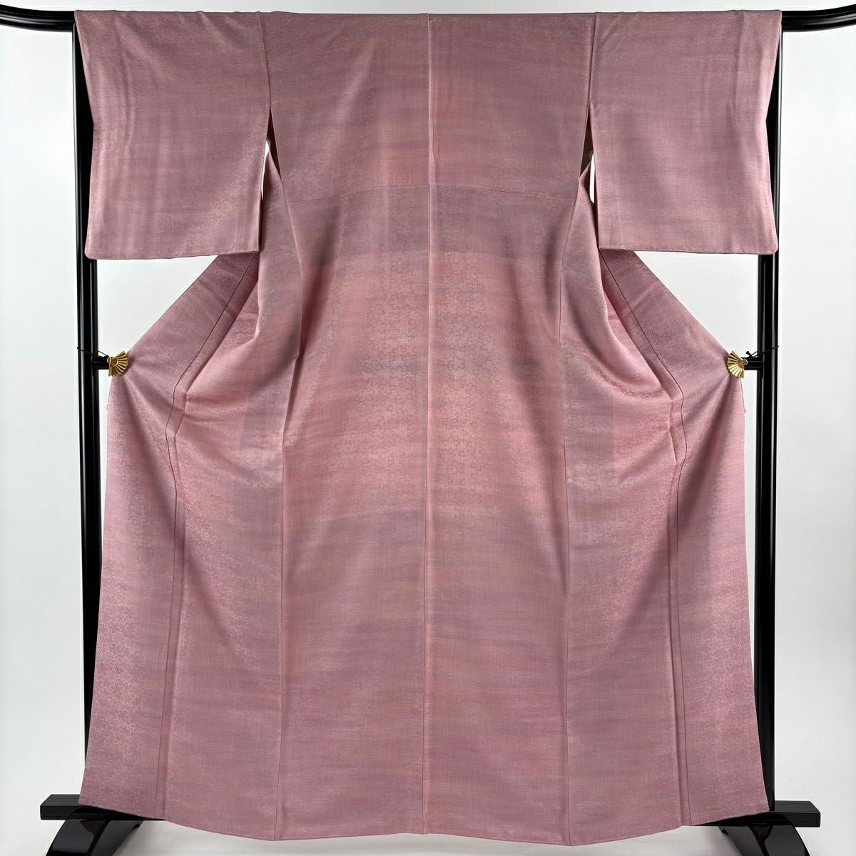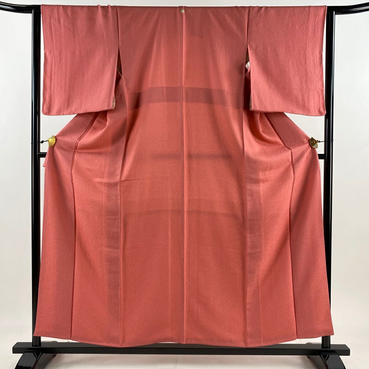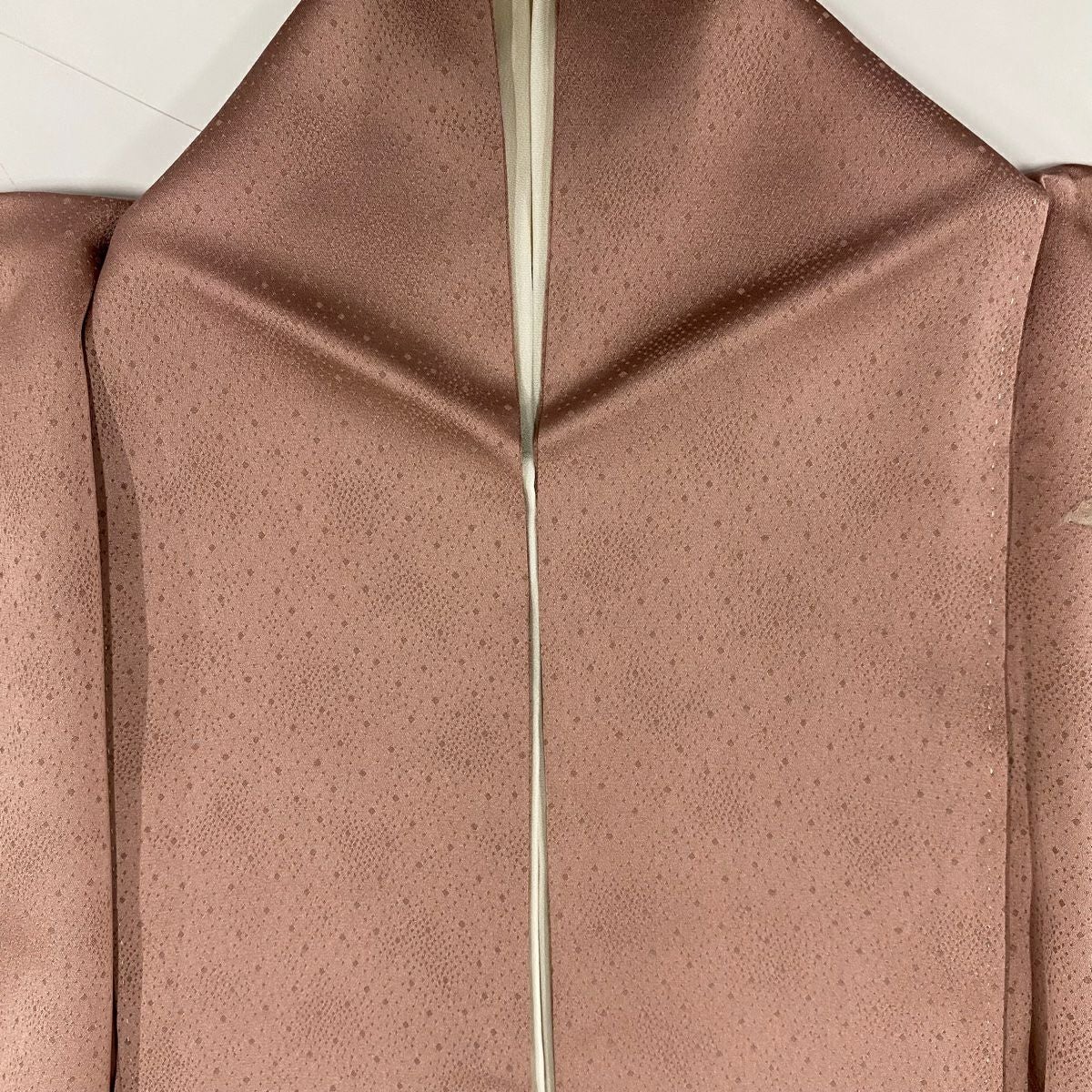 【在庫一掃】 色無地 身丈157.5cm 裄丈61.5cm S 袷 落款あり 地紋 薄小豆 正絹 優品 一つ紋