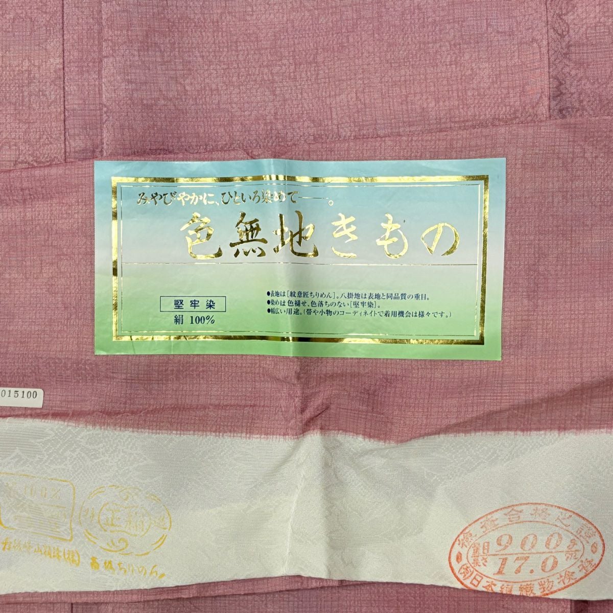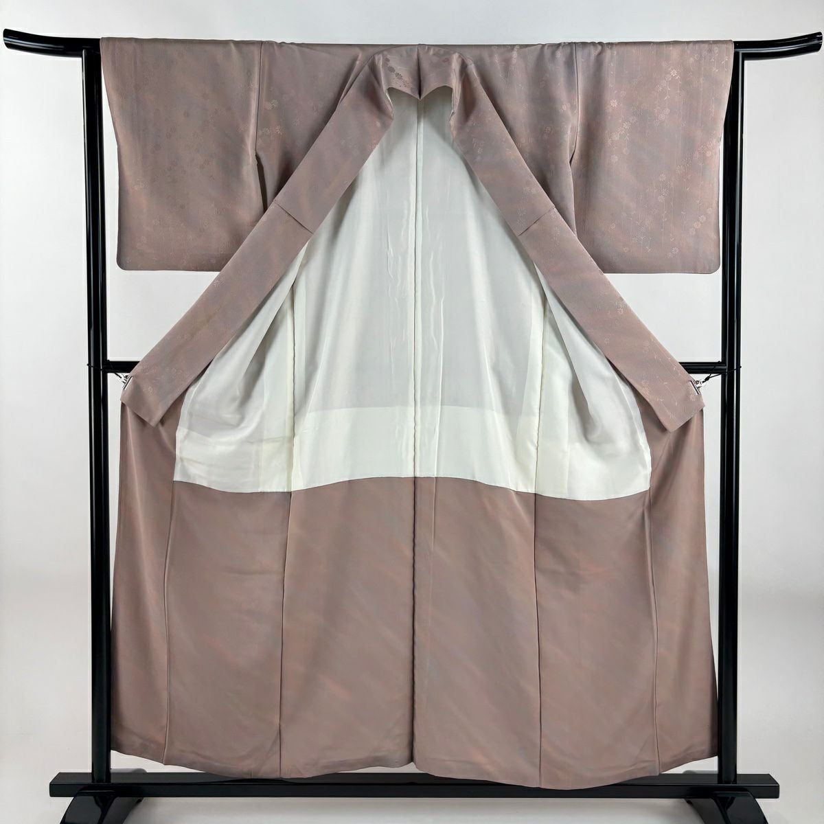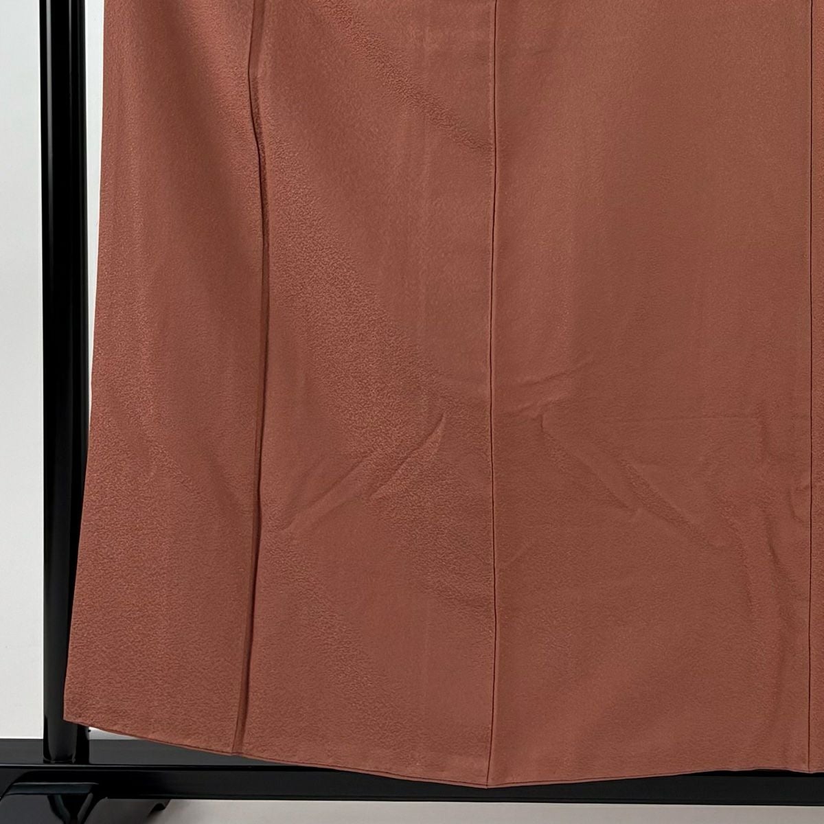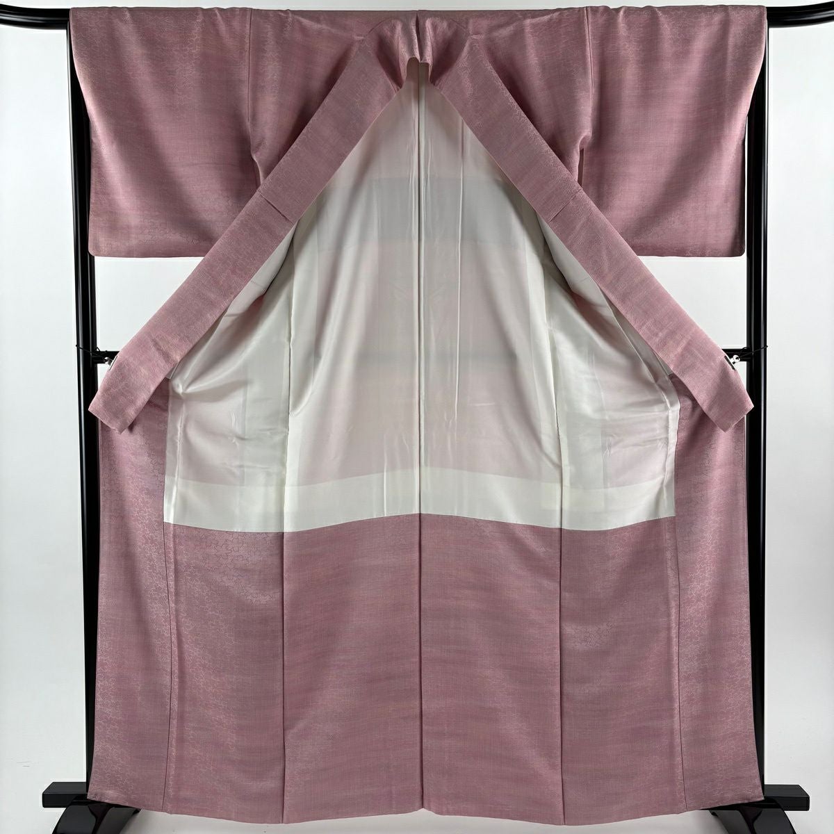 【在庫一掃】 色無地 身丈157.5cm 裄丈61.5cm S 袷 落款あり 地紋 薄小豆 正絹 優品 一つ紋