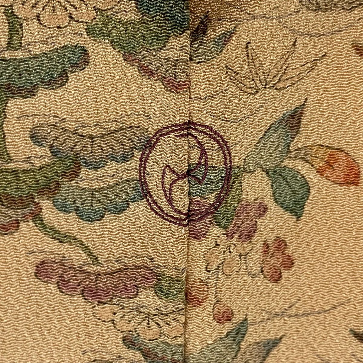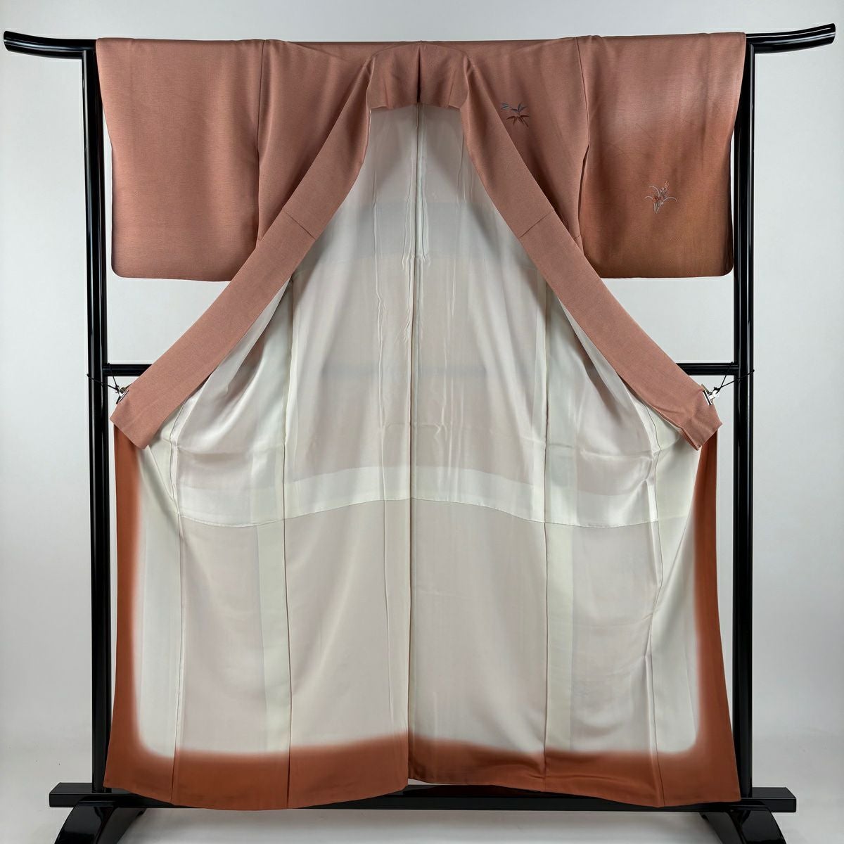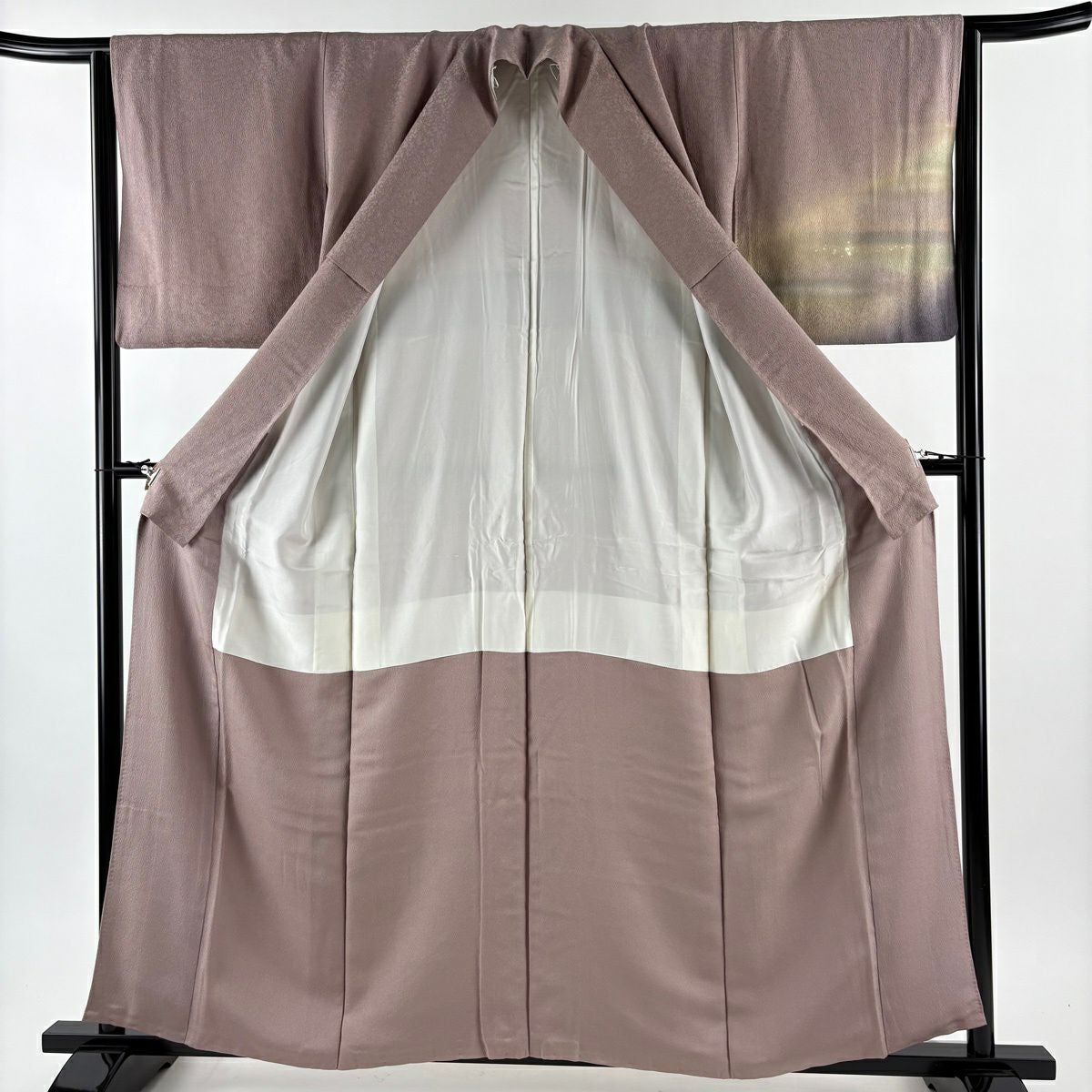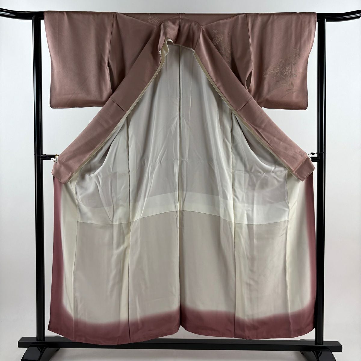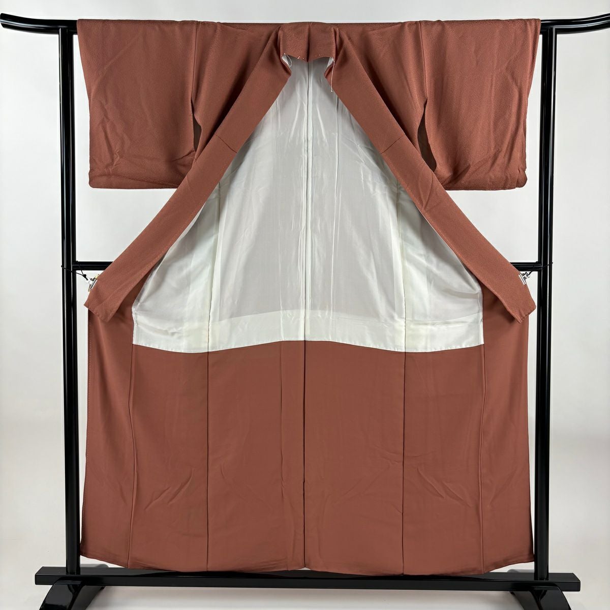 【在庫一掃】 色無地 身丈157.5cm 裄丈61.5cm S 袷 落款あり 地紋 薄小豆 正絹 優品 一つ紋