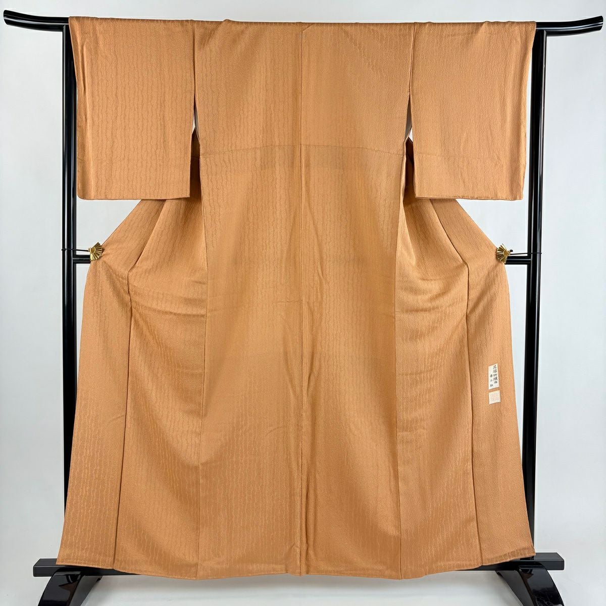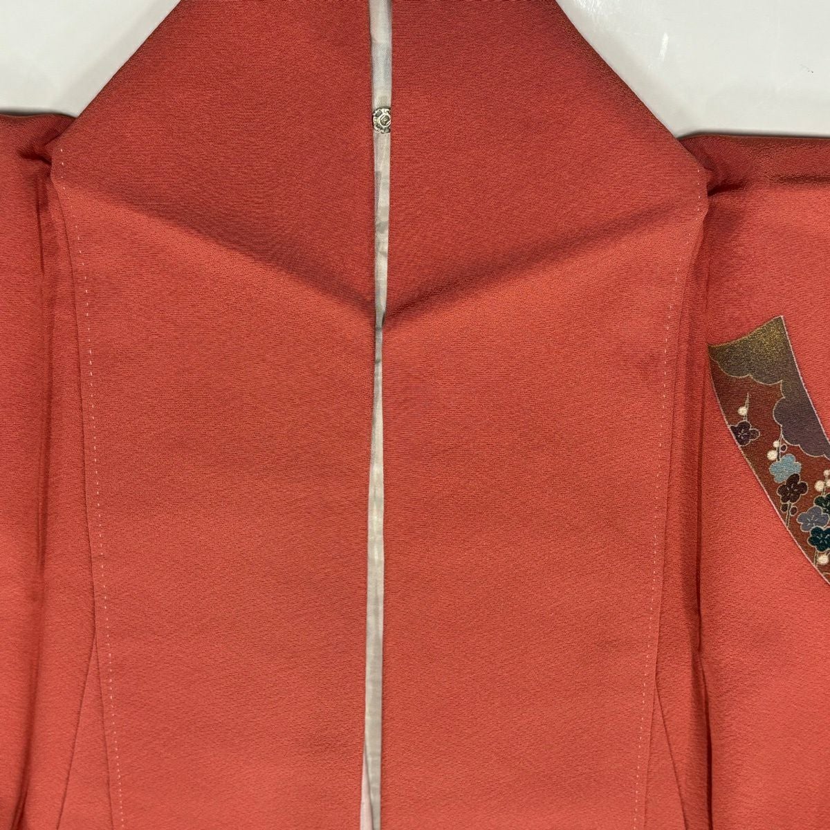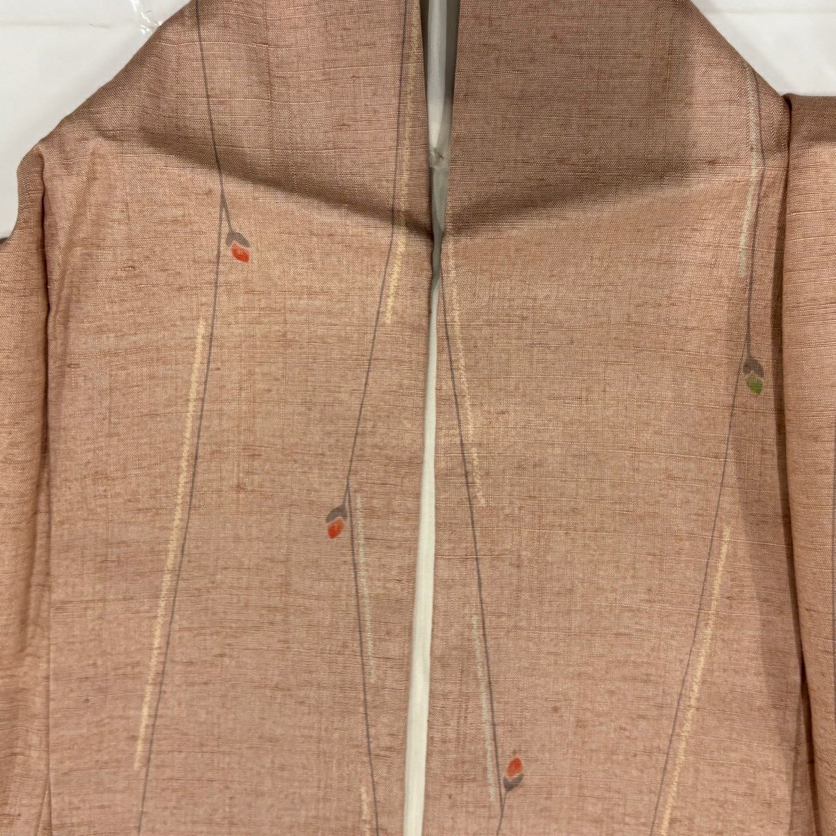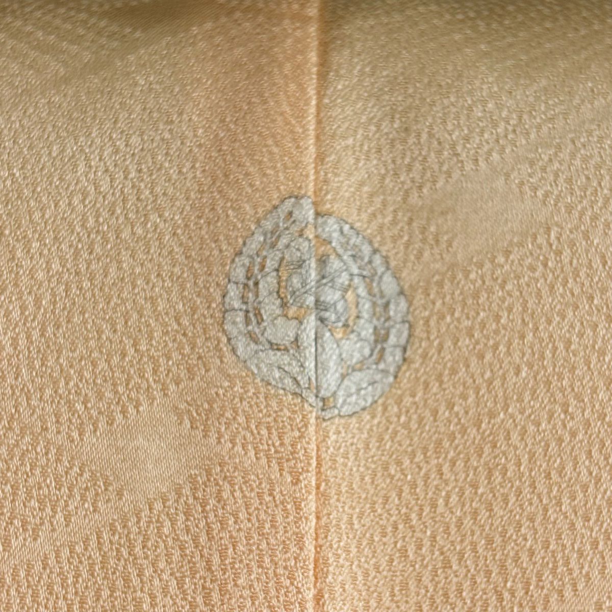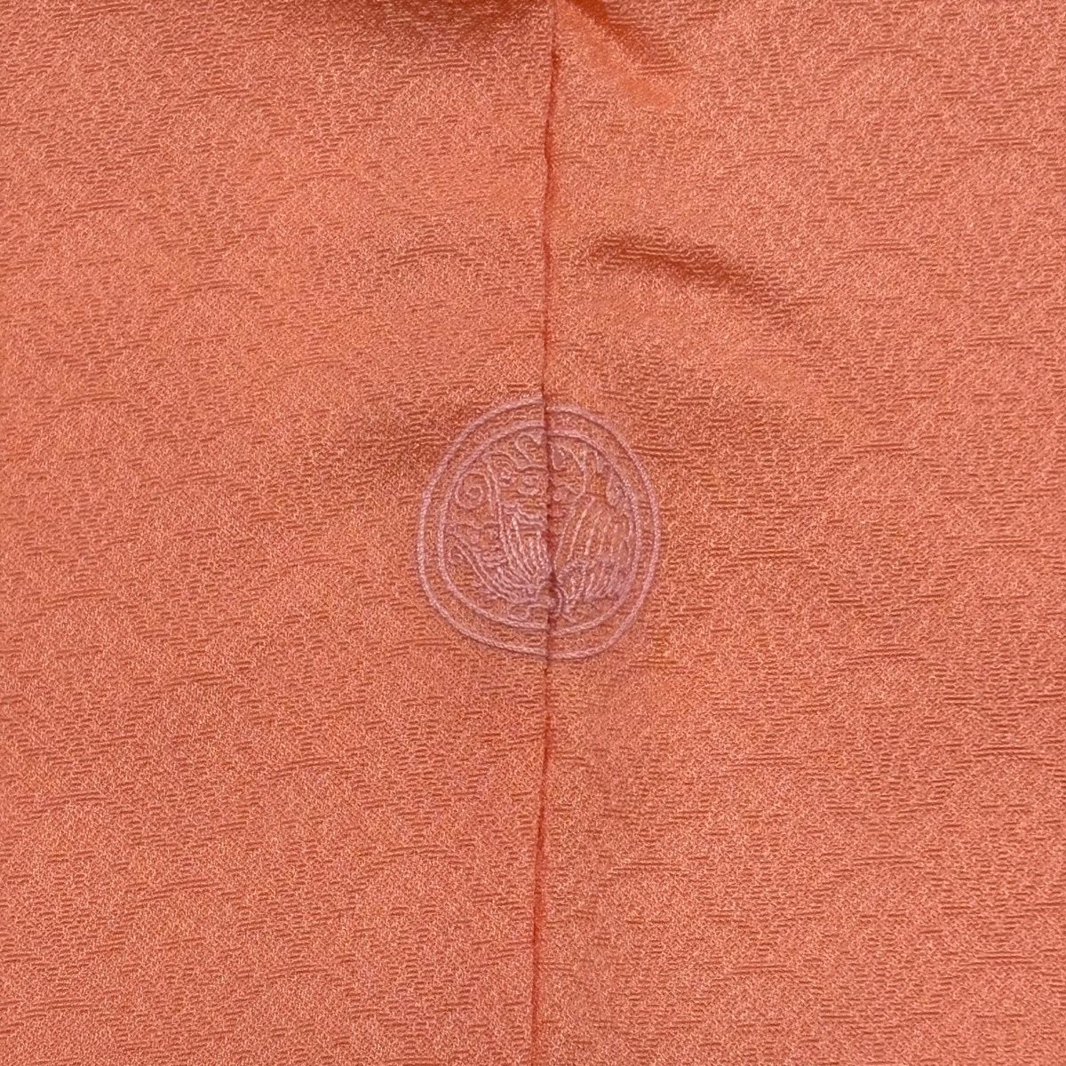 【美品】 色無地 身丈160cm 裄丈64.5cm M 袷 落款あり 地紋 オレンジ 正絹 優品 一つ紋