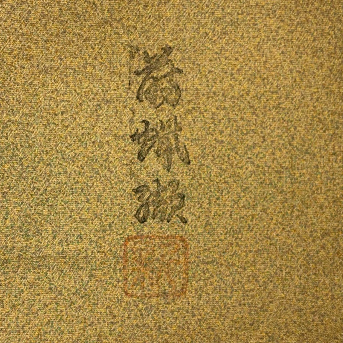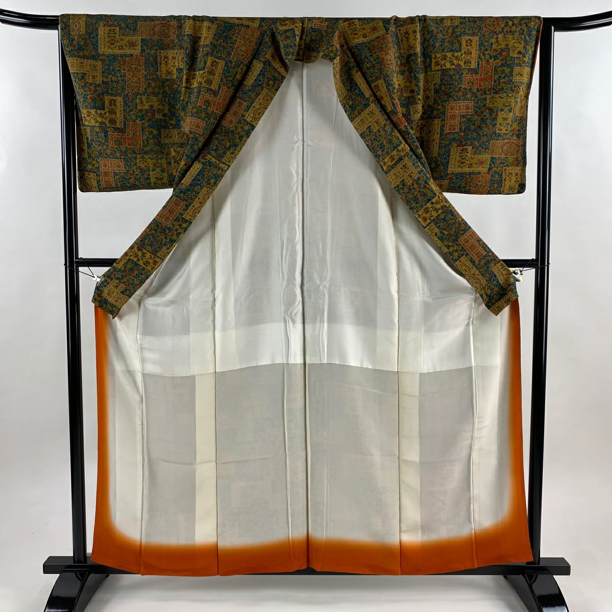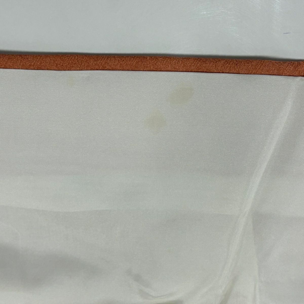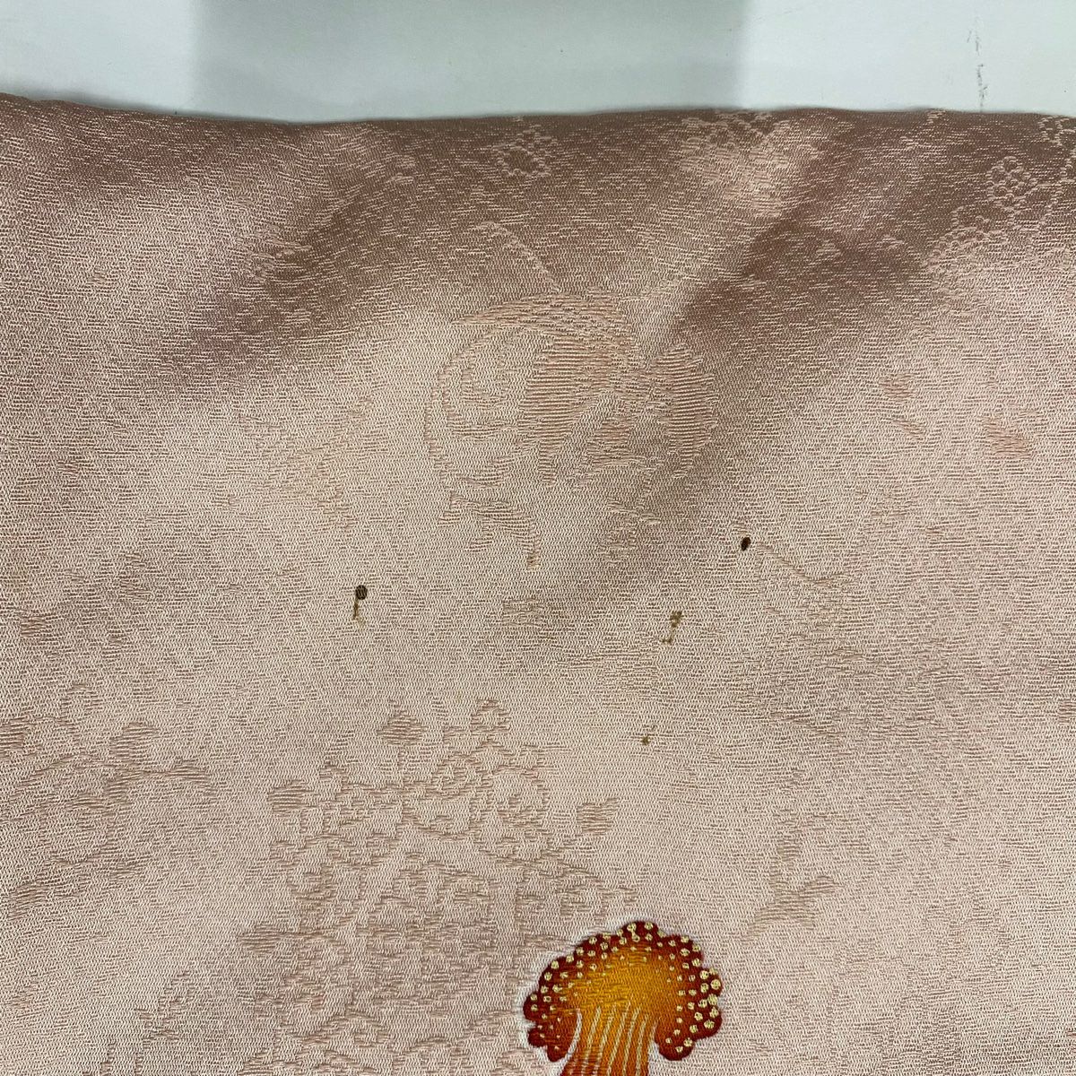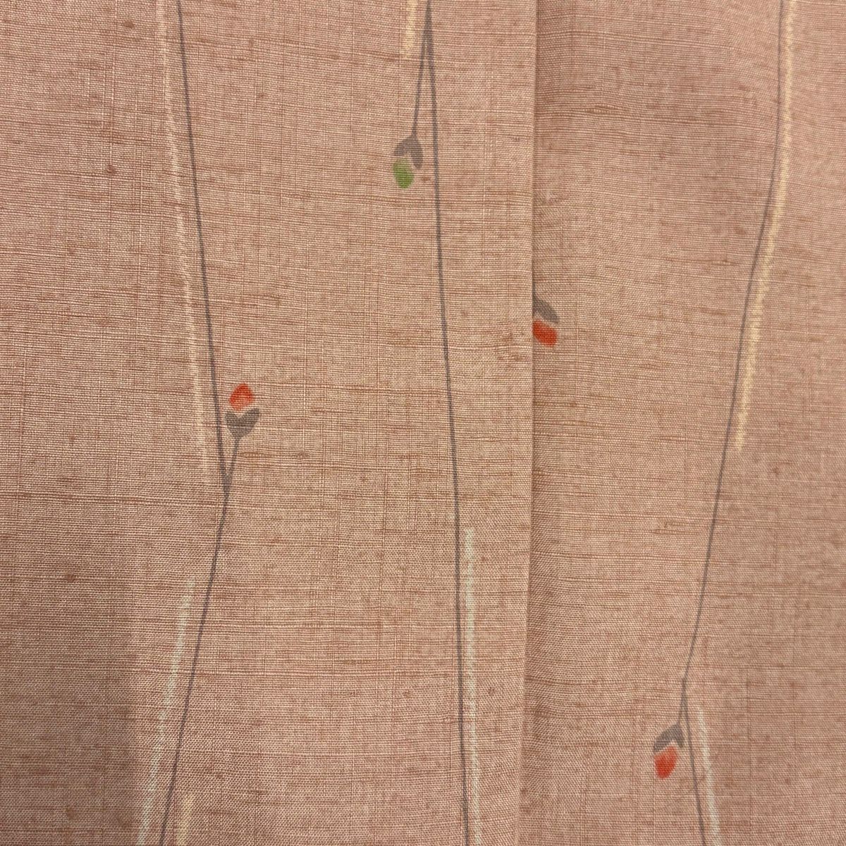 【美品】 色無地 身丈160cm 裄丈64.5cm M 袷 落款あり 地紋 オレンジ 正絹 優品 一つ紋