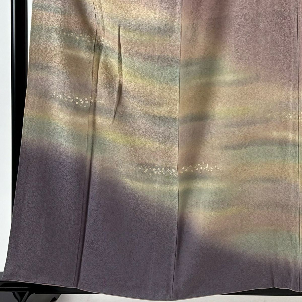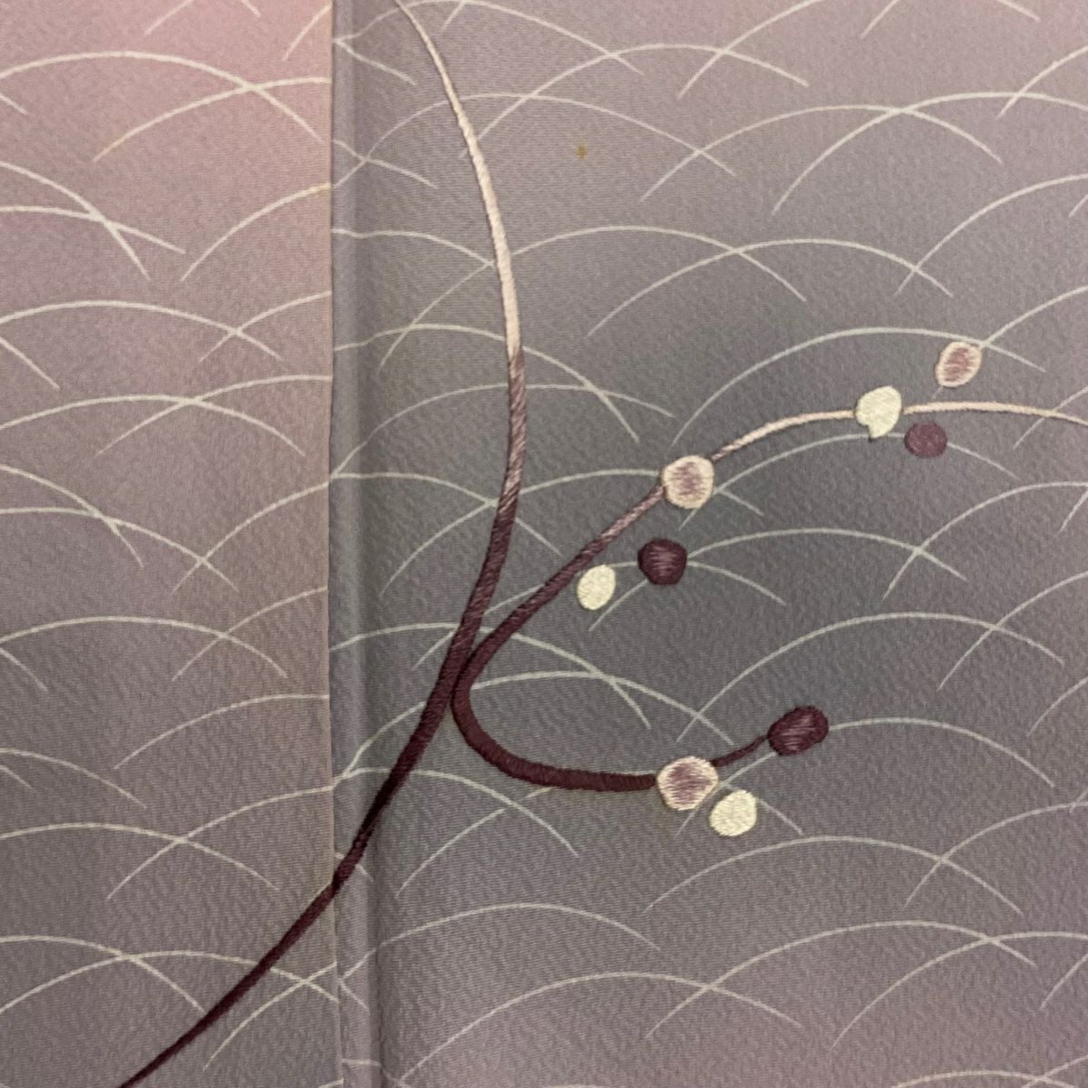 【在庫一掃】 付下げ 身丈156.5cm 裄丈61cm S 袷 枝花 芝 刺繍 ぼかし 灰紫 正絹 優品