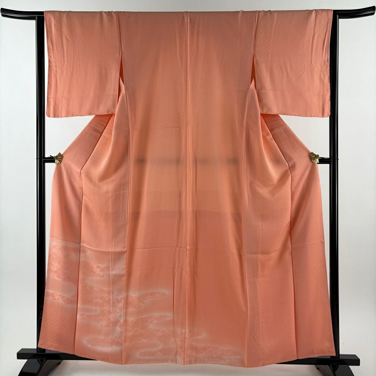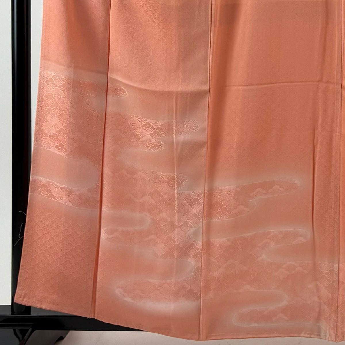 【美品】 付下げ 身丈160.5cm 裄丈65cm M 袷 梅 地紋 ぼかし サーモンピンク 正絹 優品 一つ紋