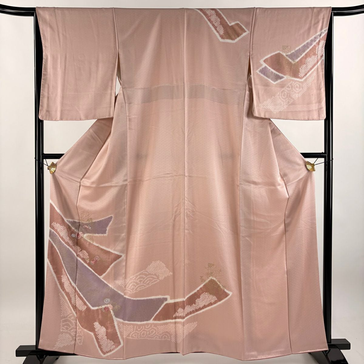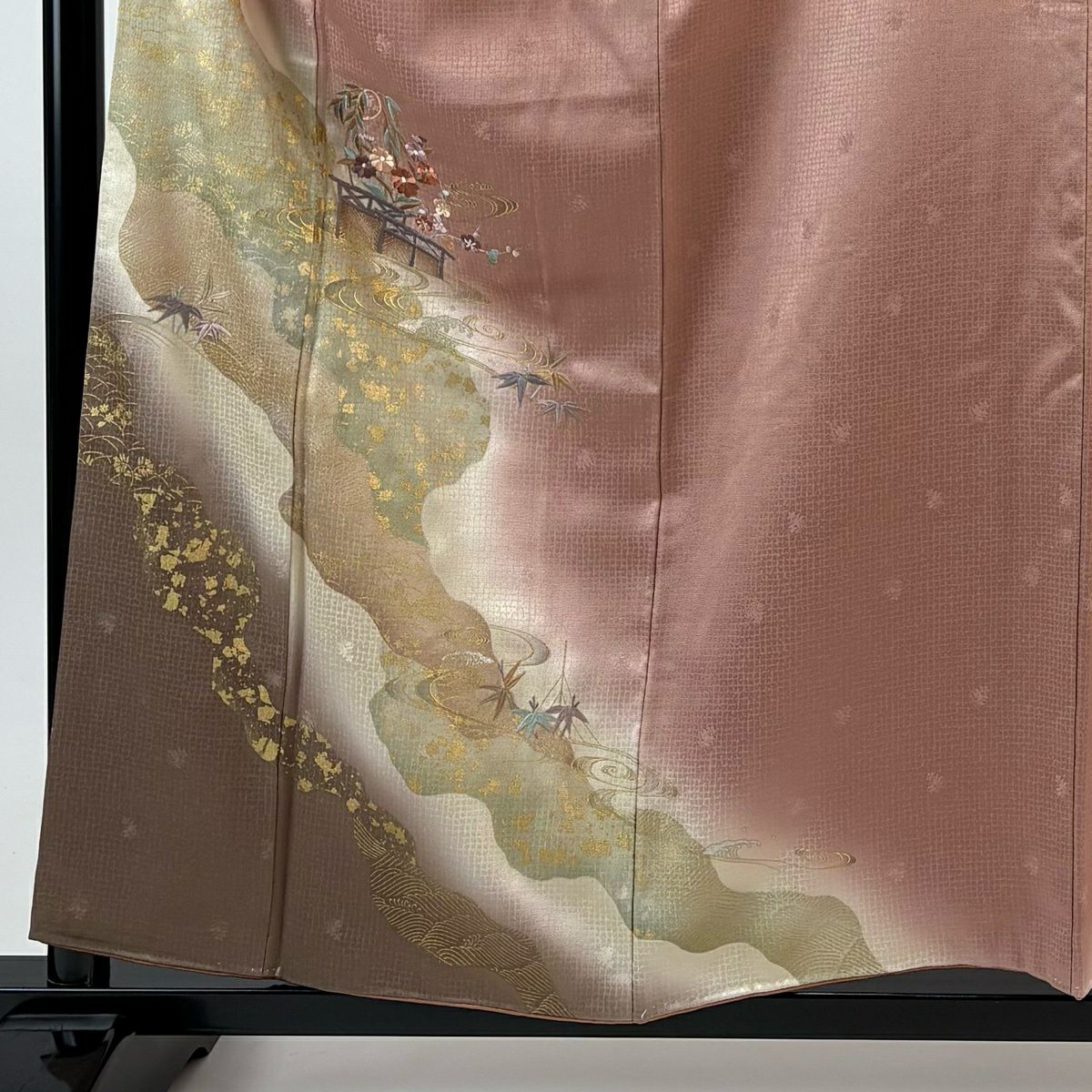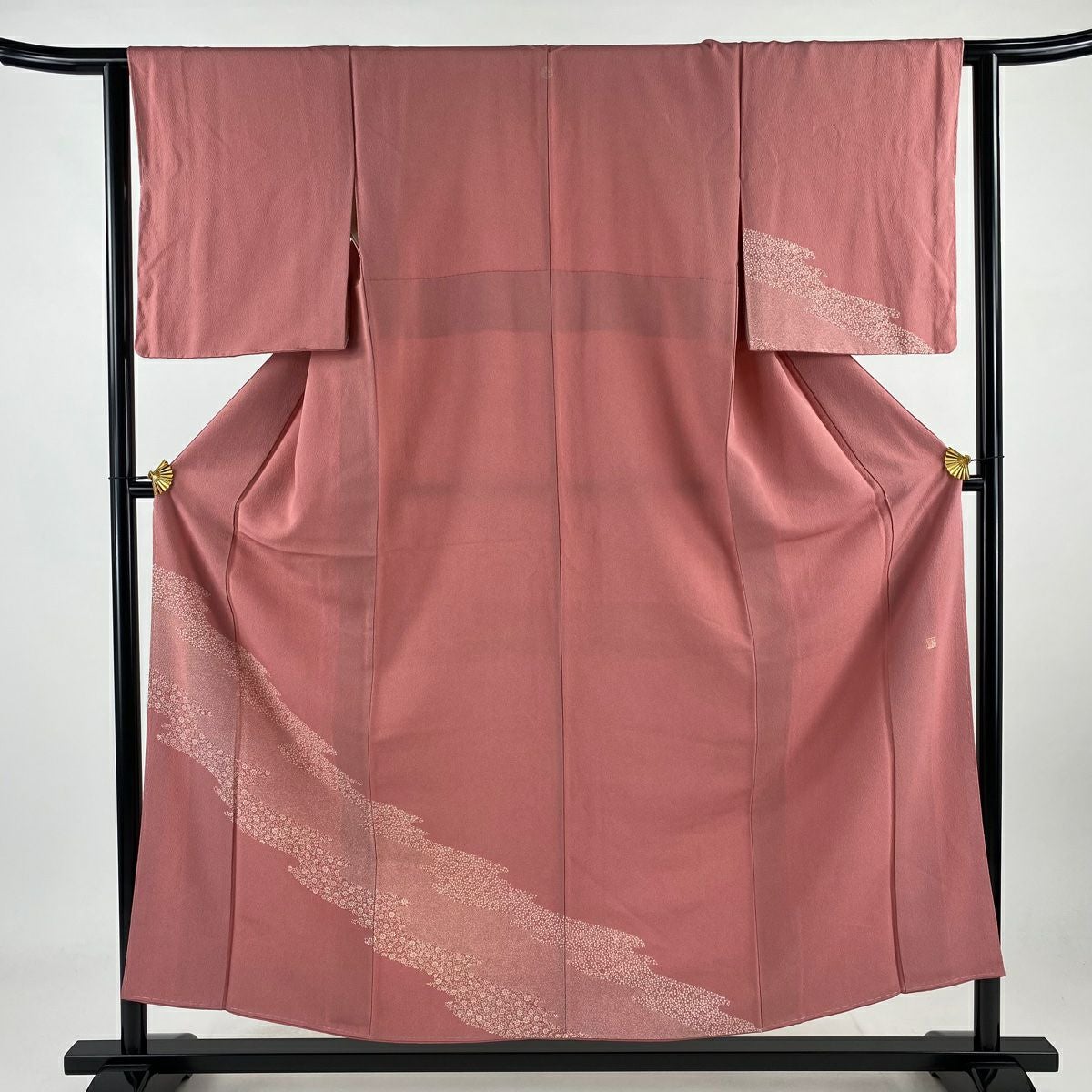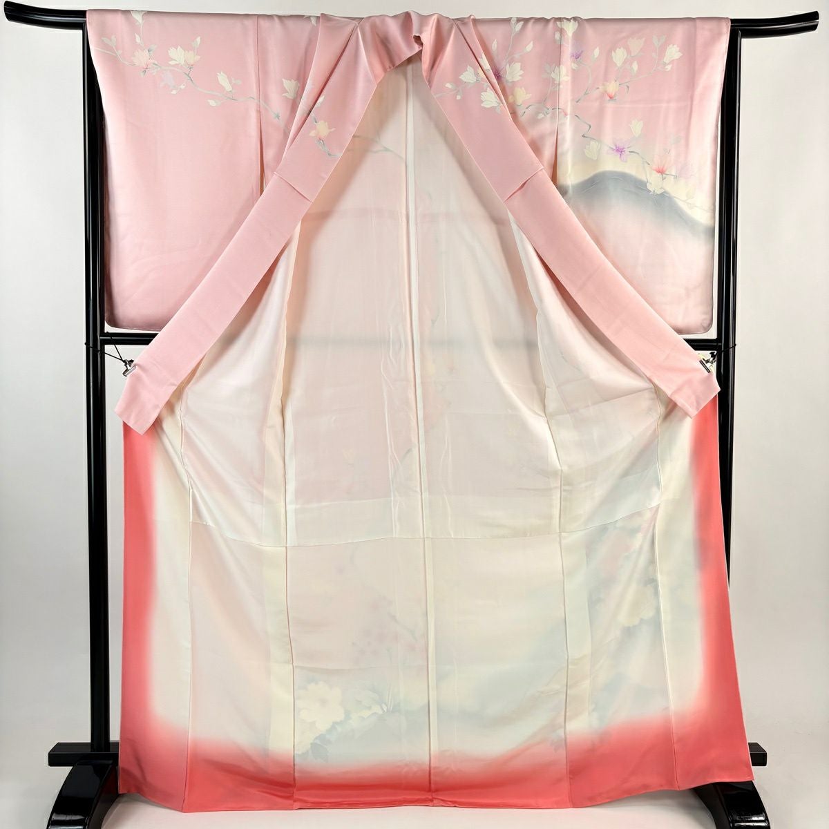 付下げ 身丈157.5cm 裄丈61cm S 袷 やまと 御所車 草花 金銀彩 ぼかし ピンク 正絹 優品