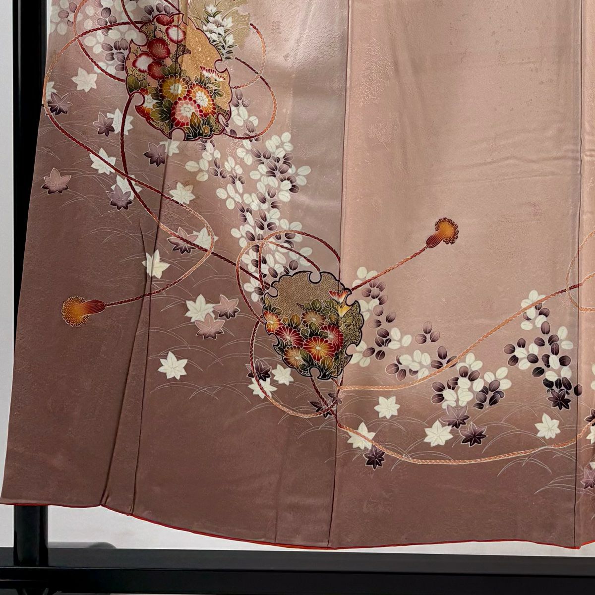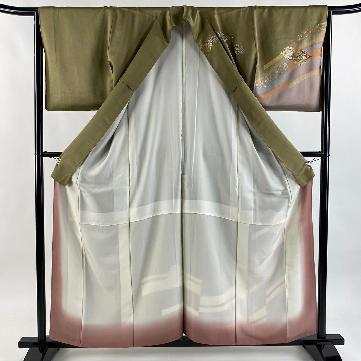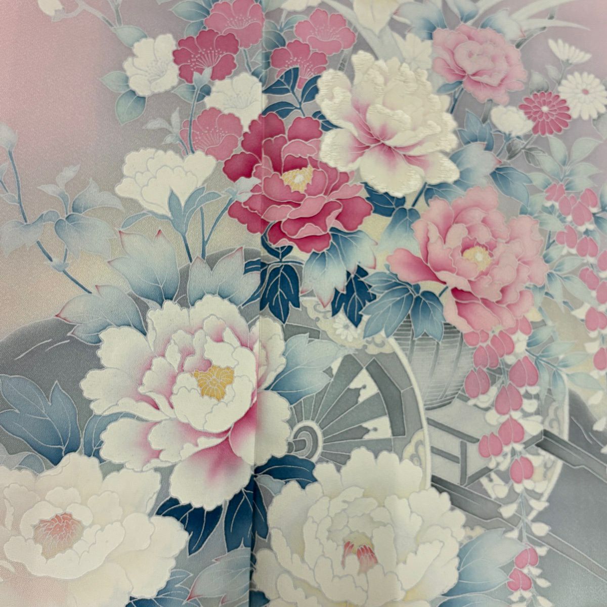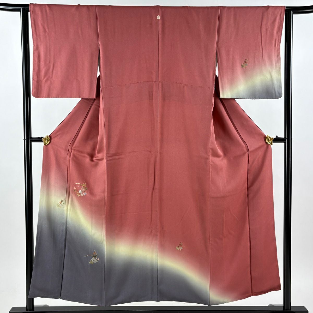 付下げ 身丈157.5cm 裄丈61cm S 袷 やまと 御所車 草花 金銀彩 ぼかし ピンク 正絹 優品