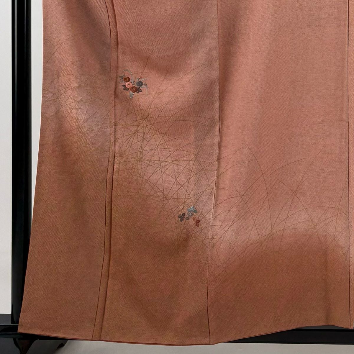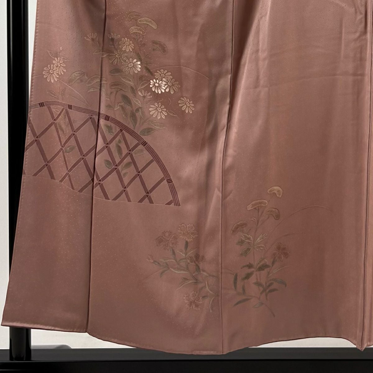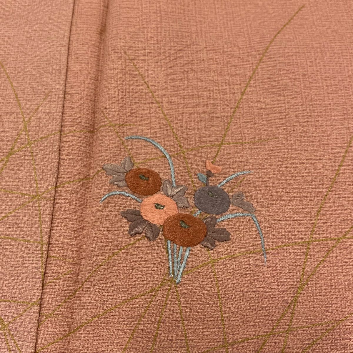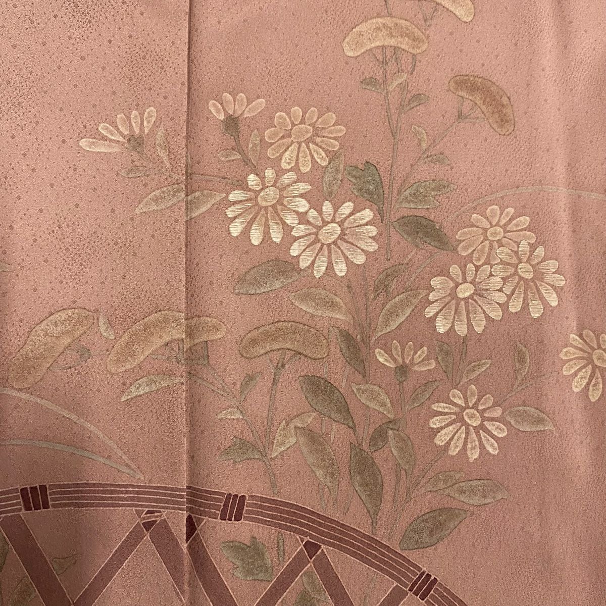 【在庫一掃】 付下げ 身丈155cm 裄丈62.5cm S 袷 秋草 間垣 刺繍 薄小豆 正絹 優品 一つ紋