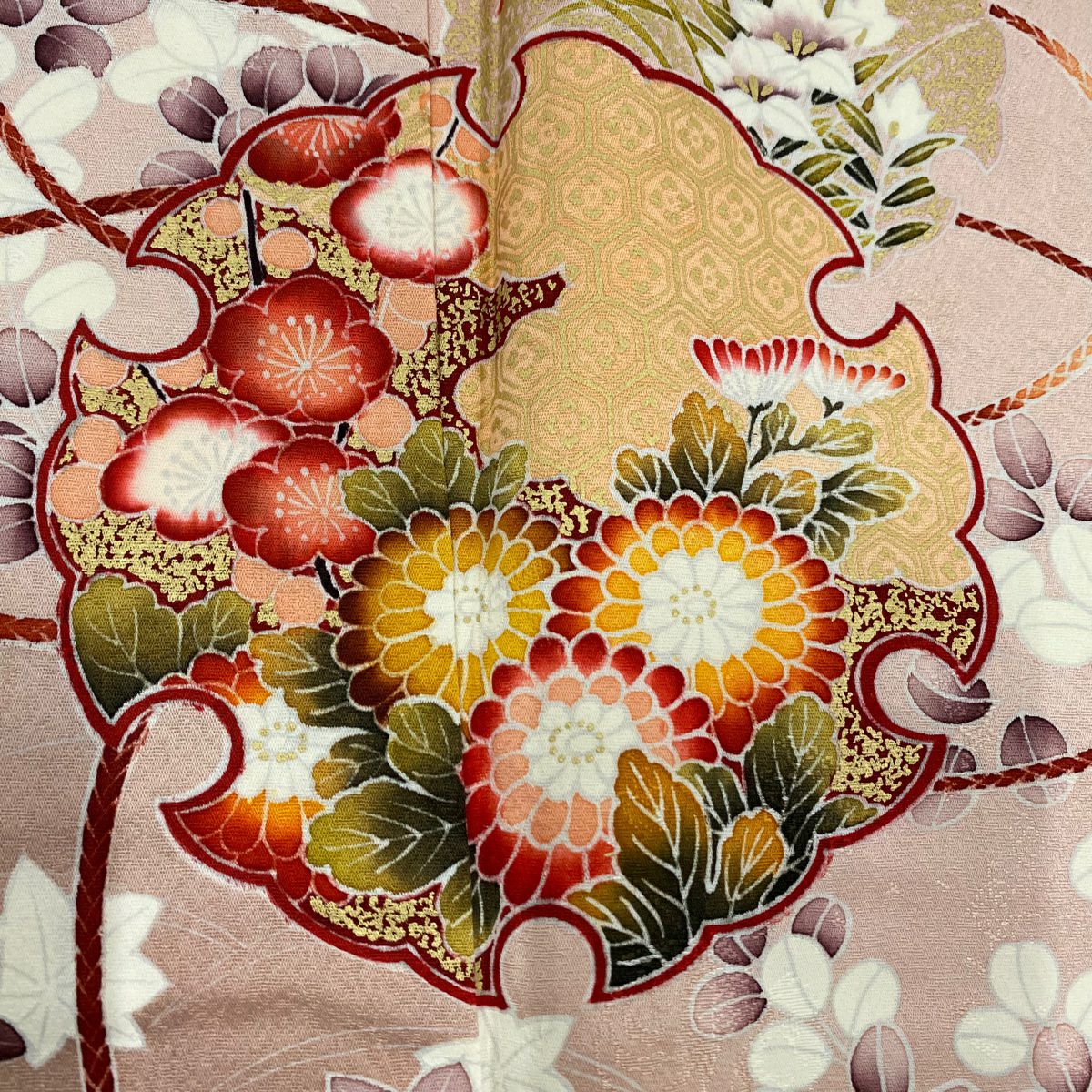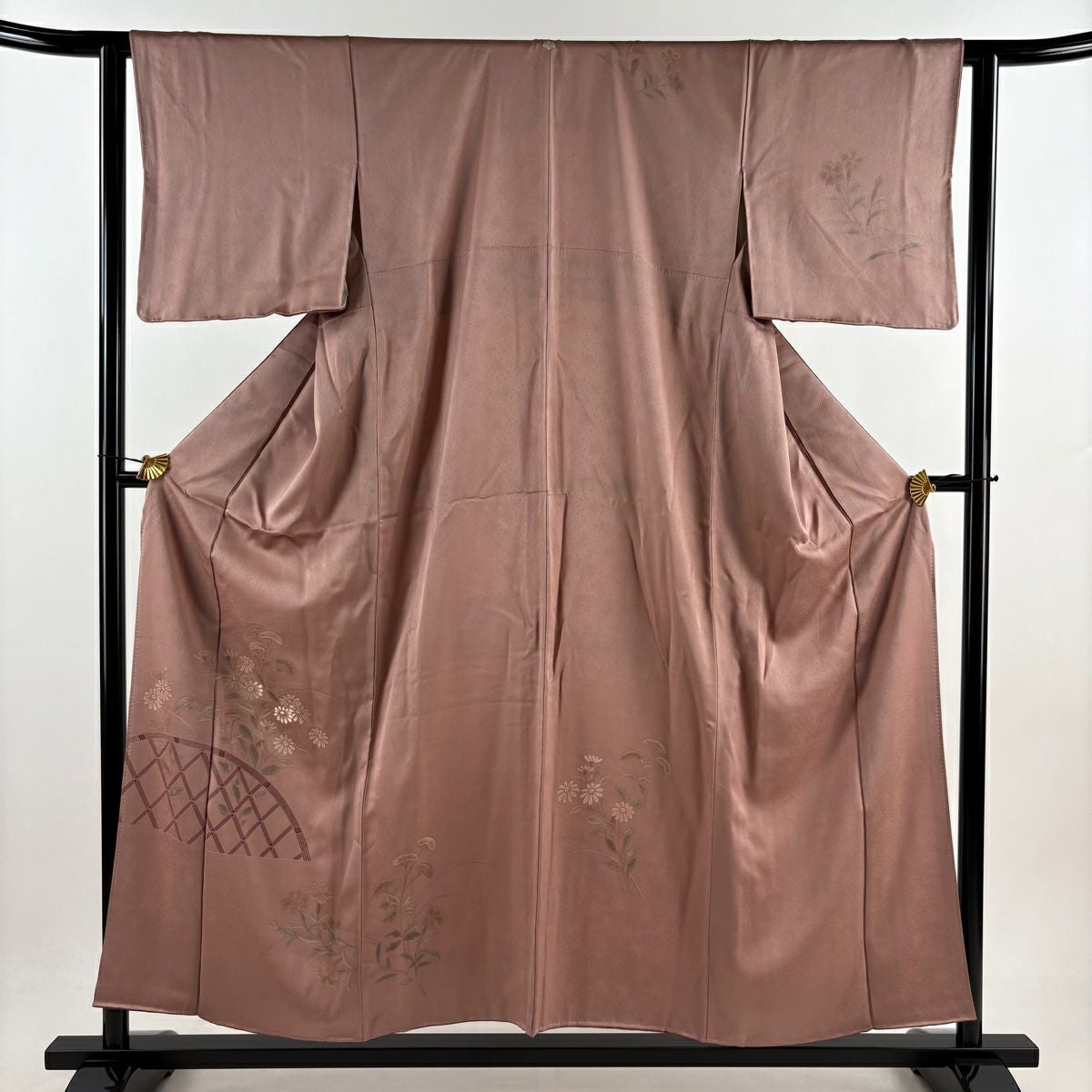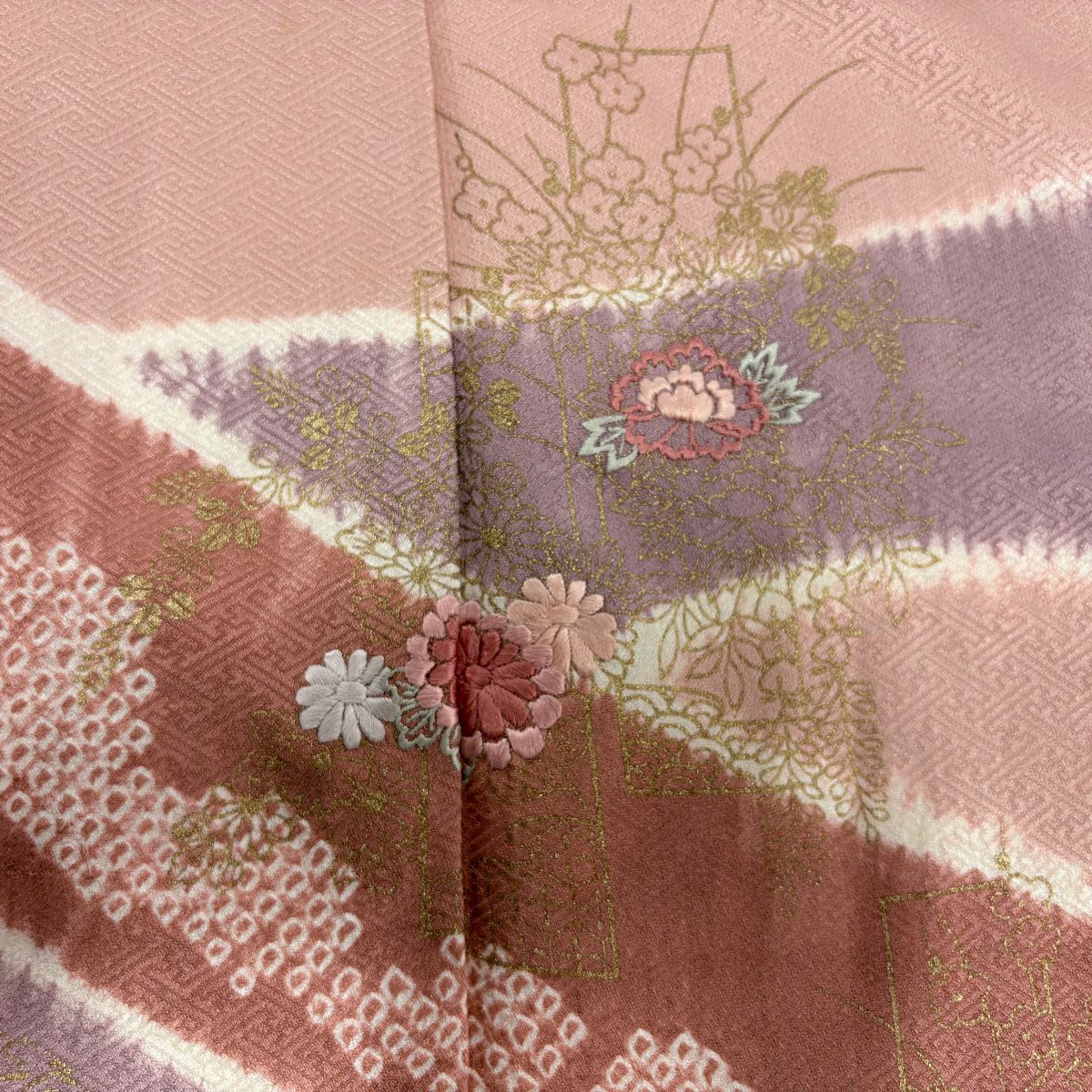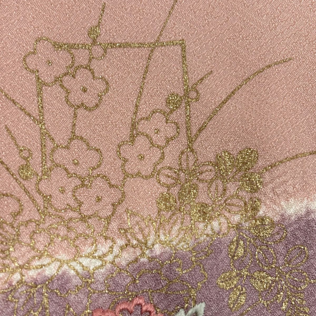 【在庫一掃】 訪問着 身丈160cm 裄丈65cm M 袷 熨斗 草花 刺繍 金彩 ピンク 正絹 優品