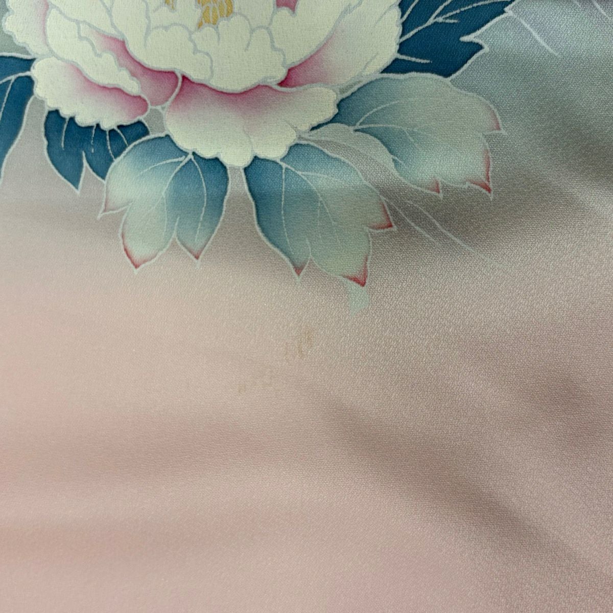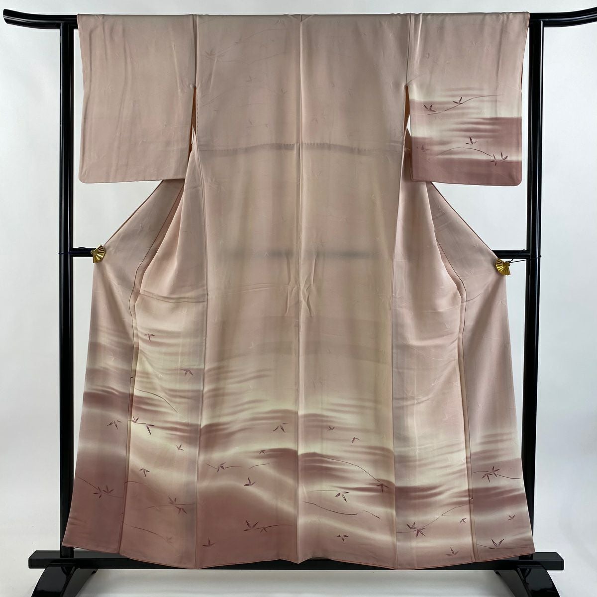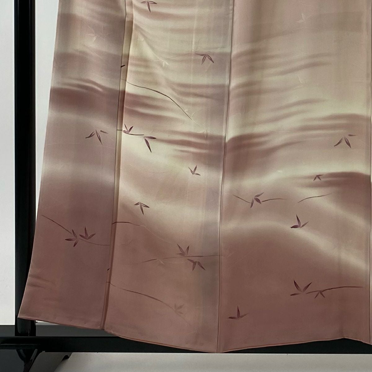 【在庫一掃】 付下げ 身丈156.5cm 裄丈62.5cm S 袷 葉柄 霞 ぼかし 薄ピンク 正絹 優品