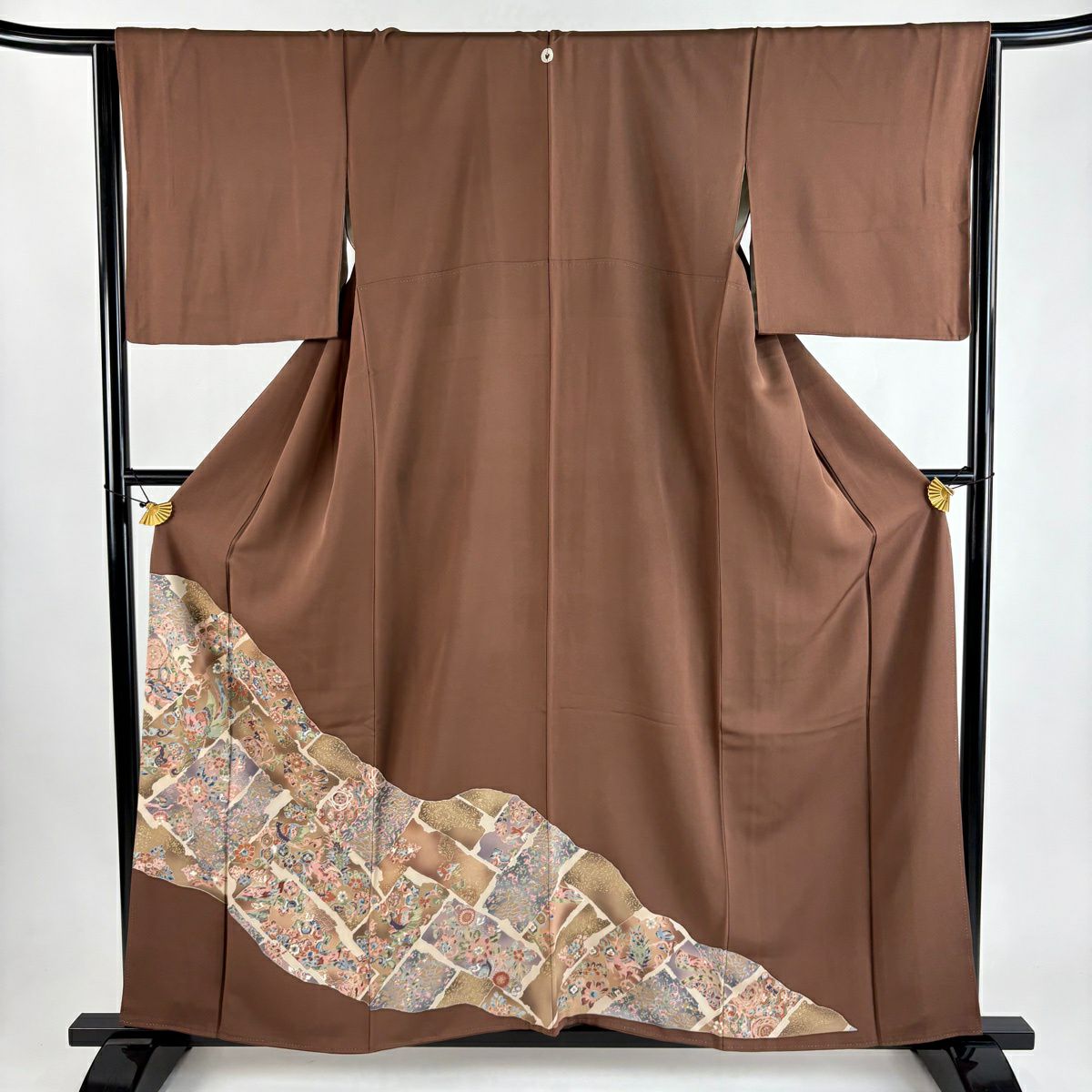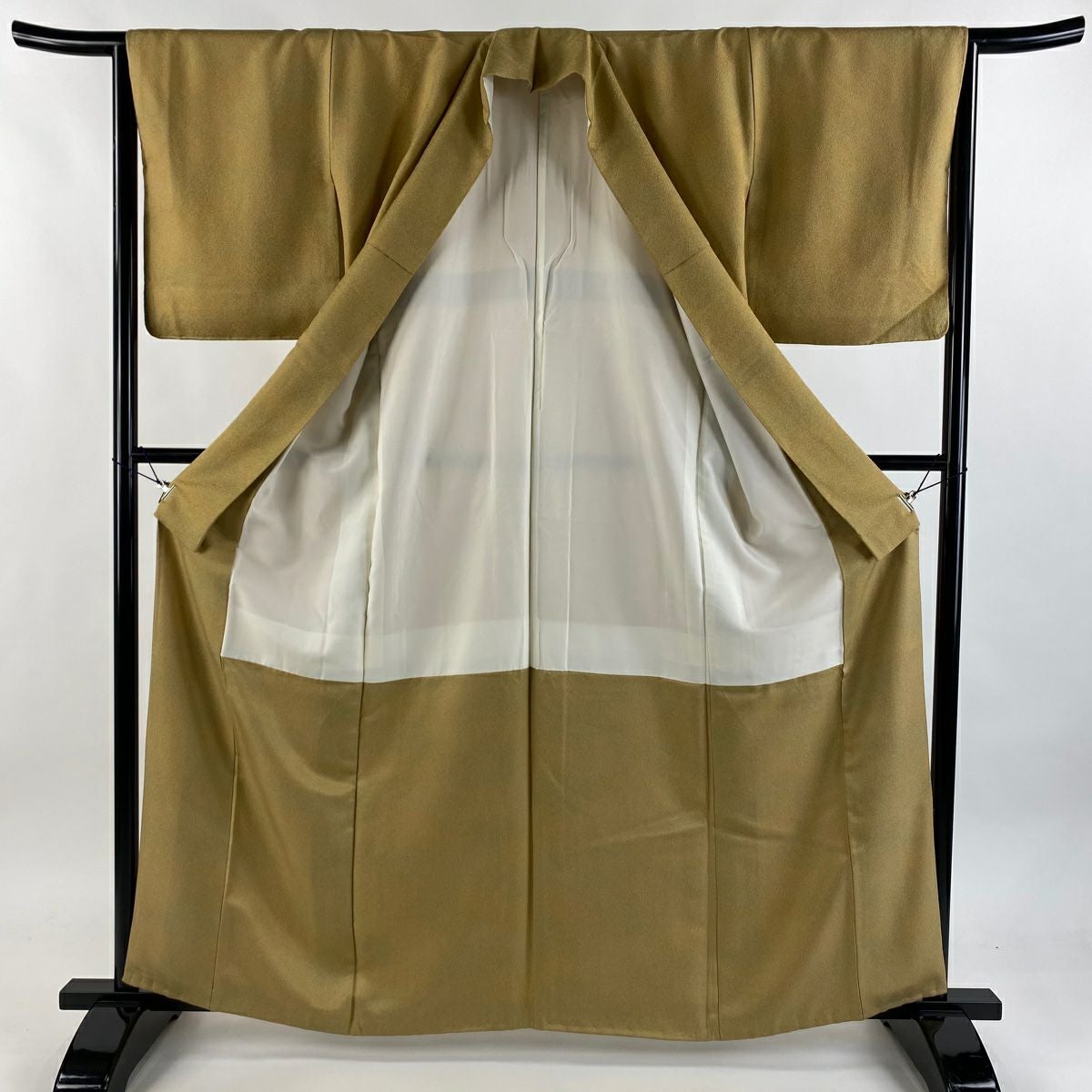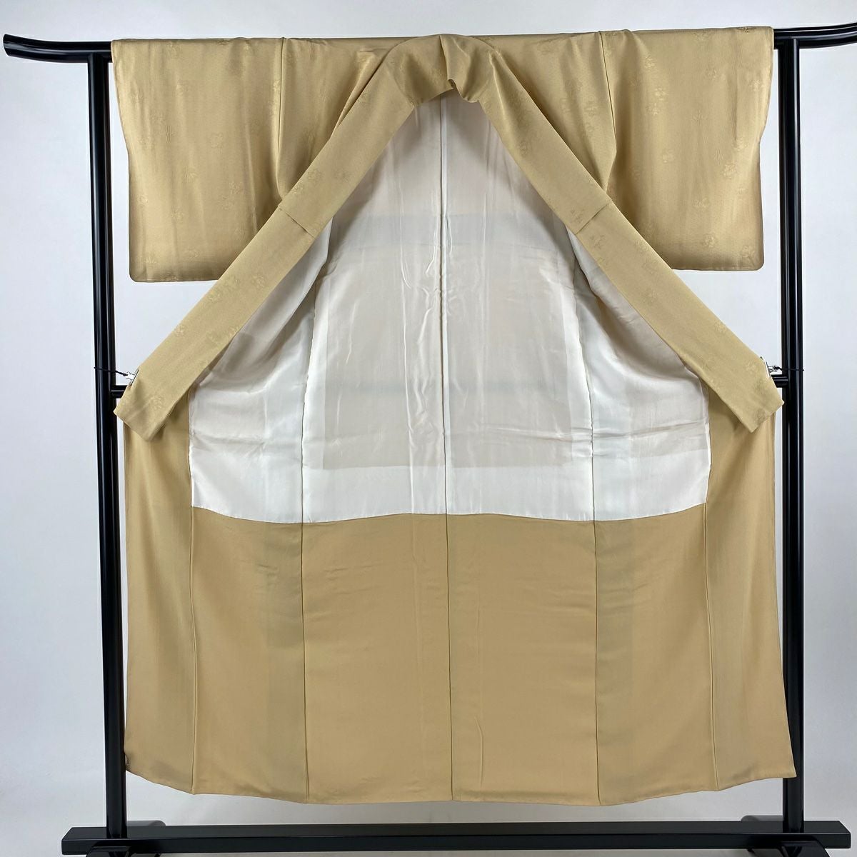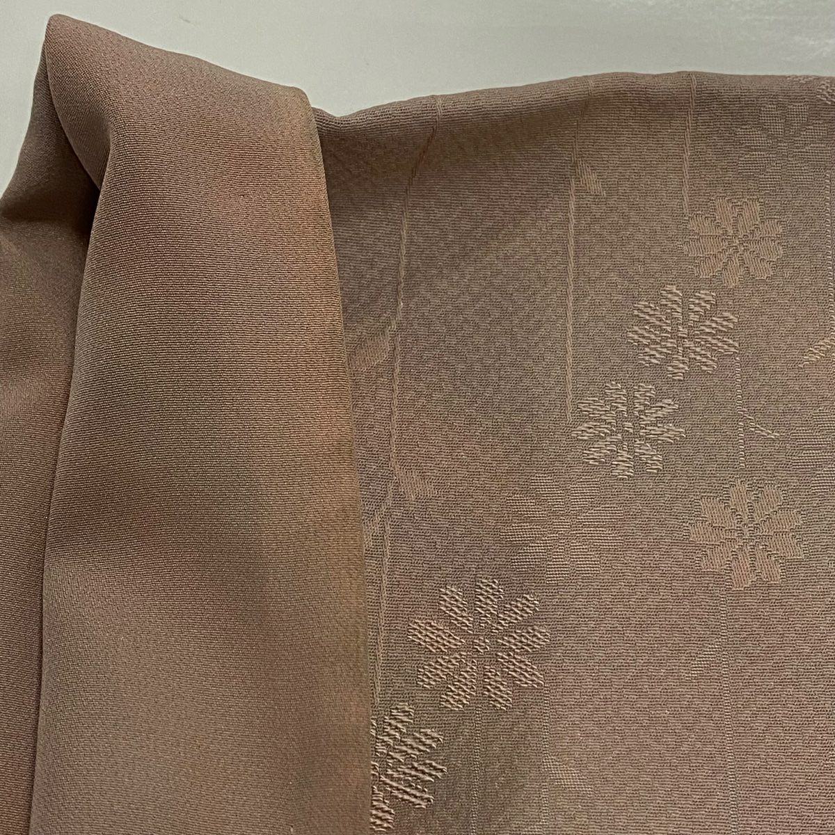 【在庫一掃】 【美品】 色無地 身丈151.5cm 裄丈62cm S 袷 地紋 薄茶色 正絹 優品 一つ紋