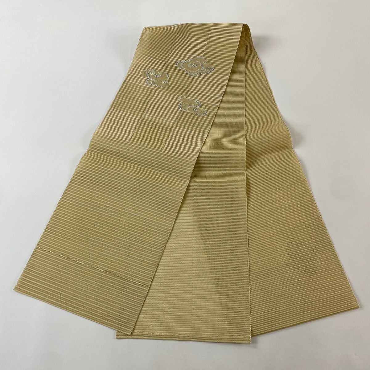 【在庫一掃】 開き名古屋帯 優品 夏帯 絽 八寸名古屋帯 トンネル仕立て 波頭 金糸 銀糸 ベージュ 正絹