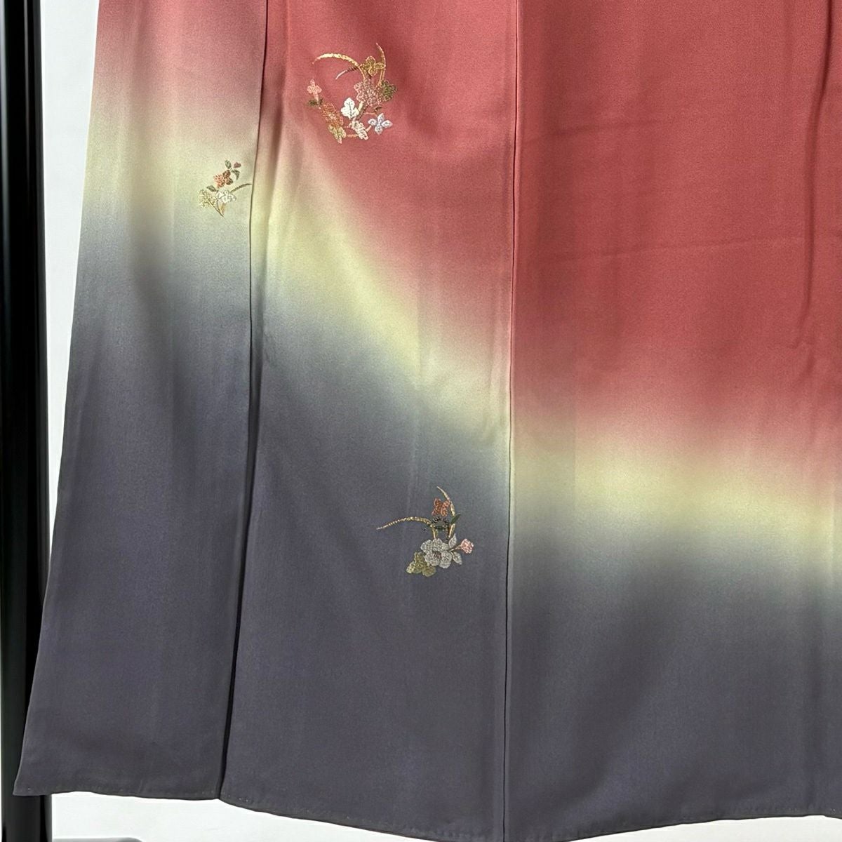 【美品】 付下げ 身丈153cm 裄丈63cm S 袷 草花 裾ぼかし 箔 刺繍 ピンク 正絹 優品 一つ紋