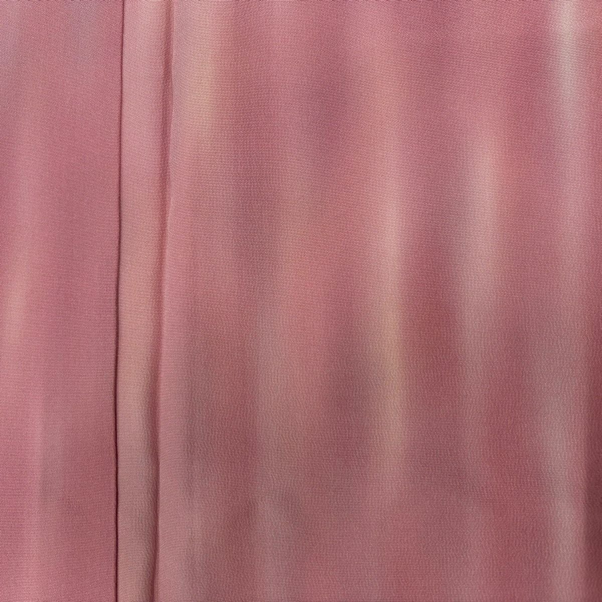 【美品】 小紋 身丈162.5cm 裄丈66.5cm M 袷 やまと 堅牢染 地紋 霞 ぼかし ピンク 正絹 優品