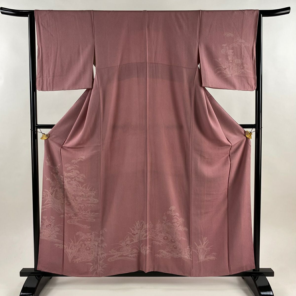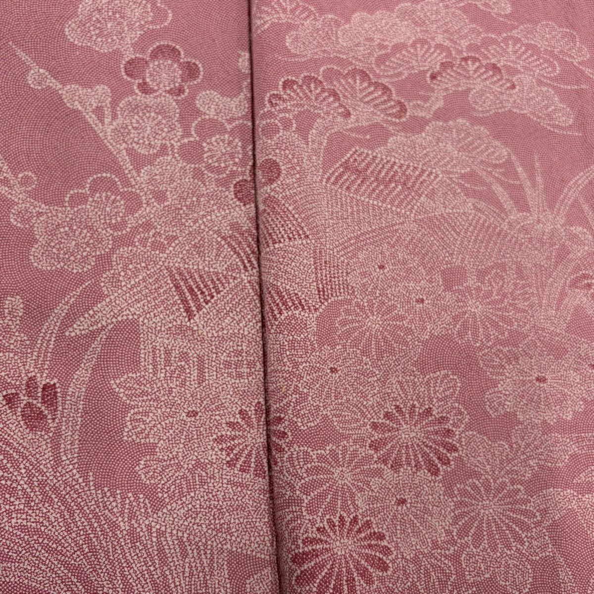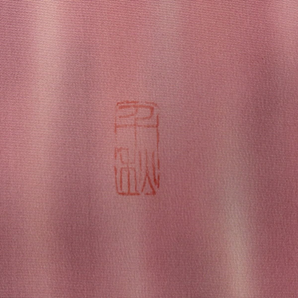 【在庫一掃】 付下げ 身丈159.5cm 裄丈64cm M 袷 落款あり 松竹梅 家屋 ピンク 正絹 優品