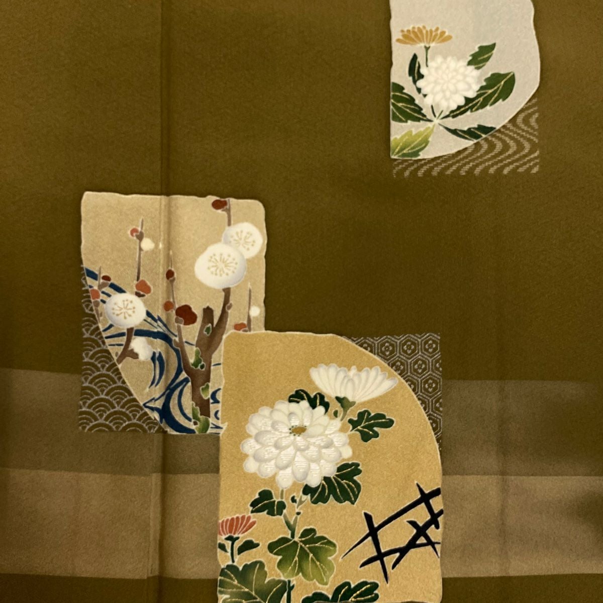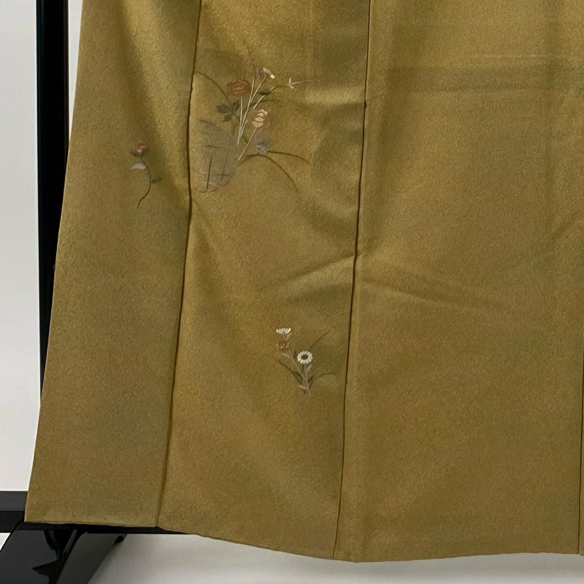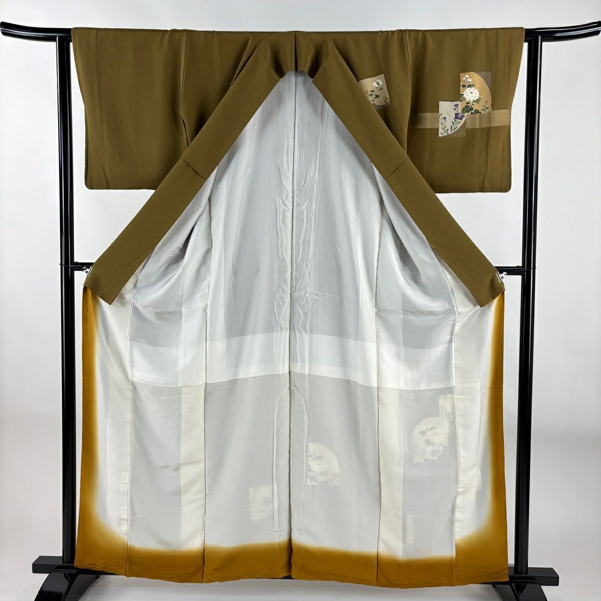 【在庫一掃】 【美品】 付下げ 身丈159cm 裄丈62cm S 袷 菊 枝梅 刺繍 金銀彩 山吹茶色 正絹 優品
