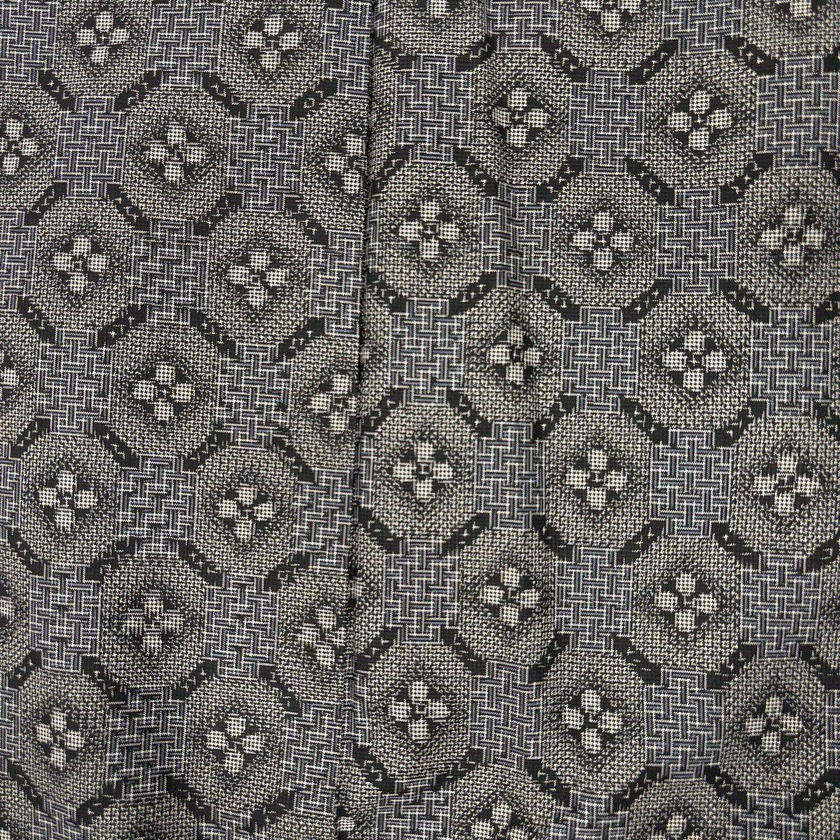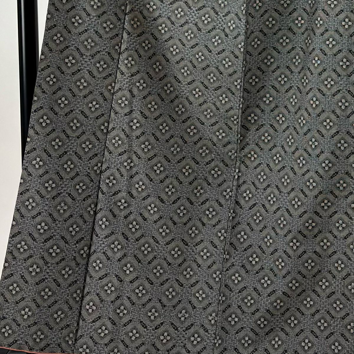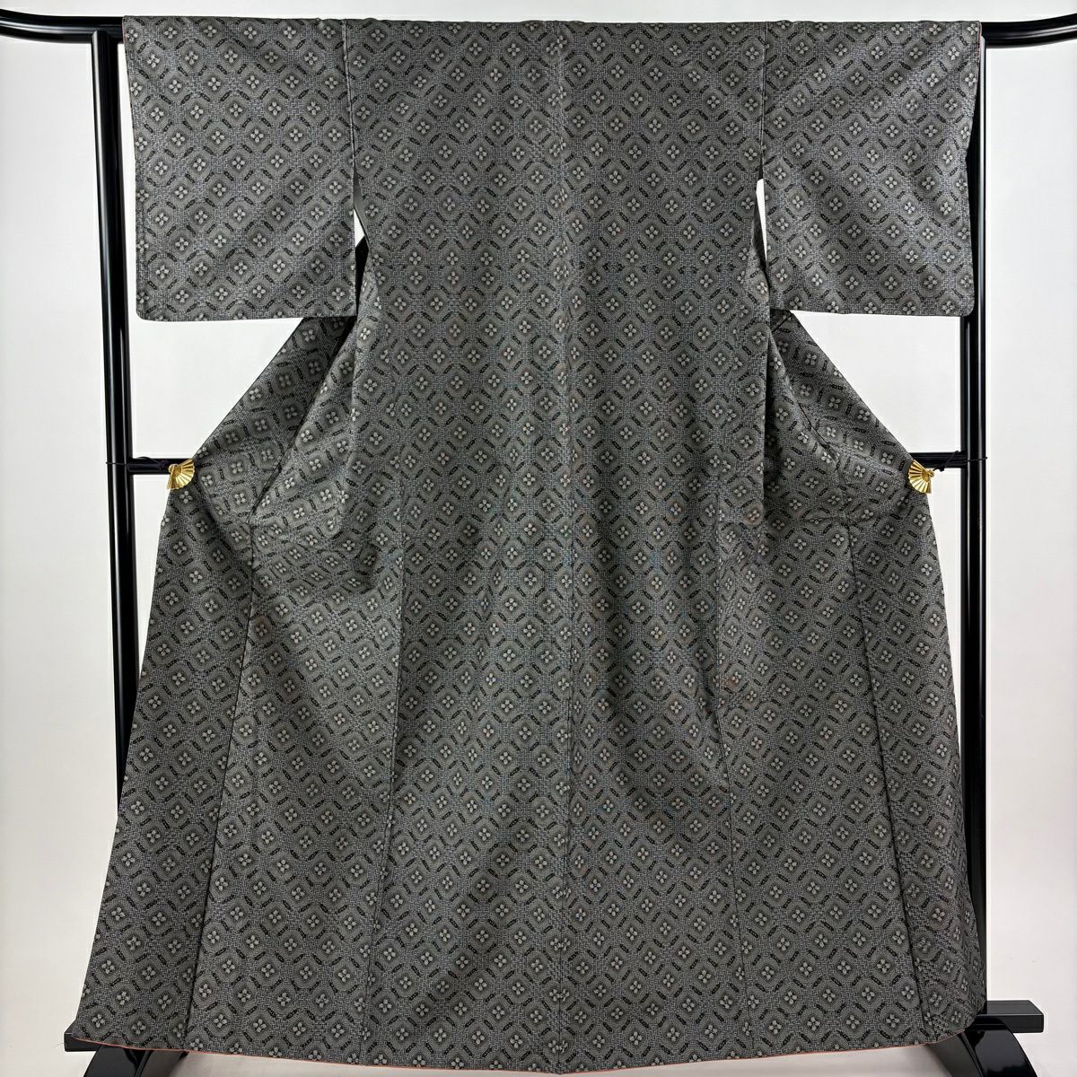 【美品】 紬 身丈161.5cm 裄丈64cm M 袷 アンサンブル 紬地 花 幾何学模様 灰色 正絹 優品