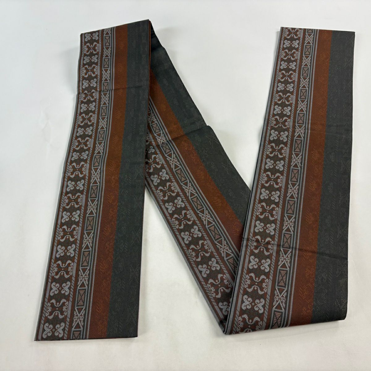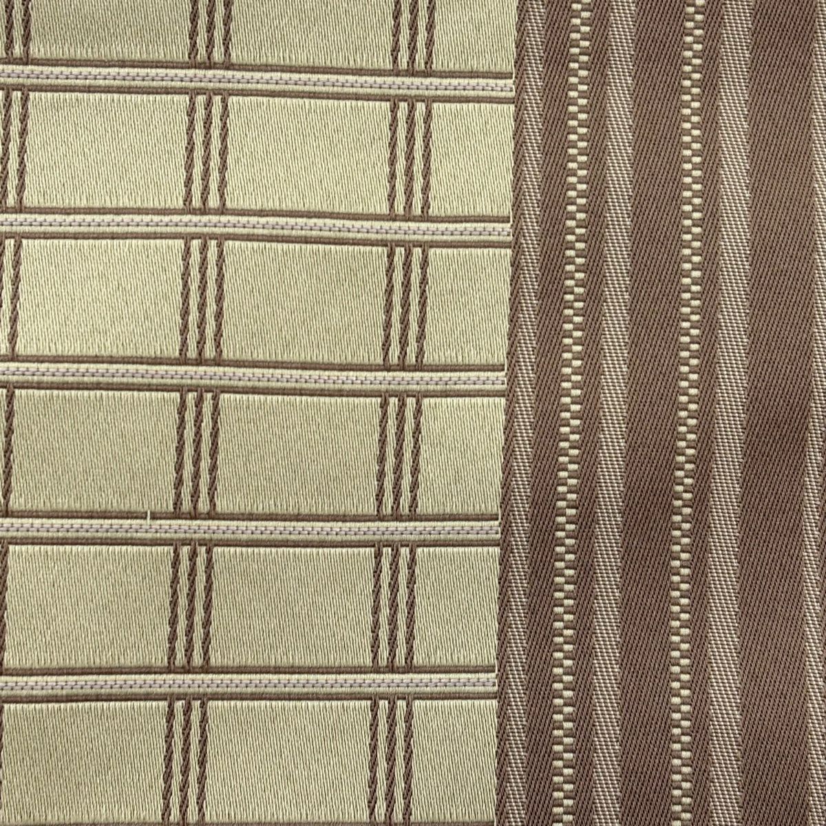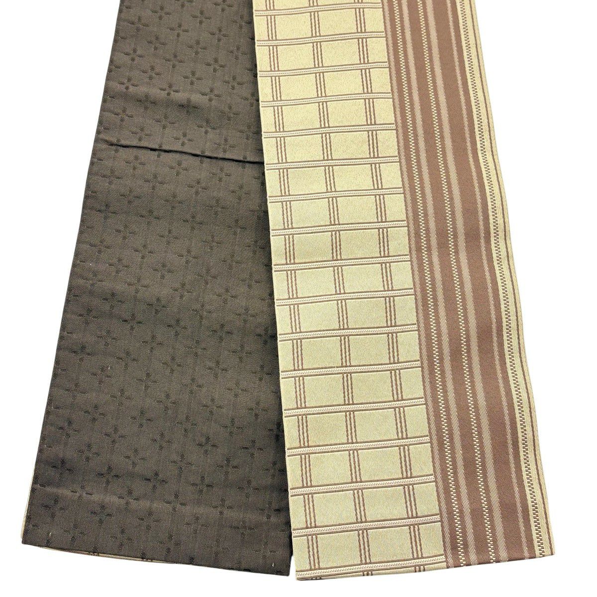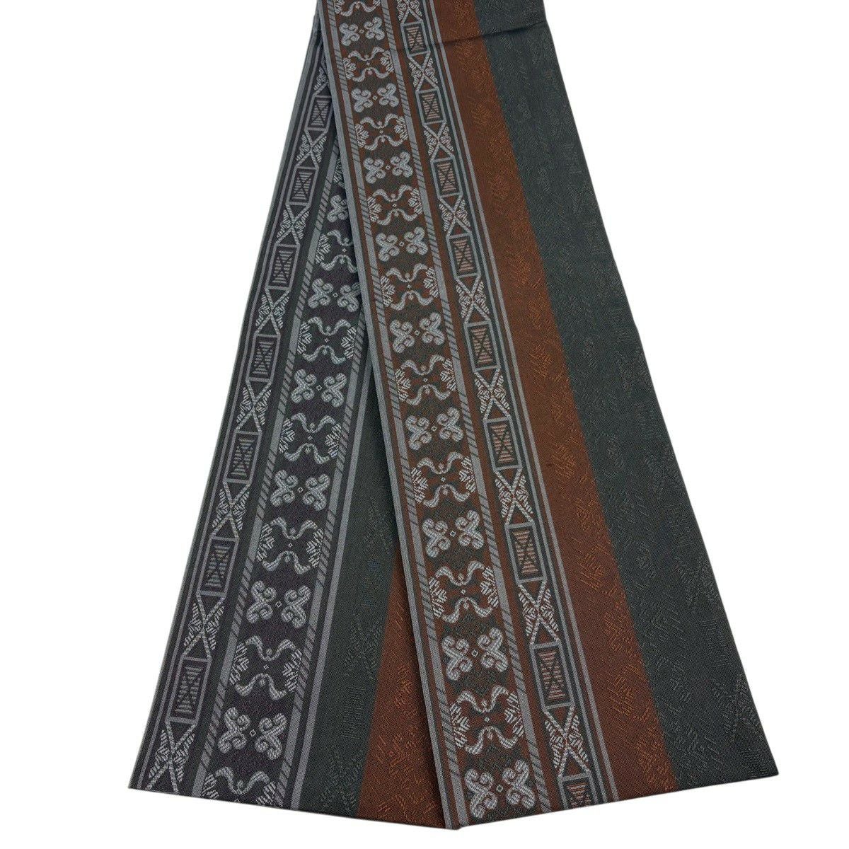 【美品】半幅帯 優品 幾何学 縞 茶色 正絹