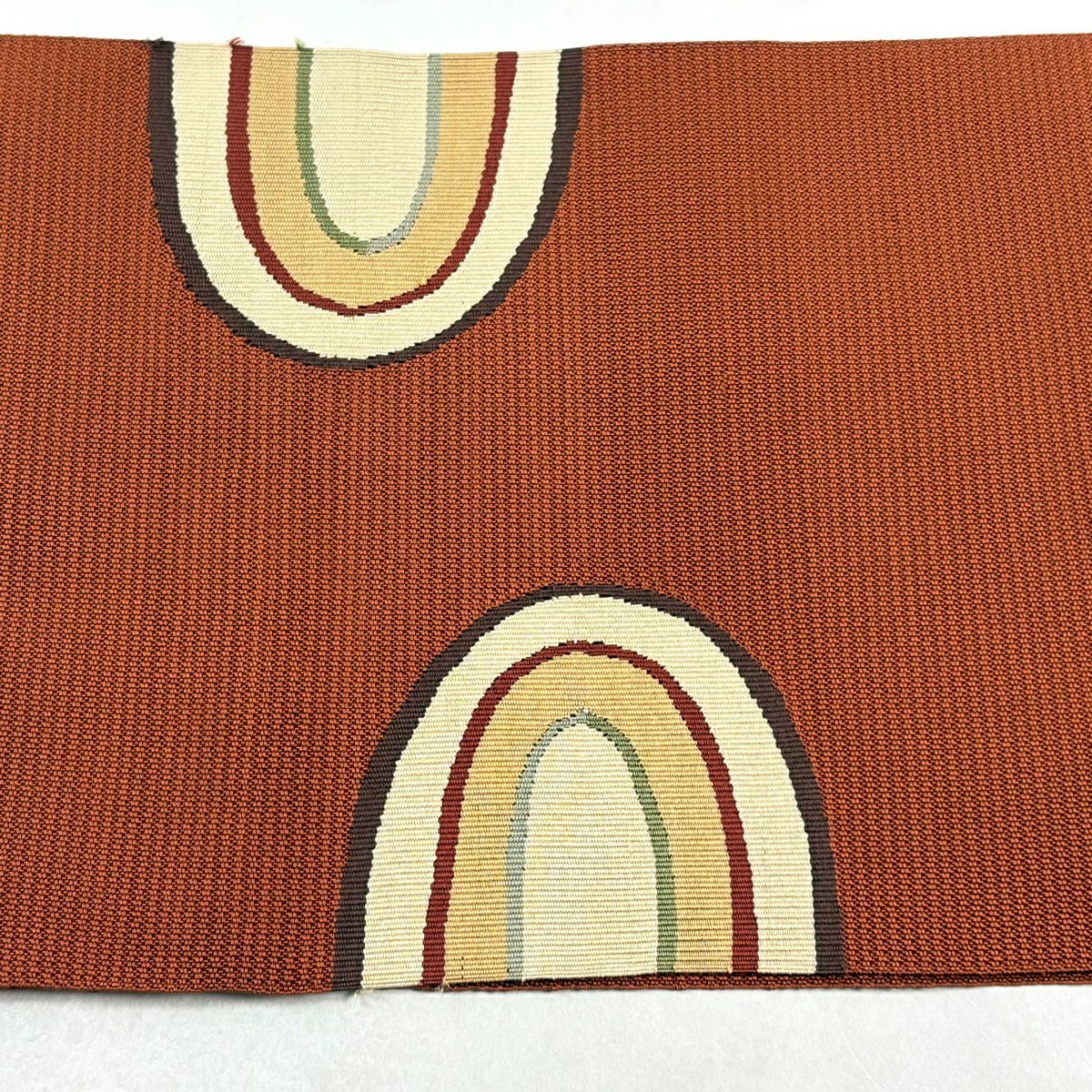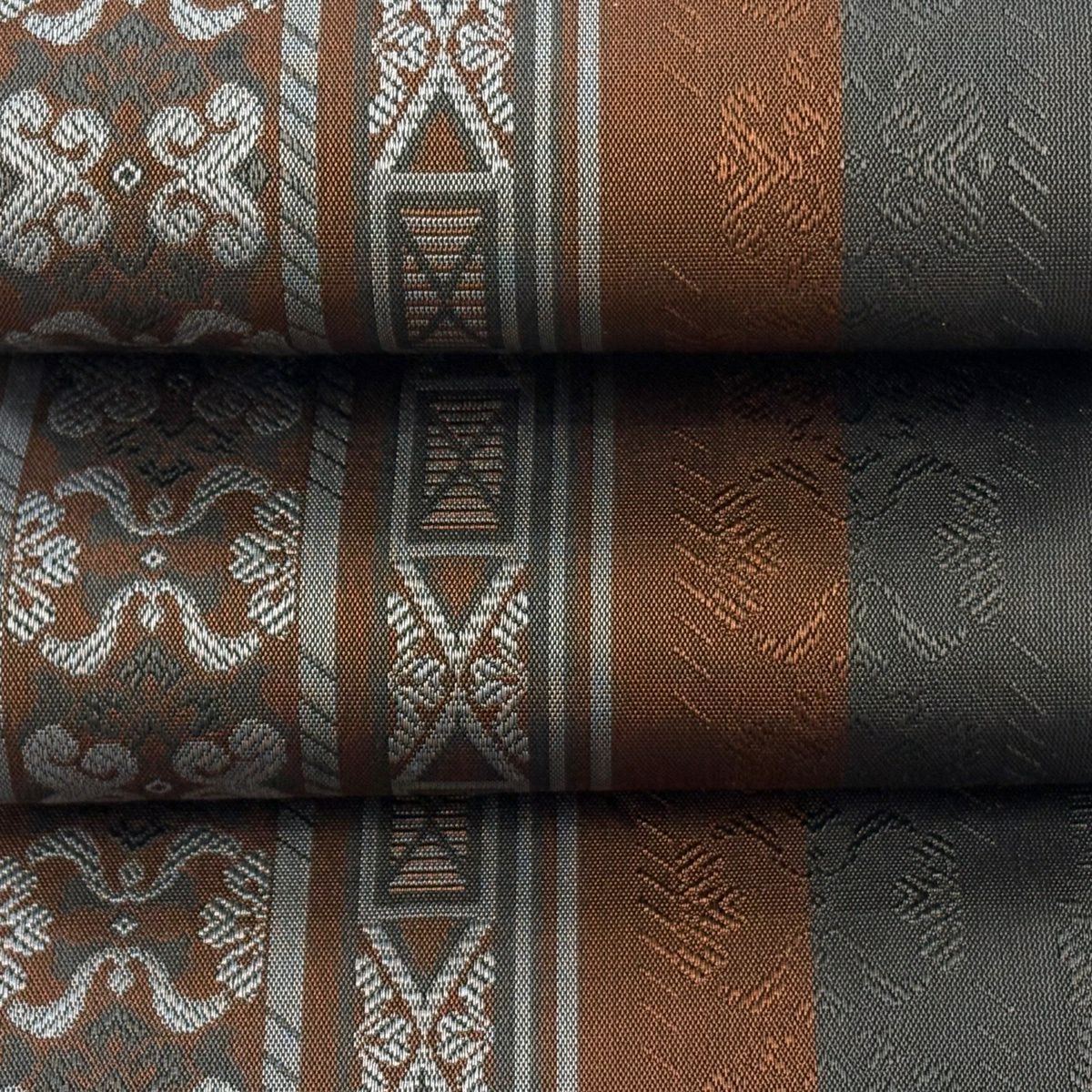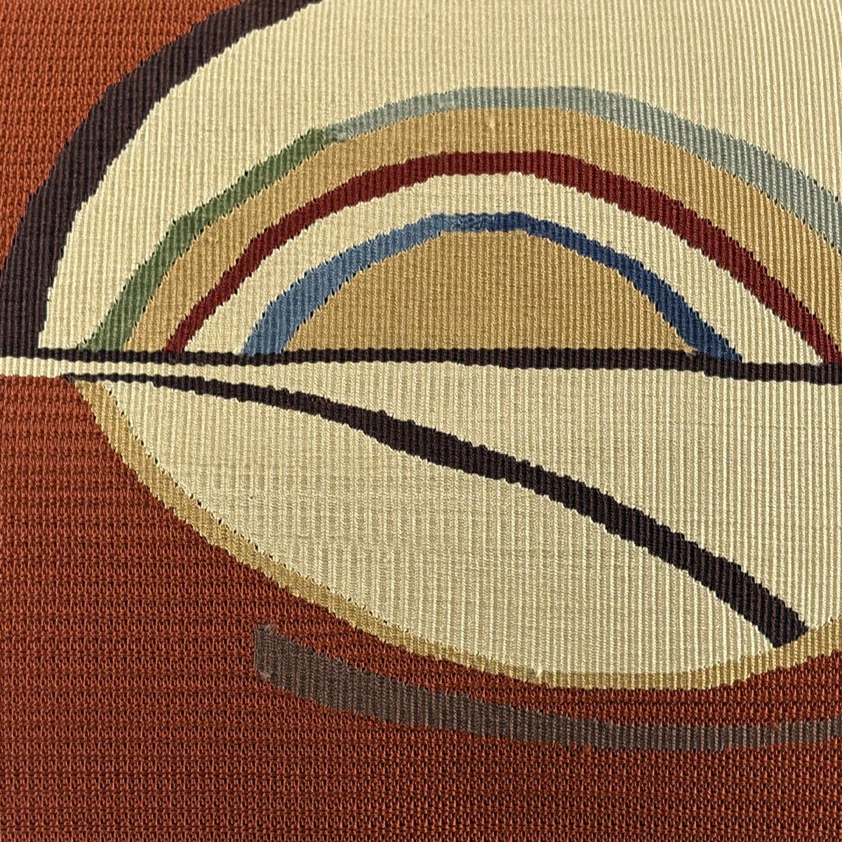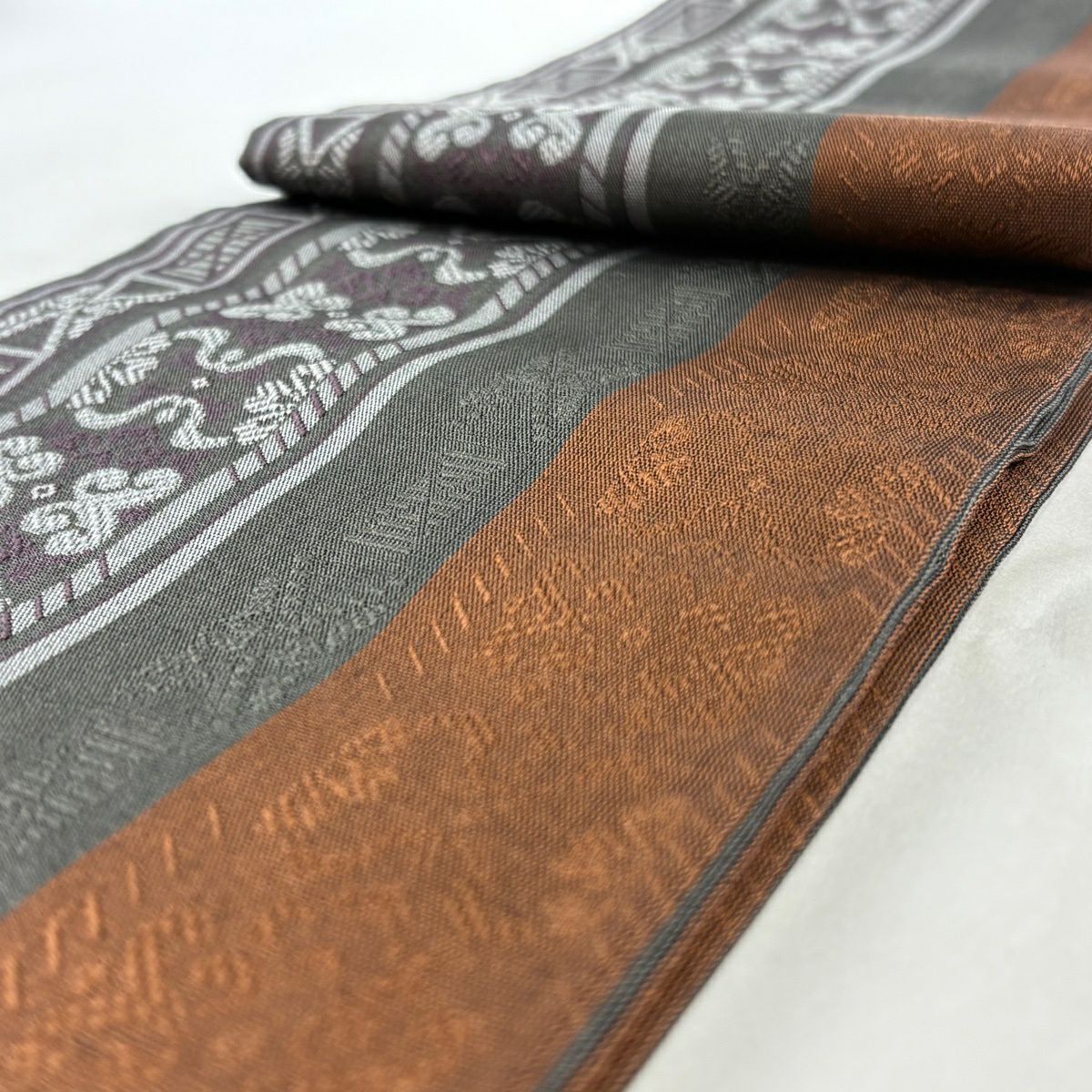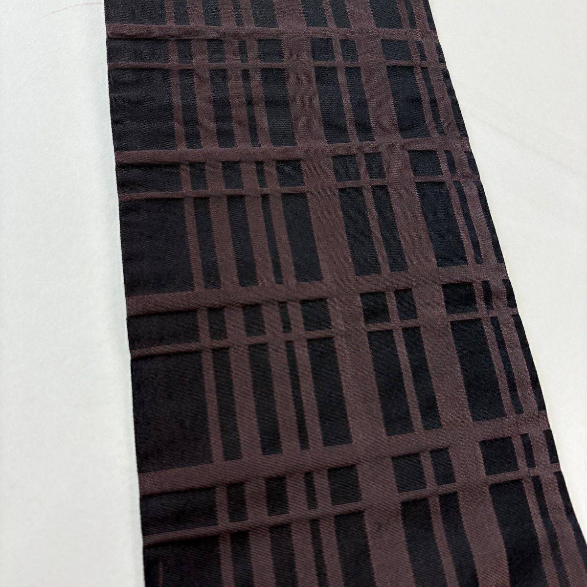 【美品】半幅帯 優品 幾何学 縞 茶色 正絹