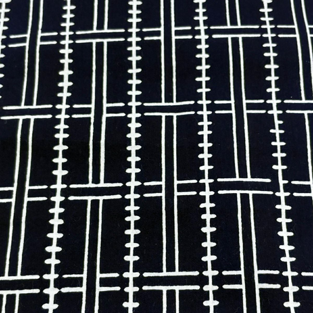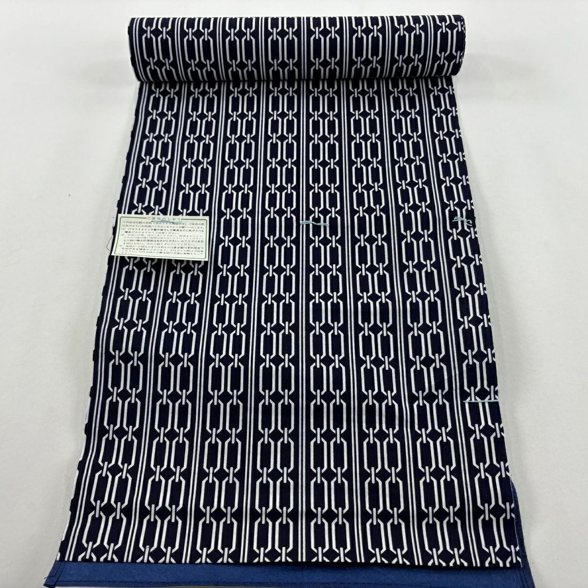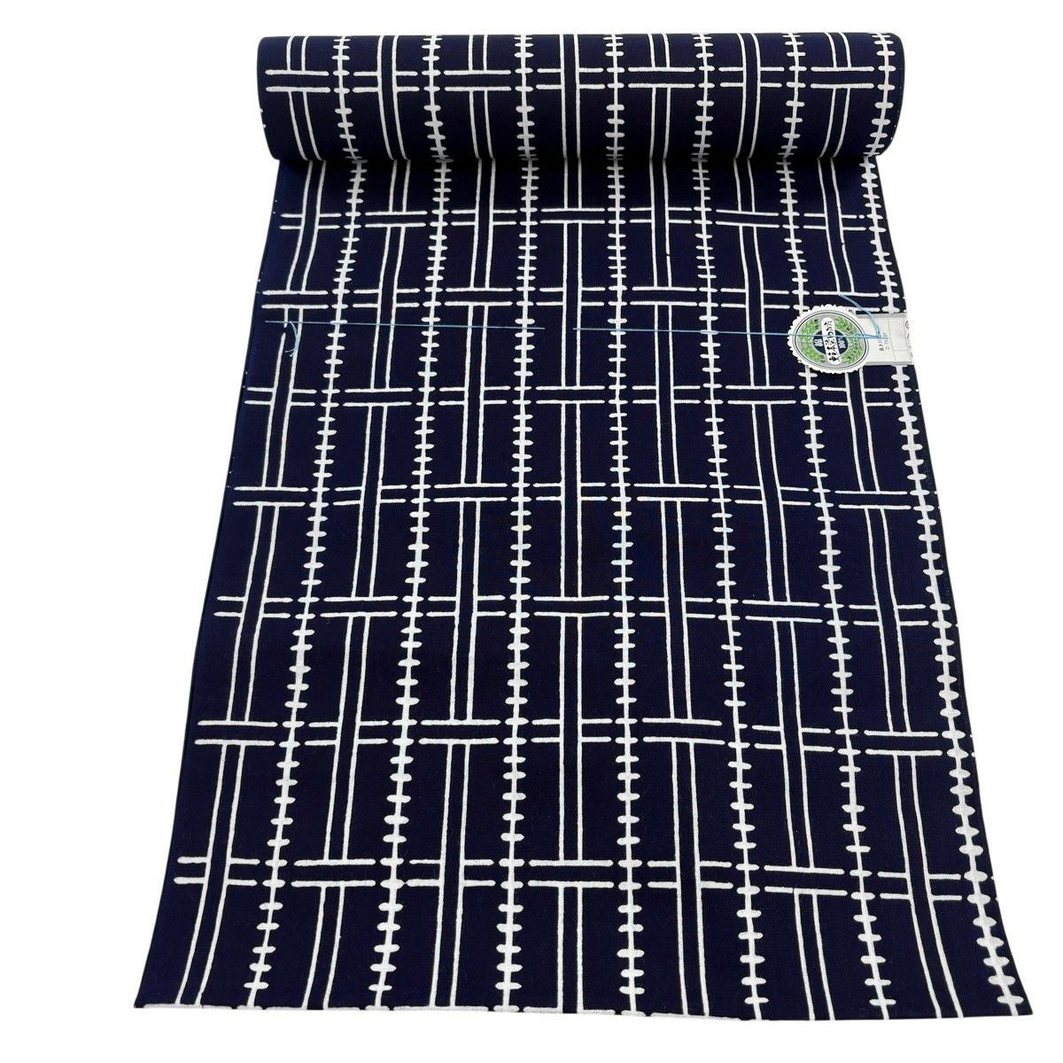 反物 優品 浴衣 格子 幾何学模様 濃紺 綿