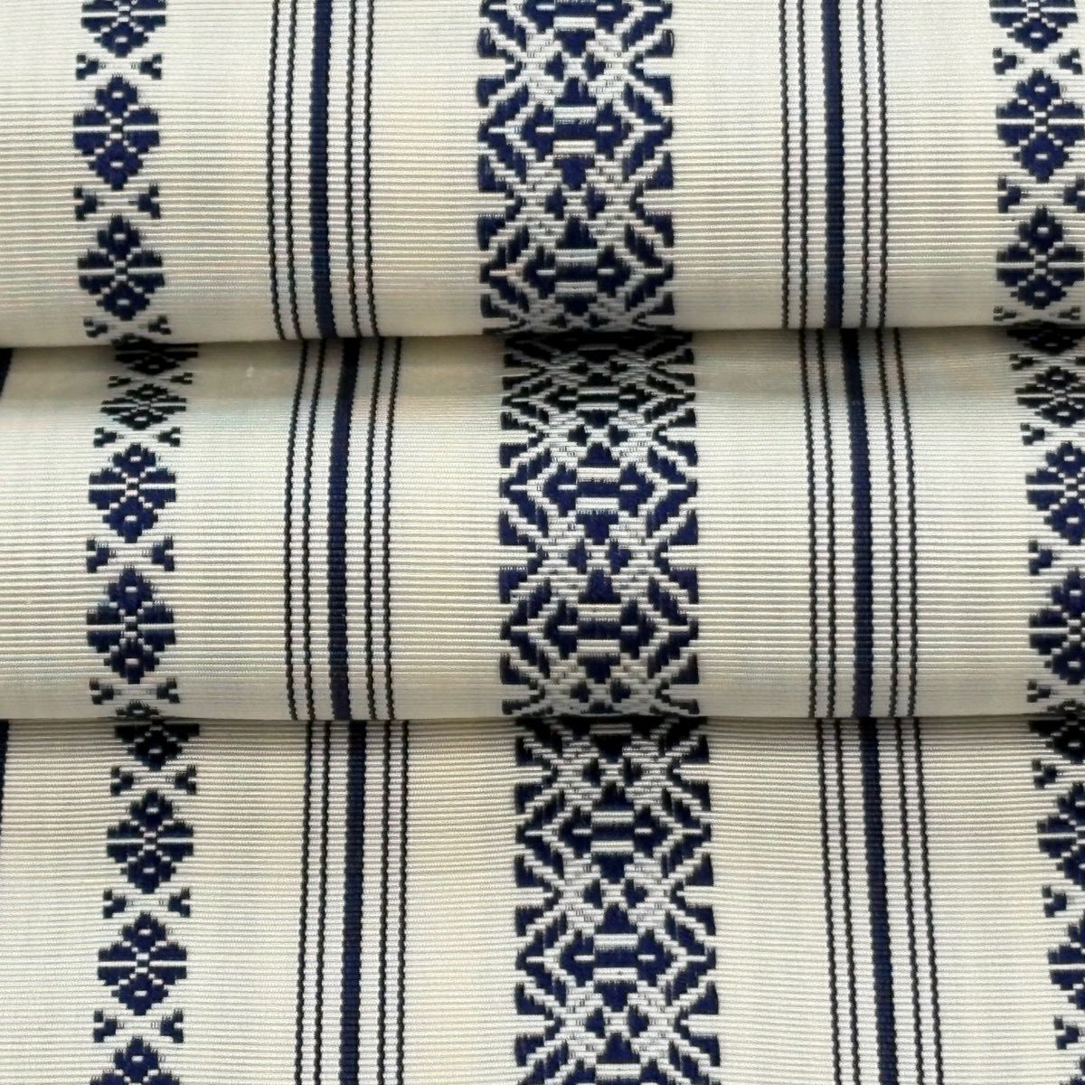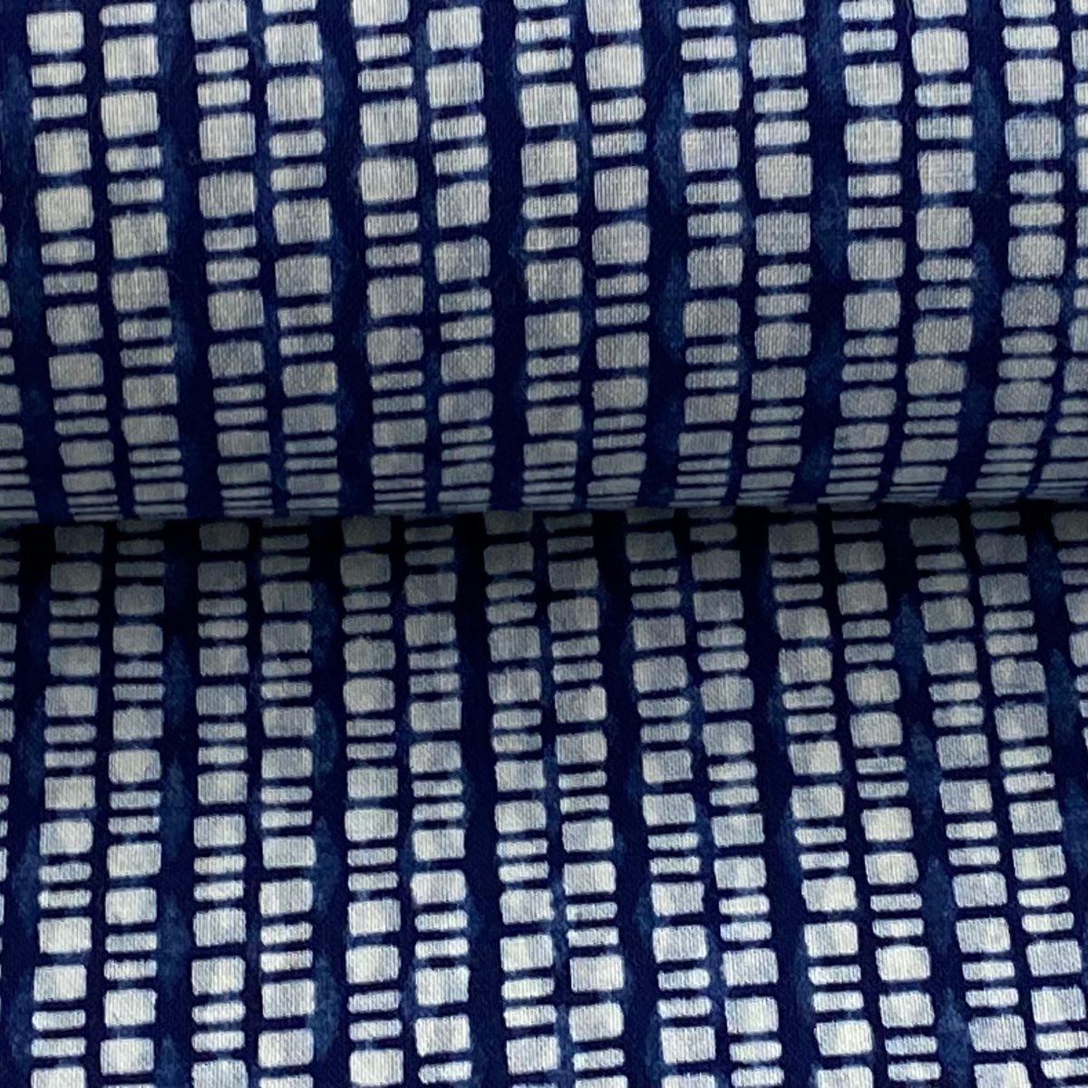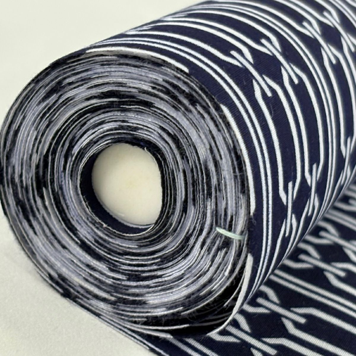反物 優品 小紋 縞 幾何学模様 藍色 綿