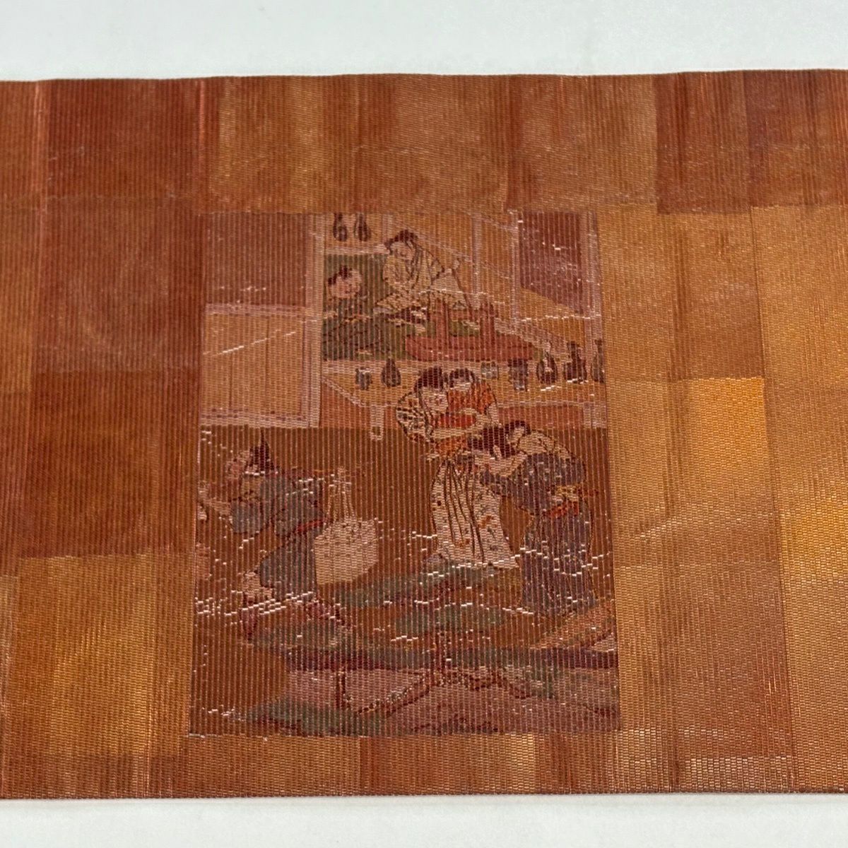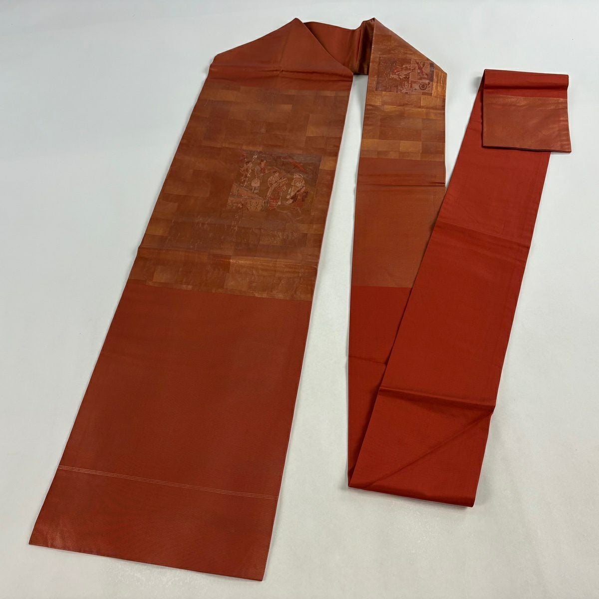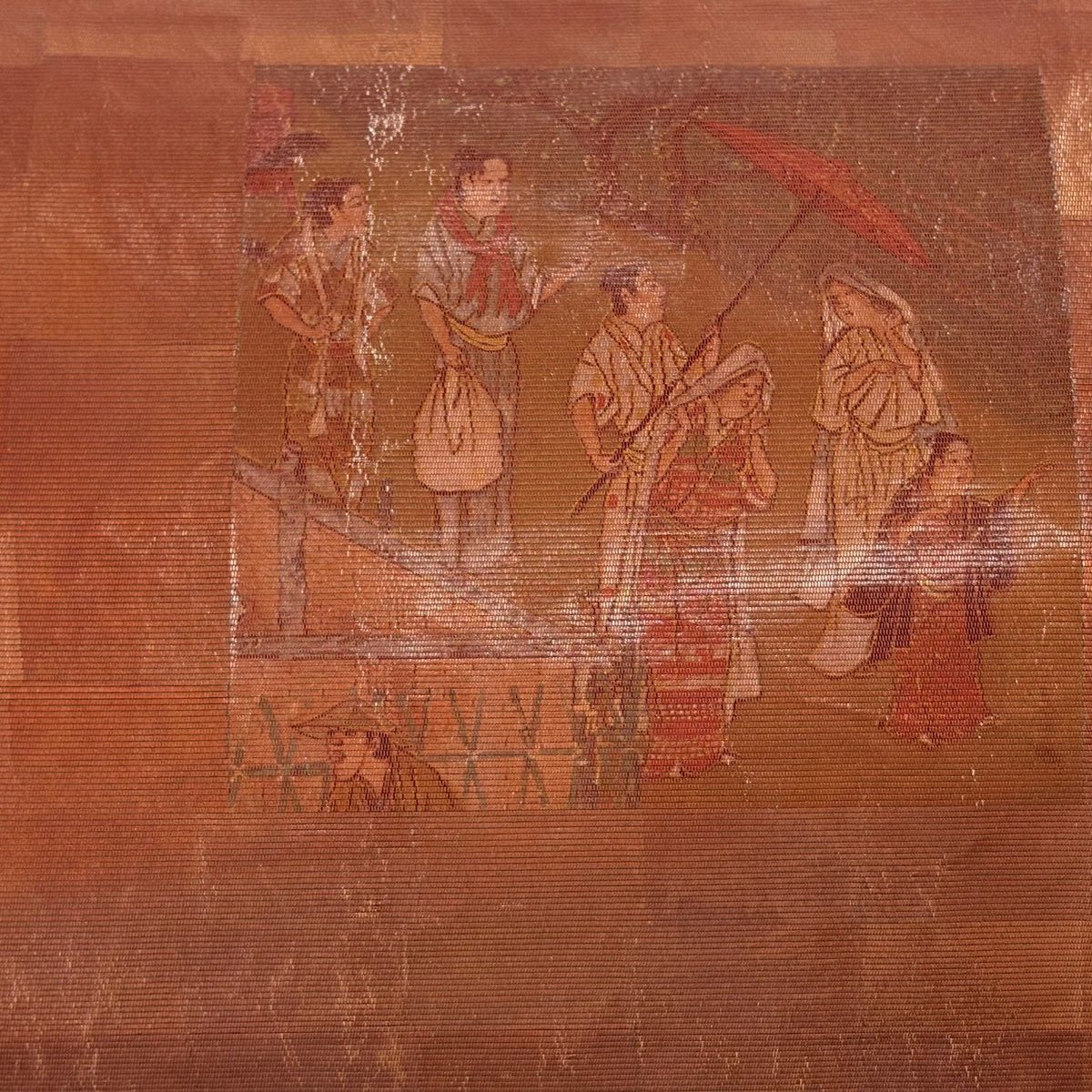 名古屋帯 優品 人物 番傘 箔 朱色 正絹