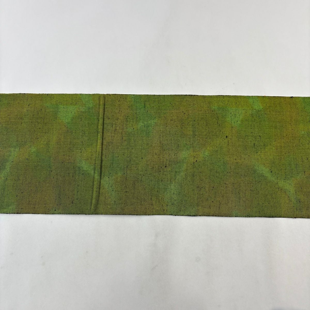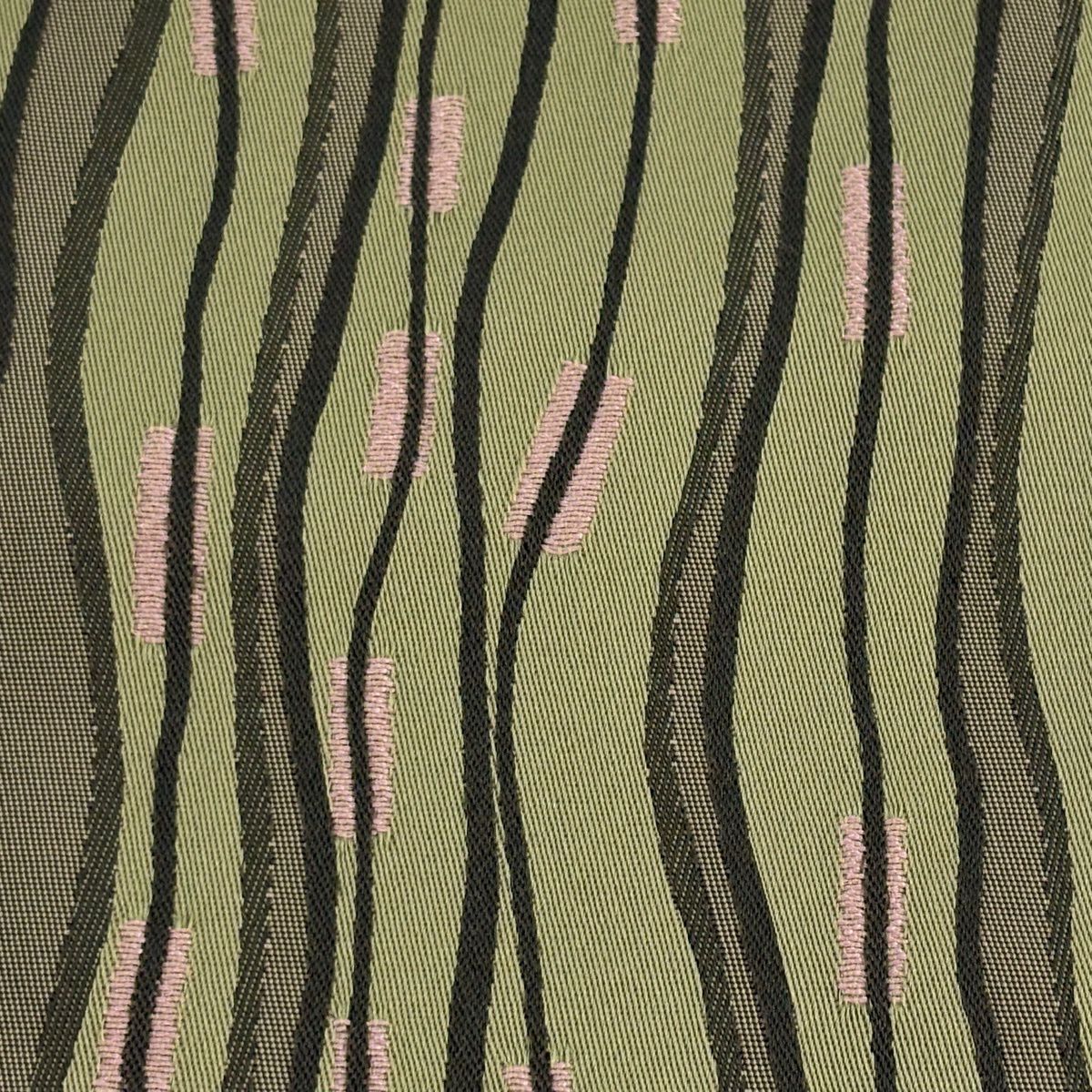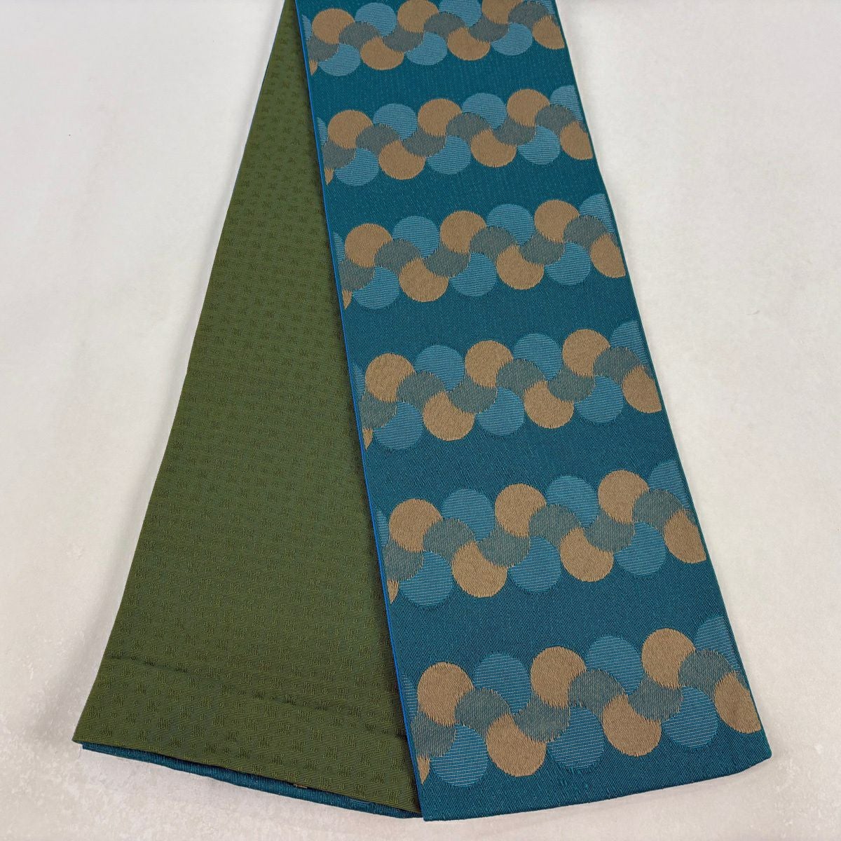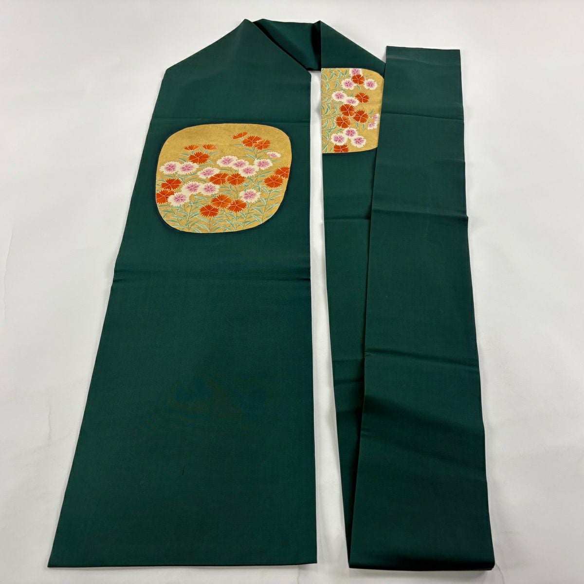 【美品】半幅帯 優品 菊 笹 茶緑色 化繊