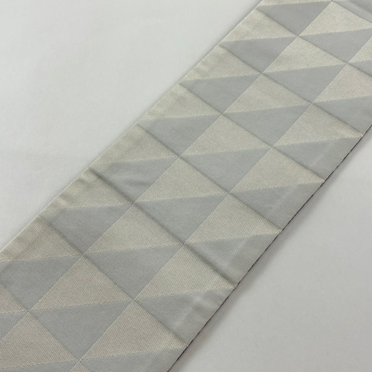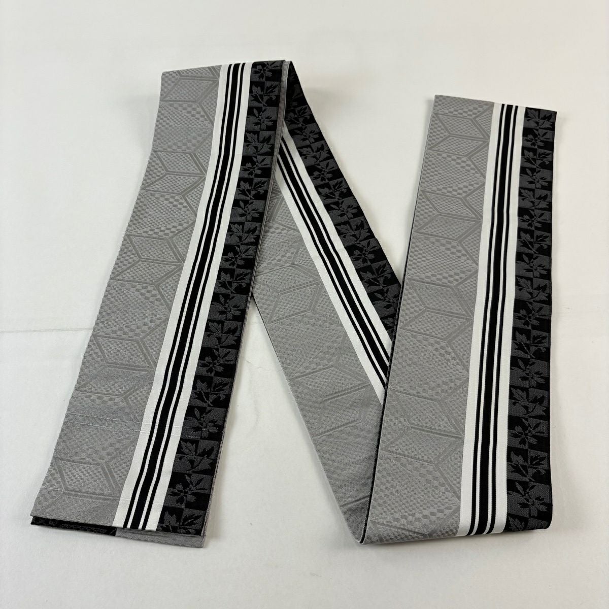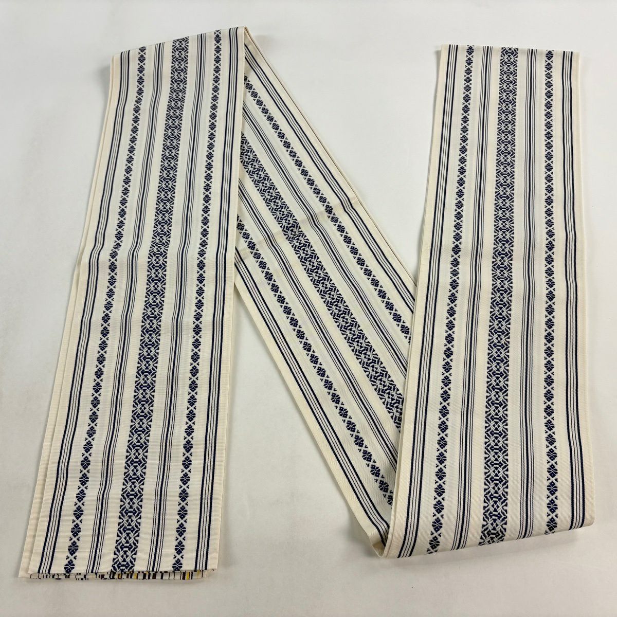 【美品】半幅帯 優品 間道柄 独鈷 白 正絹
