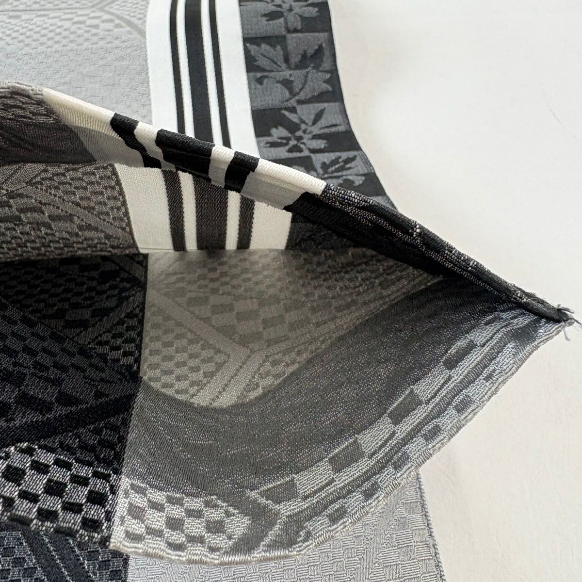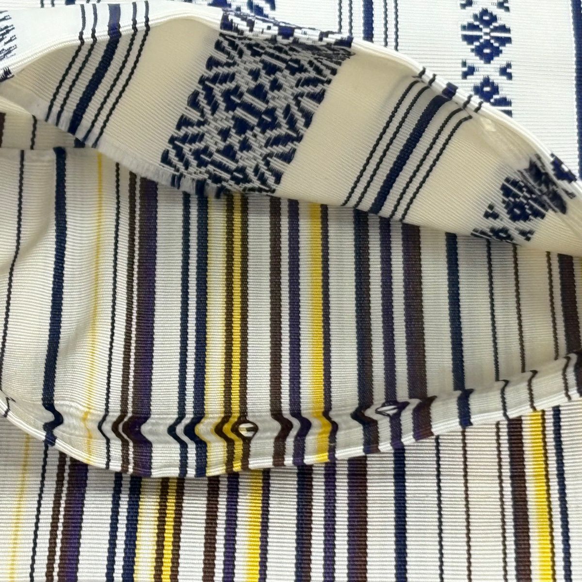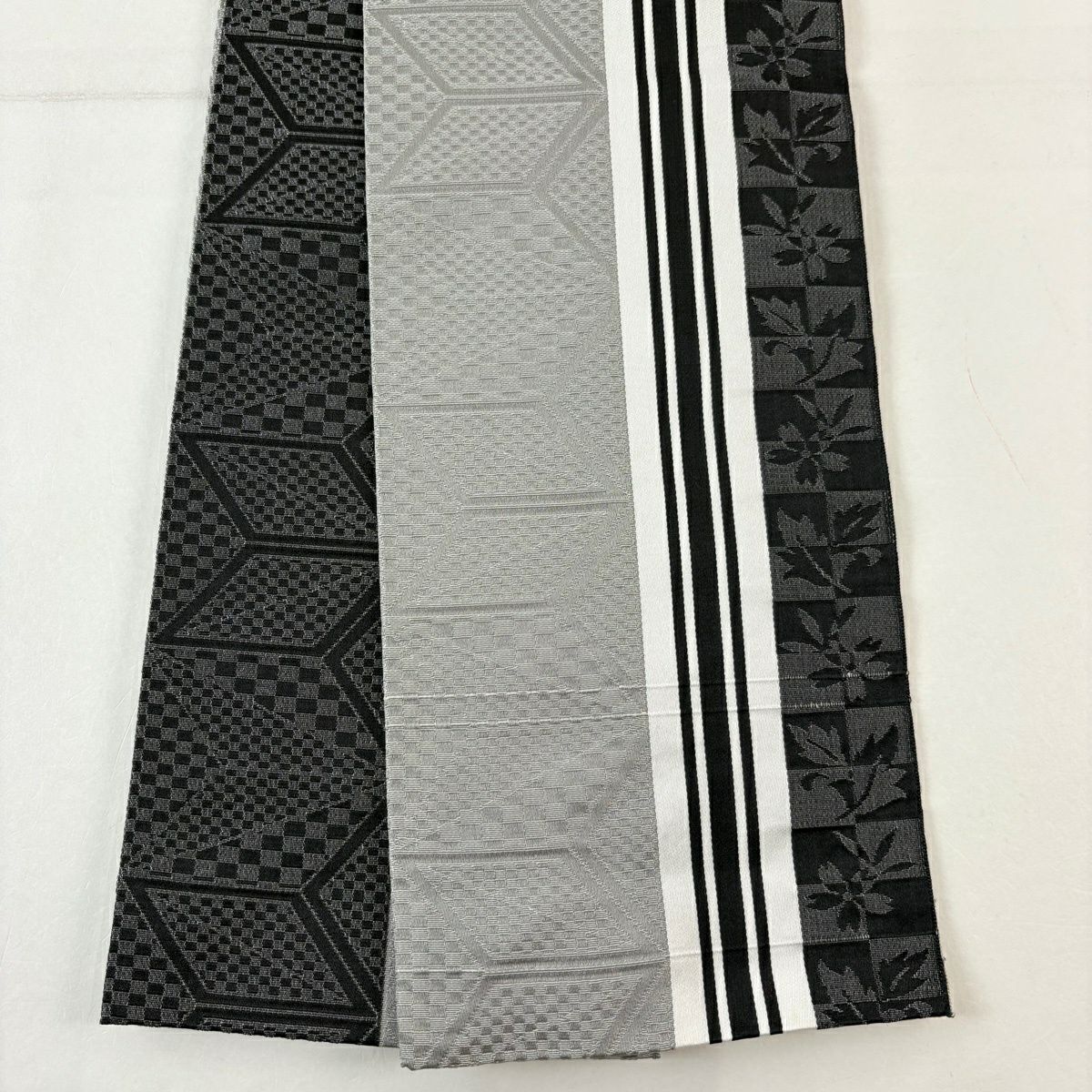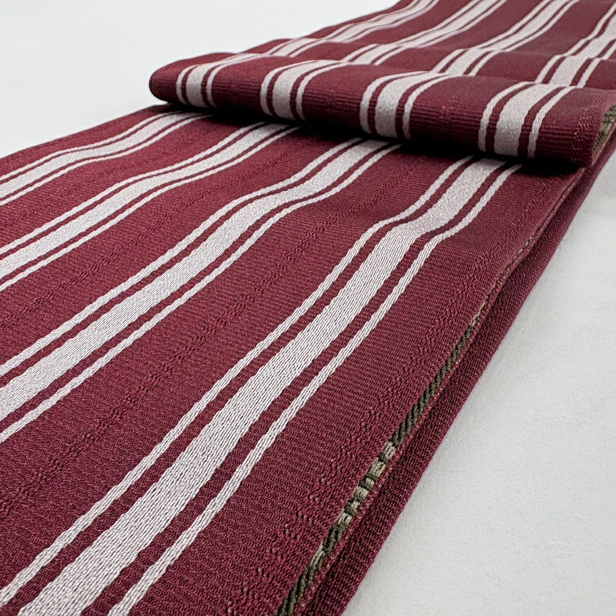 【美品】半幅帯 優品 間道柄 独鈷 白 正絹