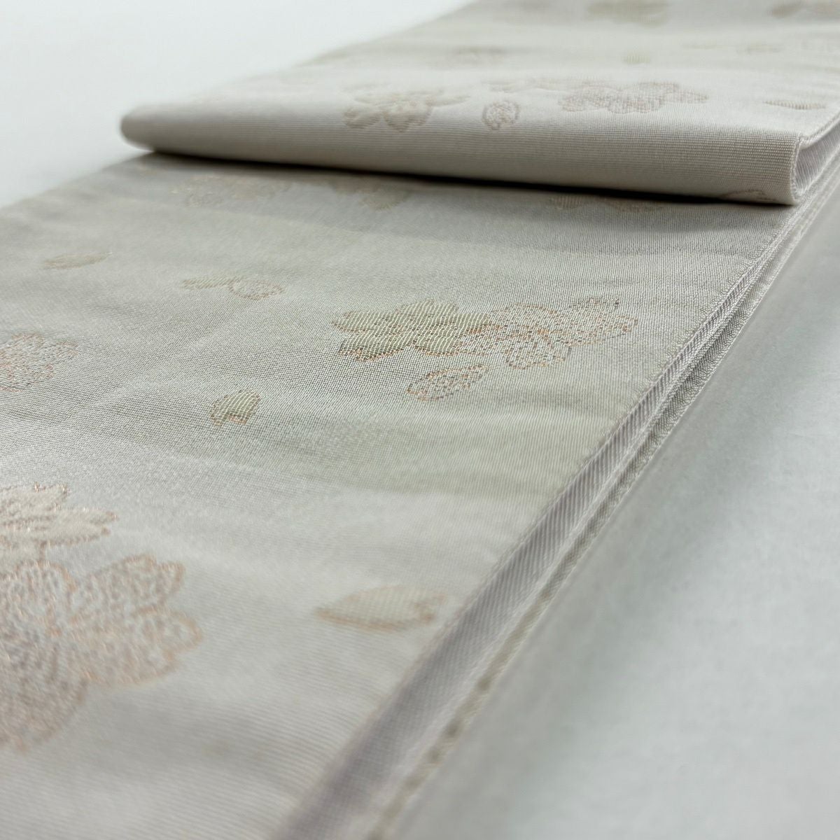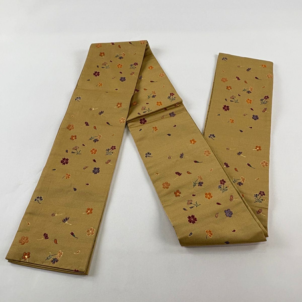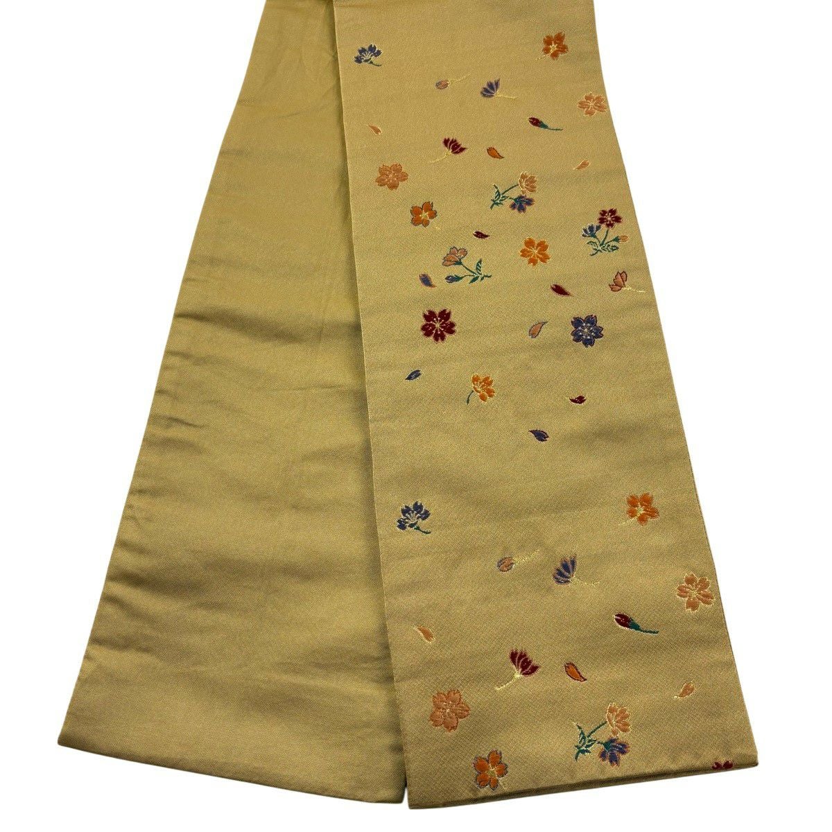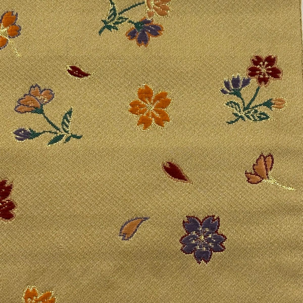 半幅帯 優品 桜 花びら 箔 薄黄土色 化繊