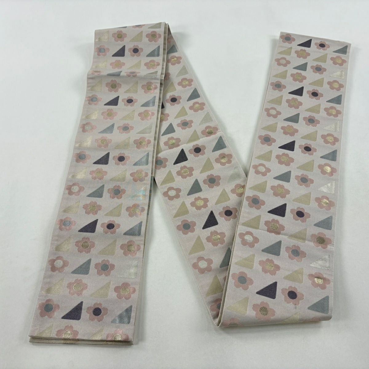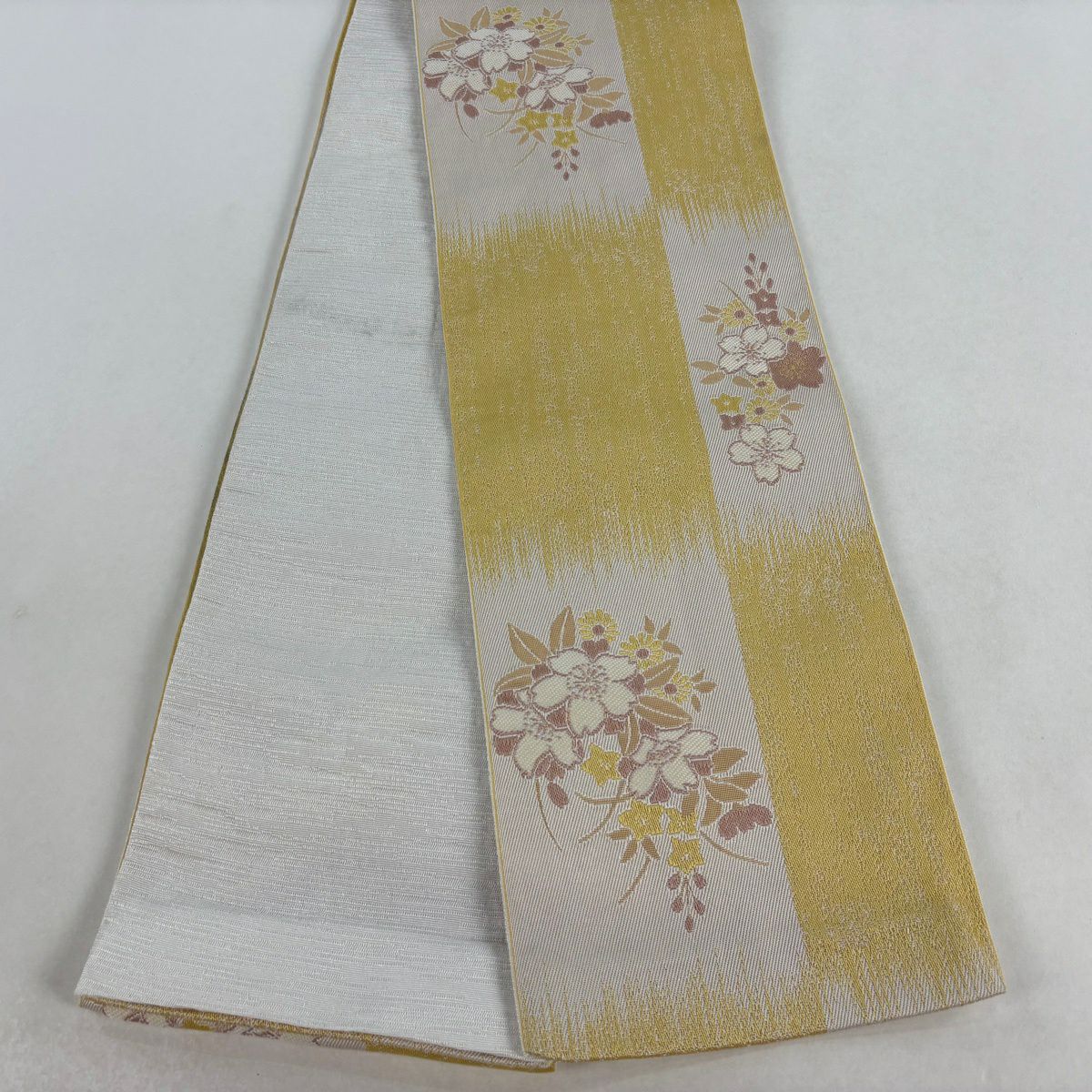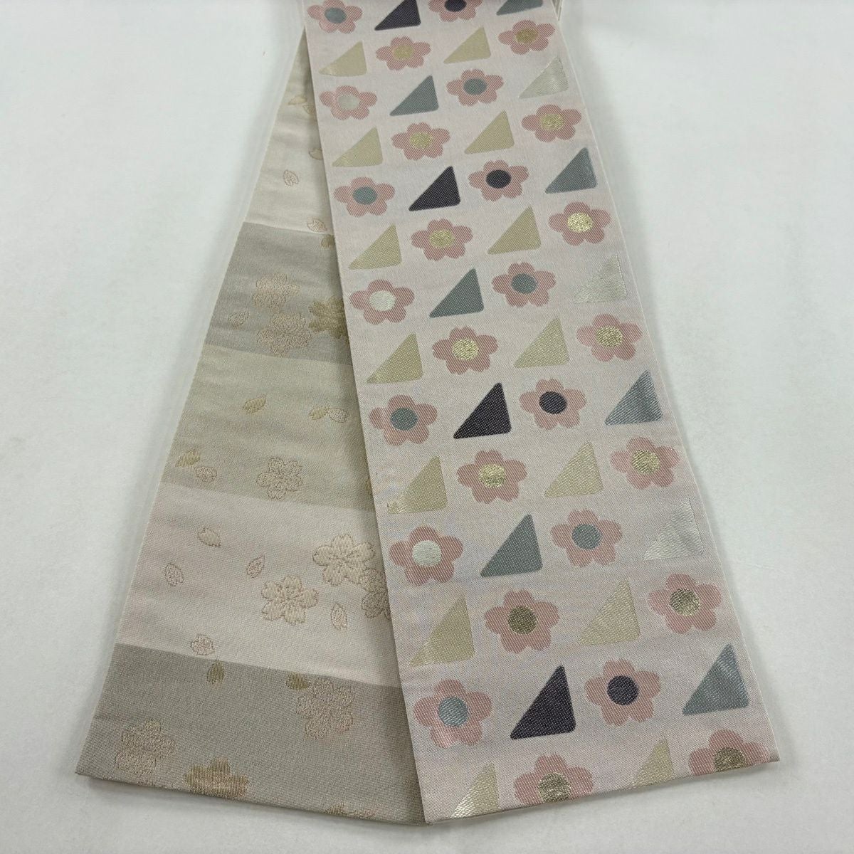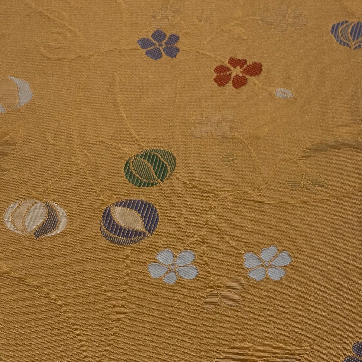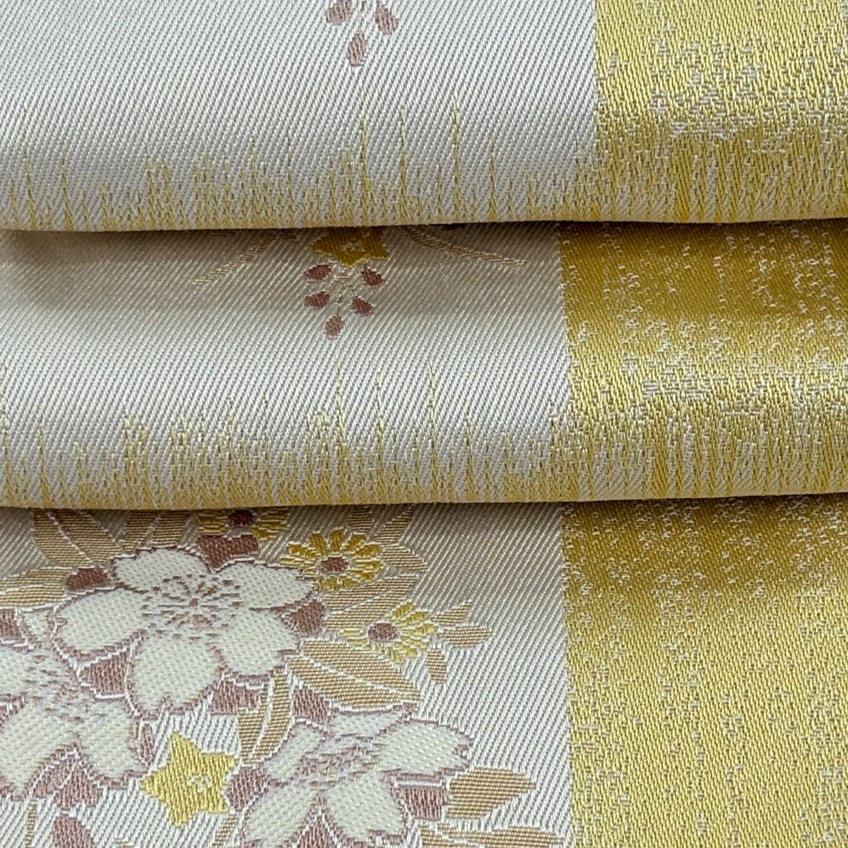 半幅帯 優品 桜 花びら 箔 薄黄土色 化繊