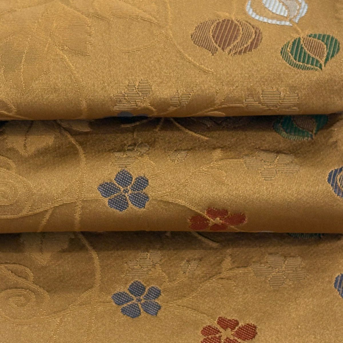 名古屋帯 優品 花唐草 金糸 箔 紺色 正絹