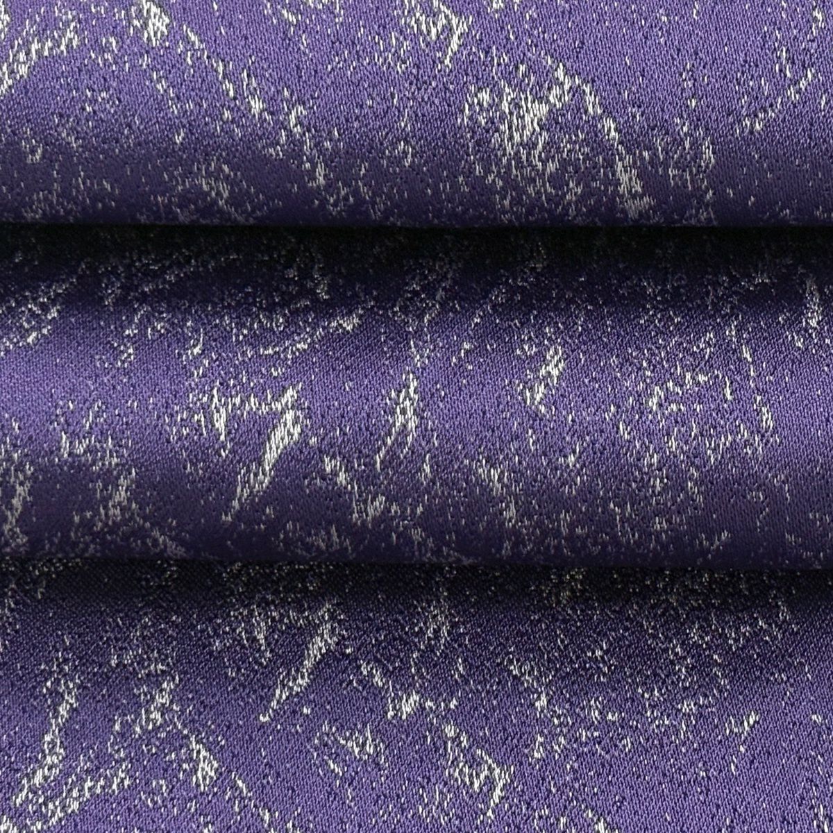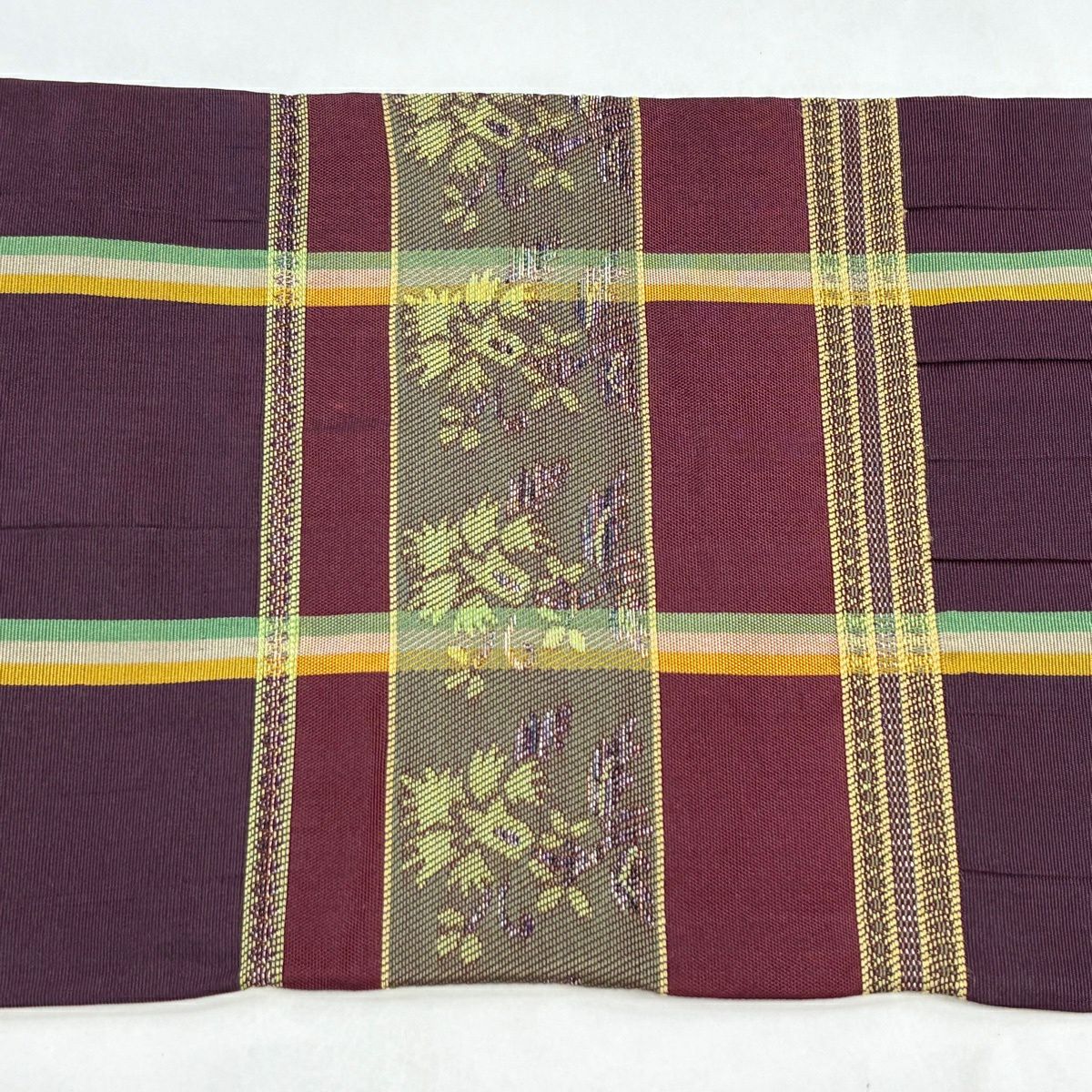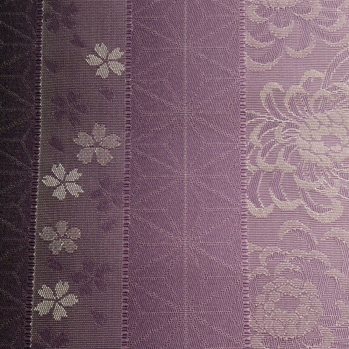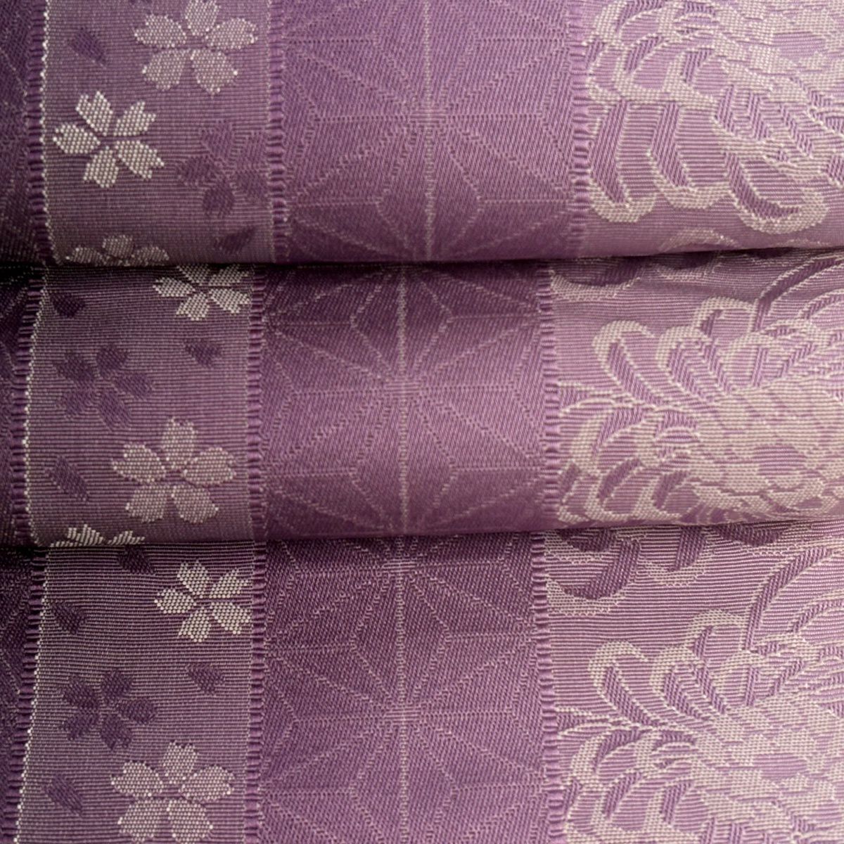 名古屋帯 優品 格子 草花 金銀糸 紫 正絹