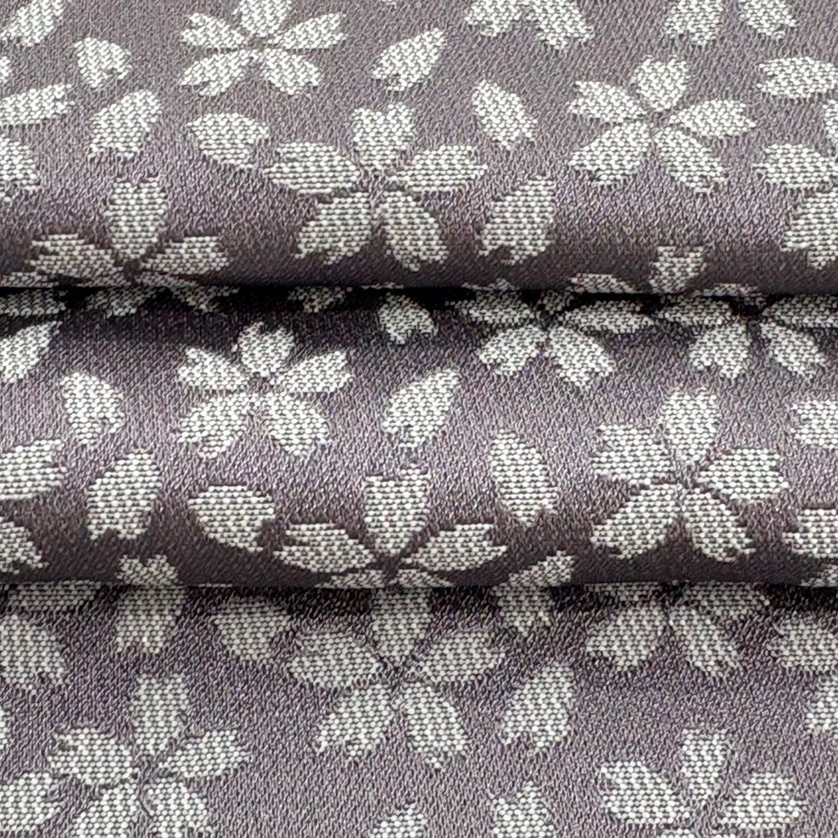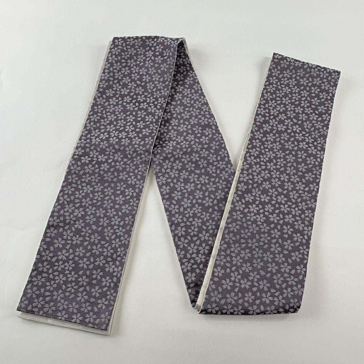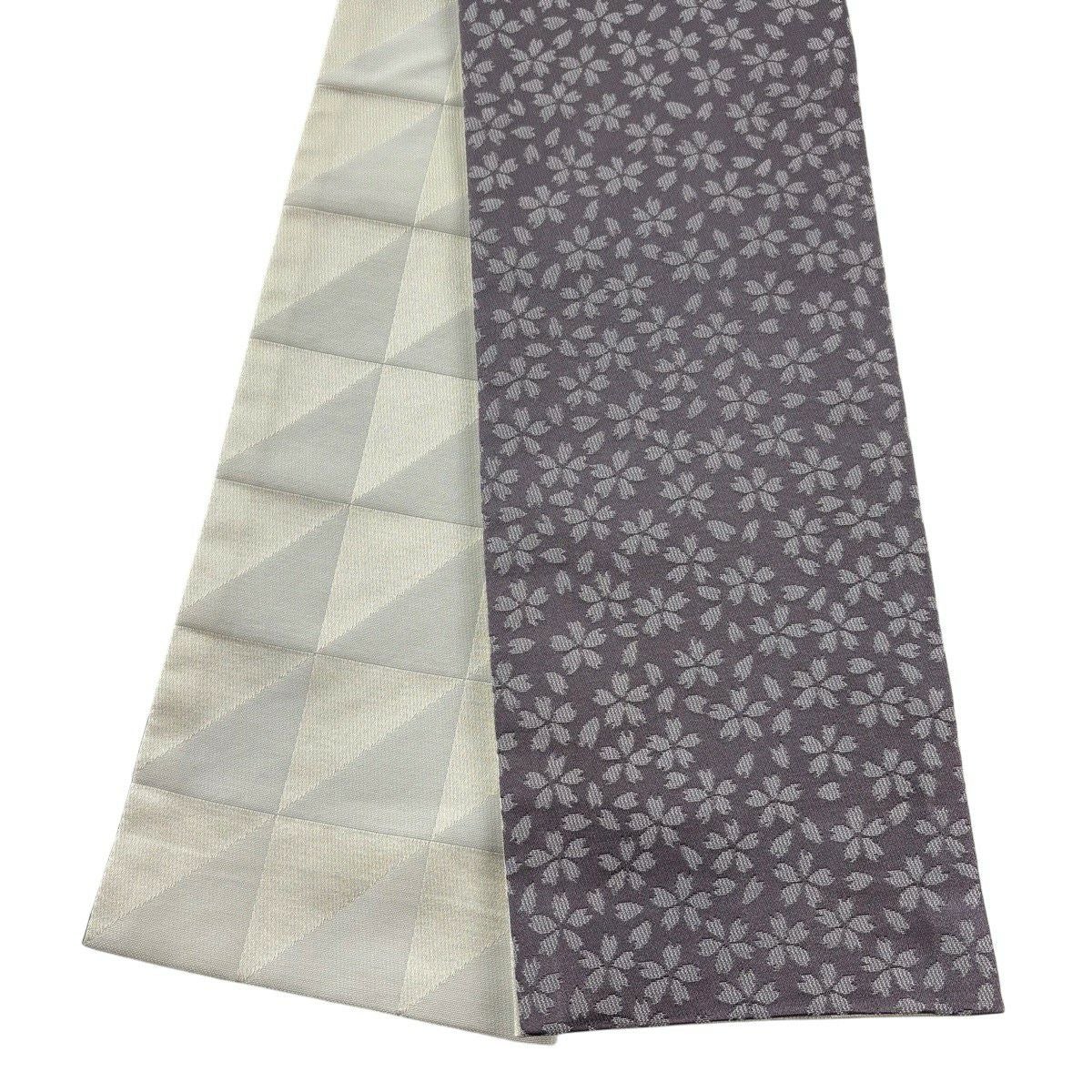 【美品】半幅帯 優品 桜 花びら 灰紫 化繊