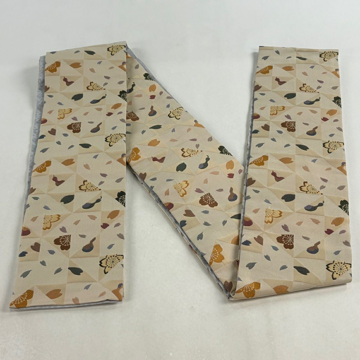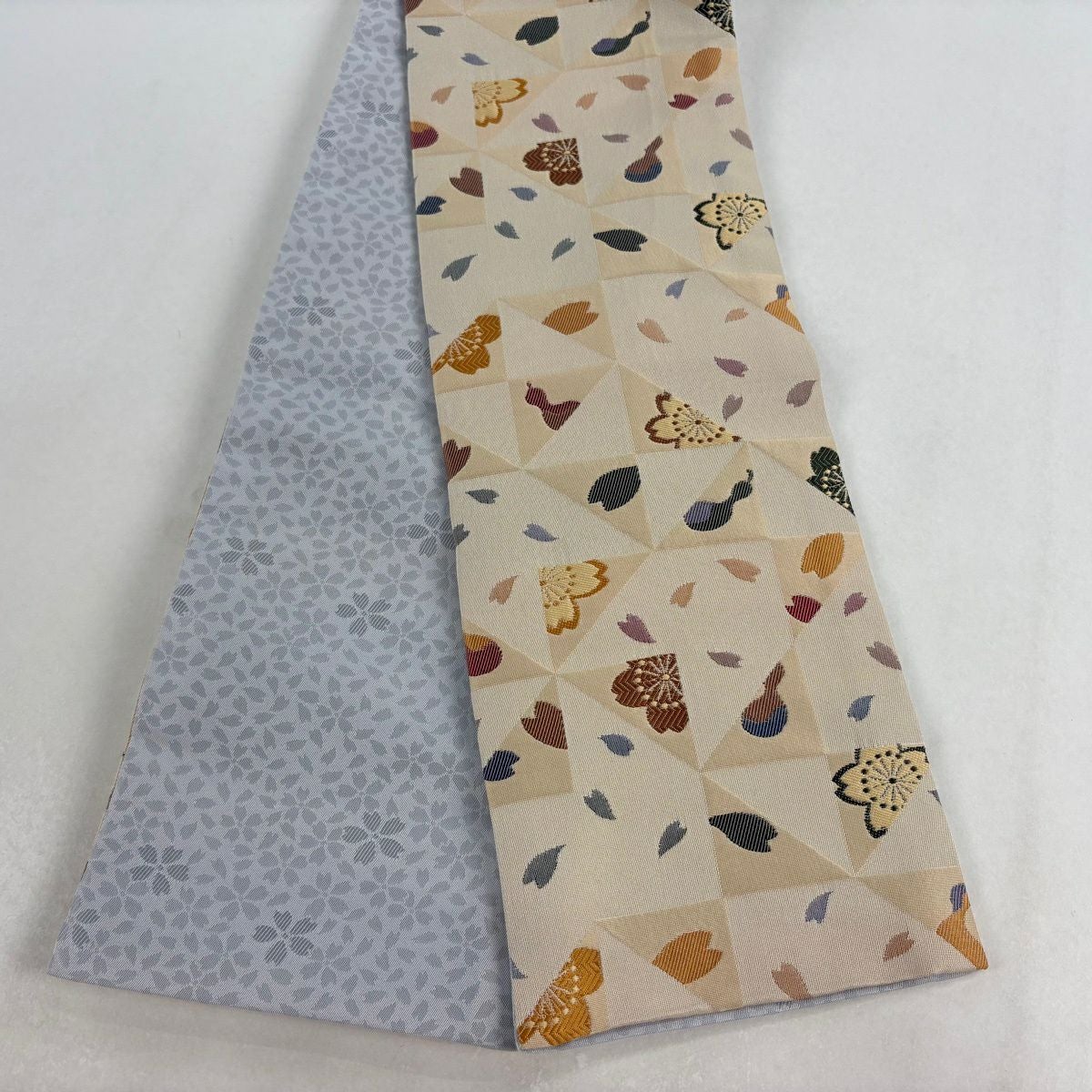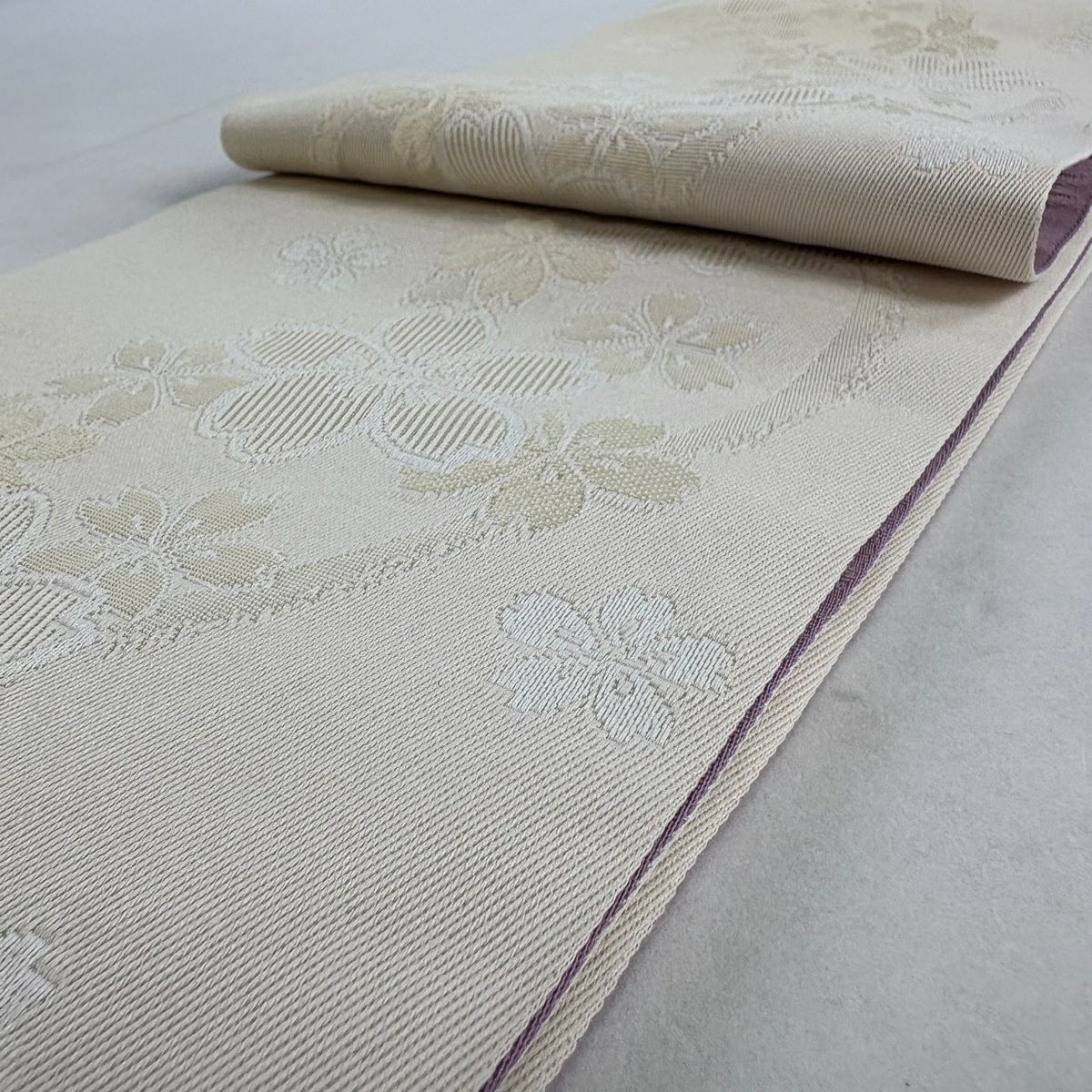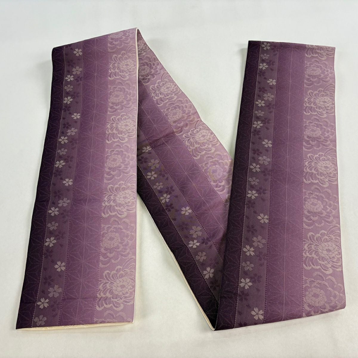 【美品】半幅帯 優品 桜 花びら 灰紫 化繊