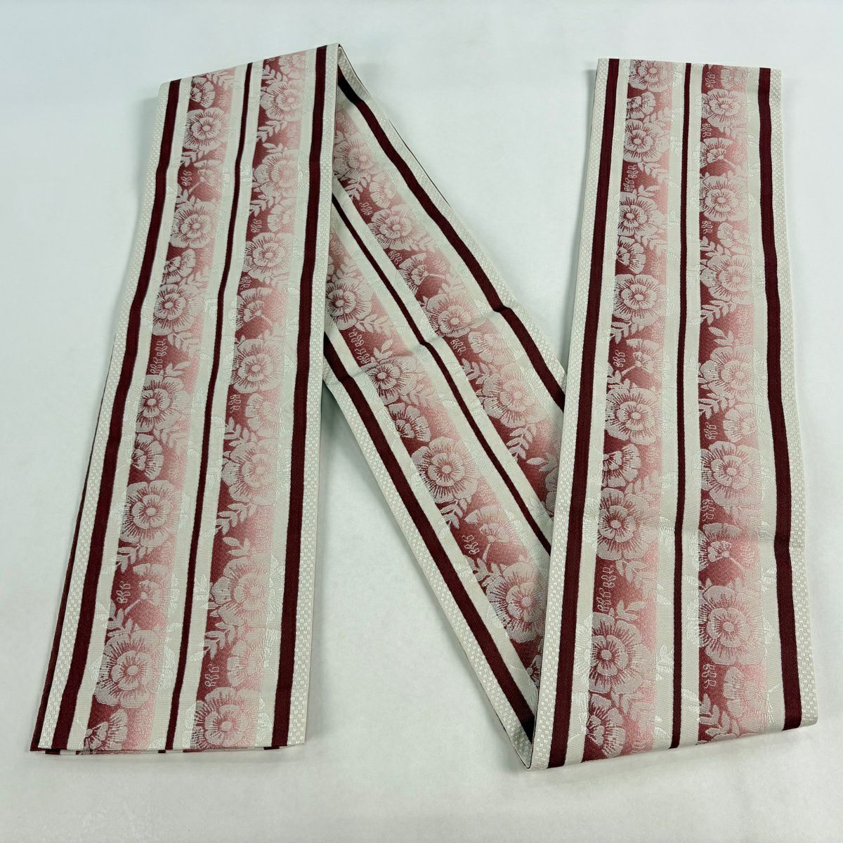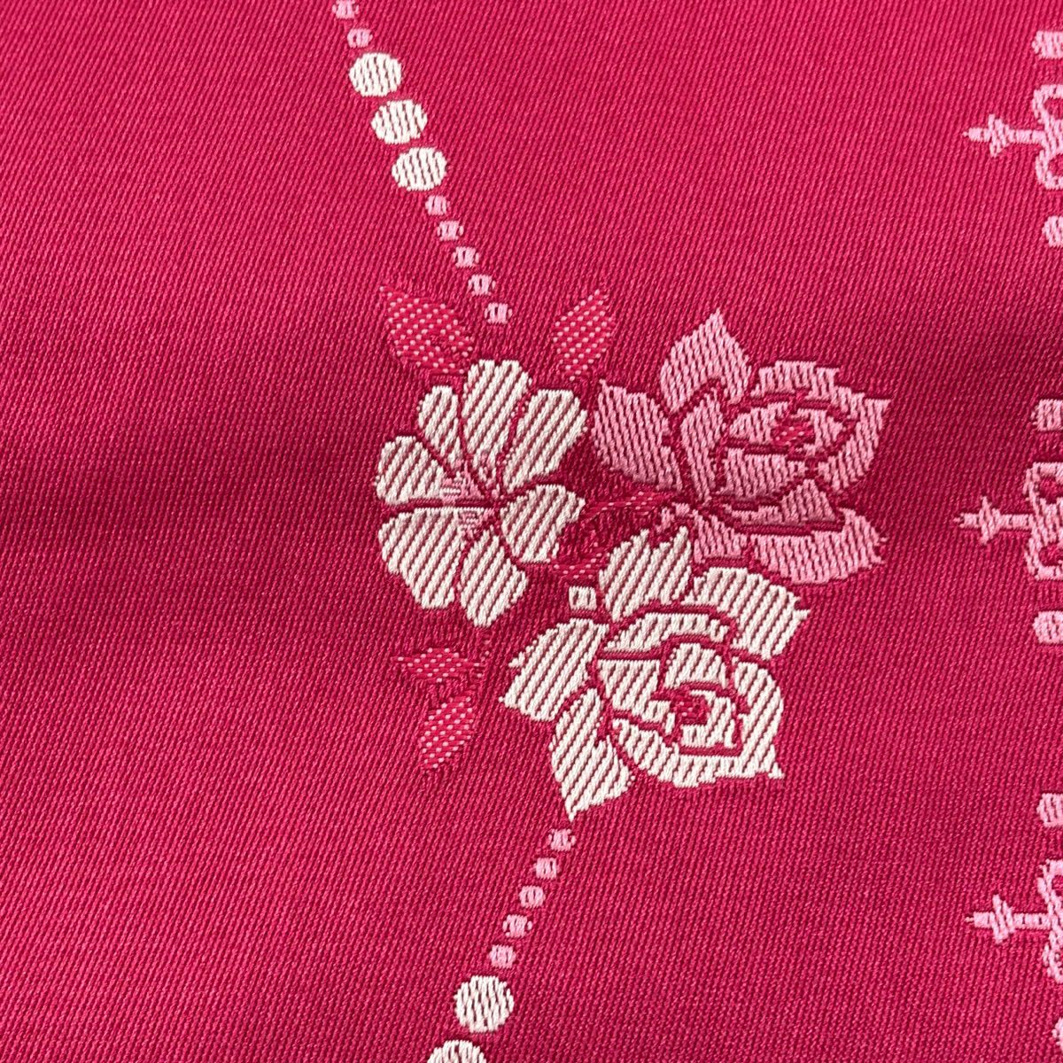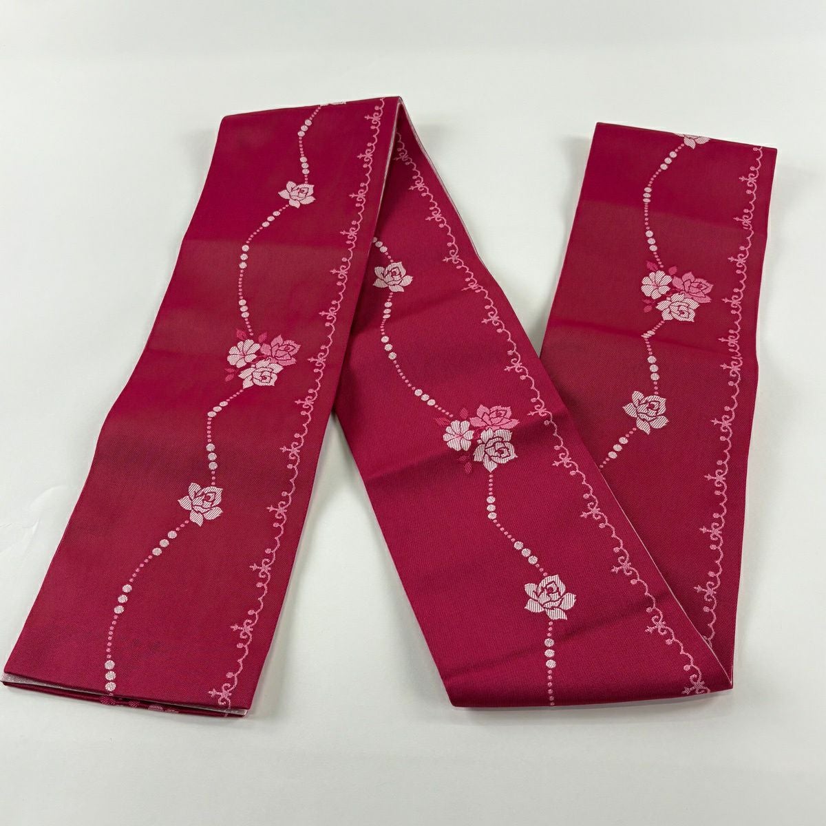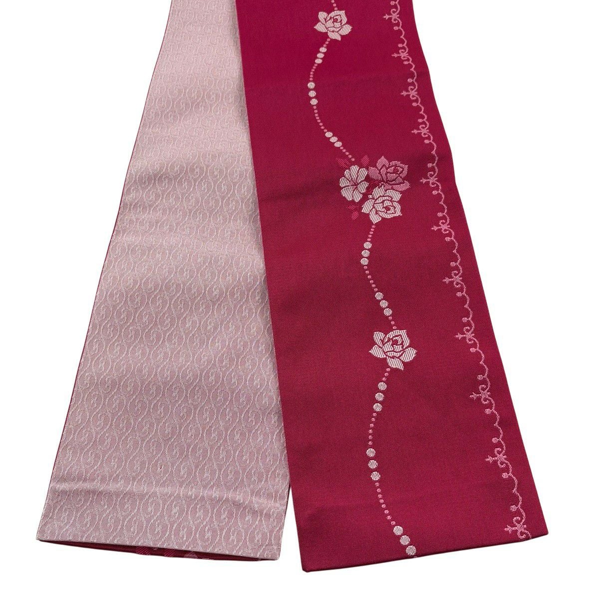 【美品】半幅帯 優品 薔薇 濃ピンク 化繊