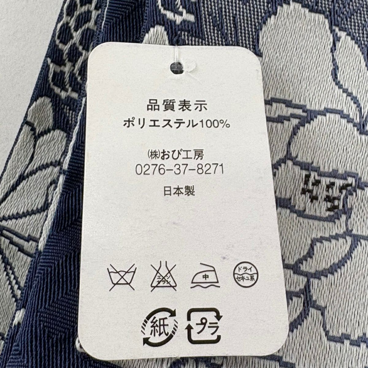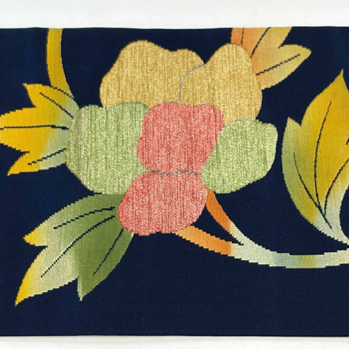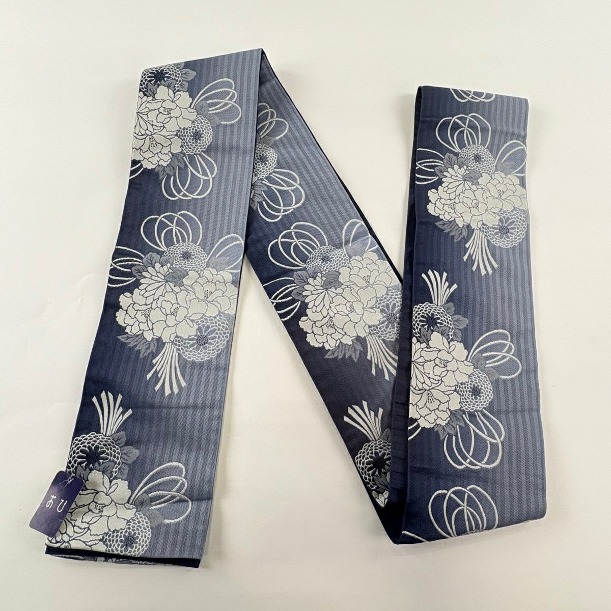 【美品】半幅帯 優品 花束 牡丹 紺色 化繊
